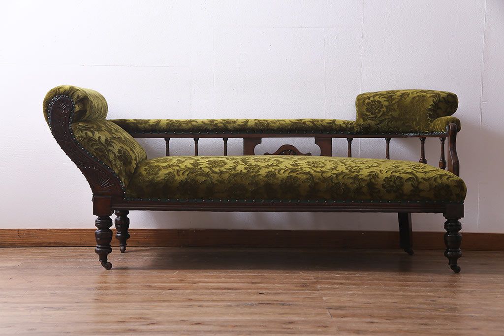 ラフジュ工房> ソファ> シェーズロング > アンティーク家具 イギリスアンティーク マホガニー材 お部屋をクラシカルに彩るシェーズロング(ソファ、カウチ)(R-037036)