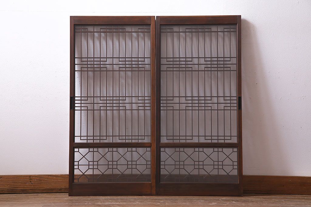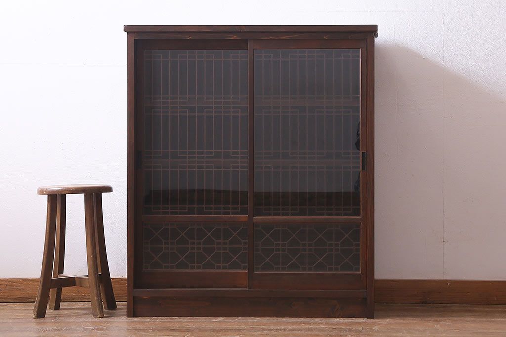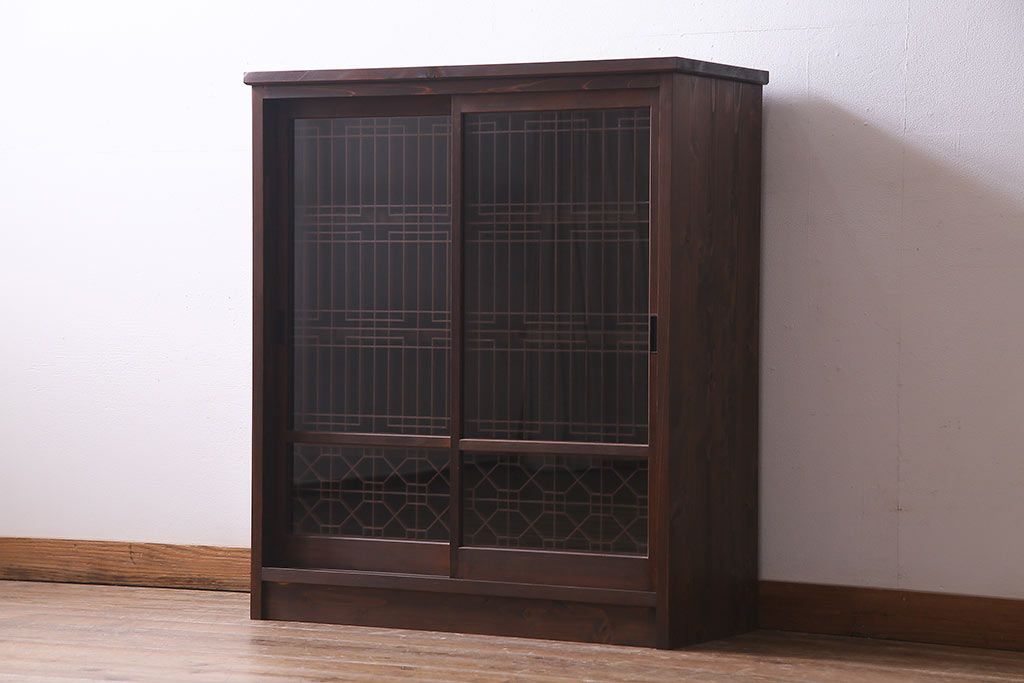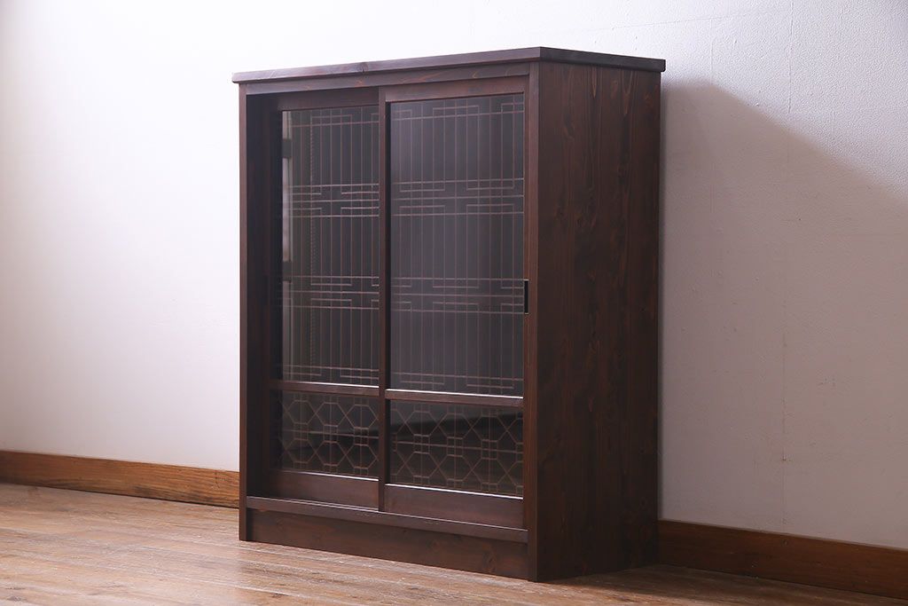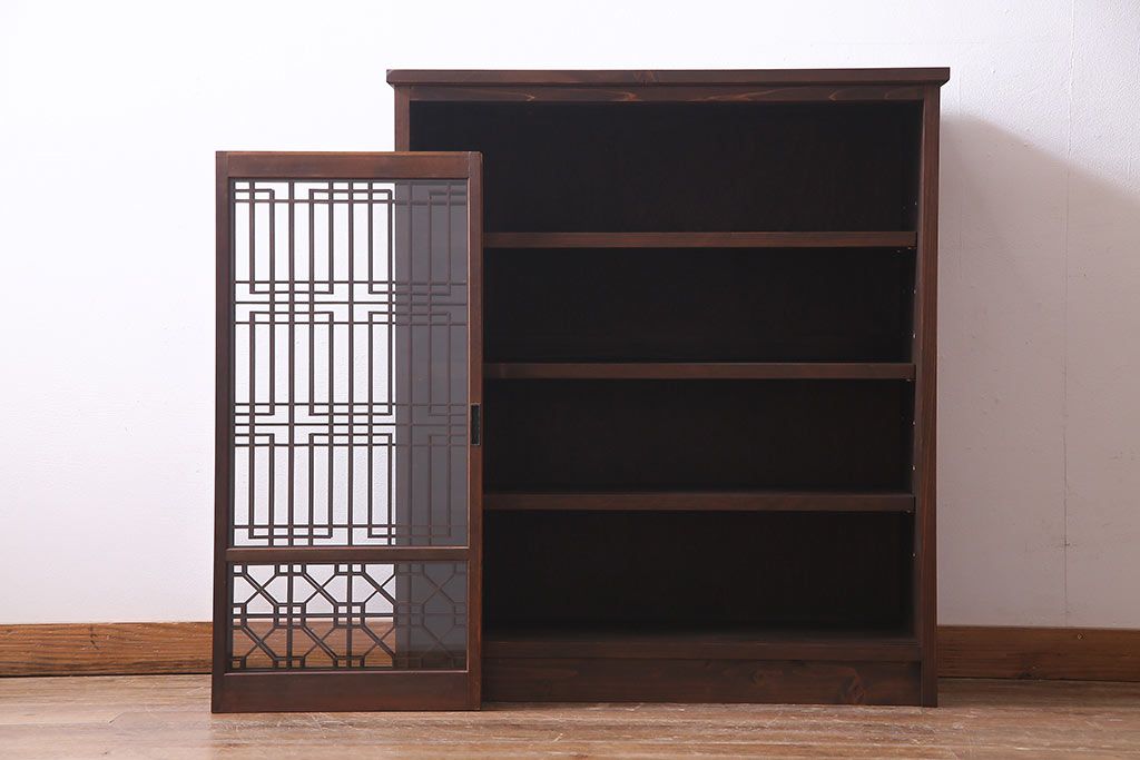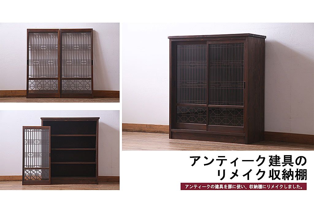アンティーク家具 ラフジュ工房オリジナル 古建具リメイク 組子の引き戸がお洒落なキャビネット(書院戸、収納棚)