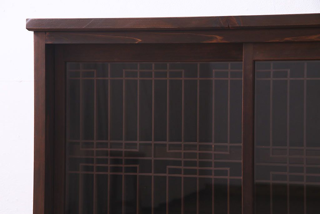 アンティーク家具 ラフジュ工房オリジナル 古建具リメイク 組子の引き戸がお洒落なキャビネット(書院戸、収納棚)です。