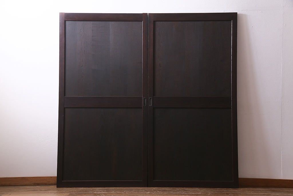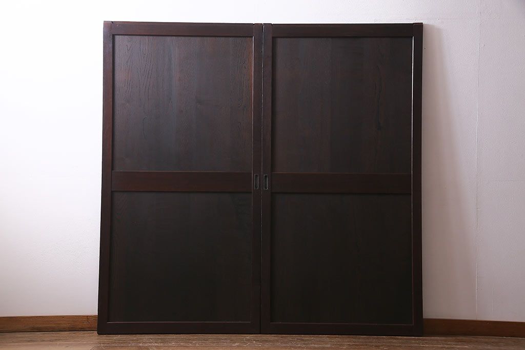 アンティーク建具 明治期 ケヤキ材・栗材 しっとりとした雰囲気漂う上手物の板戸2枚セット(建具、引き戸)です。