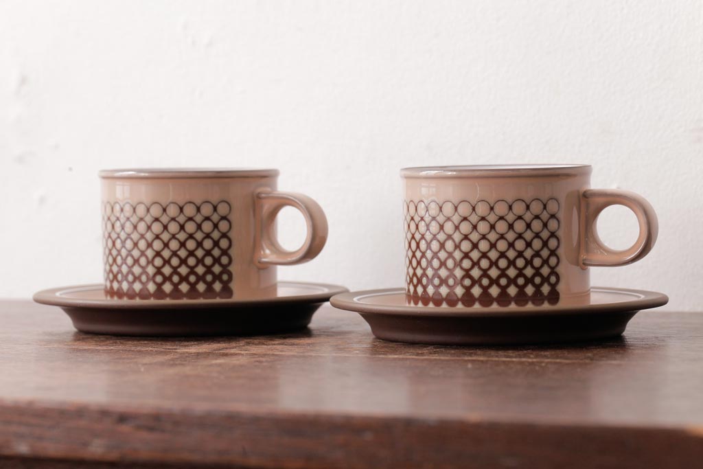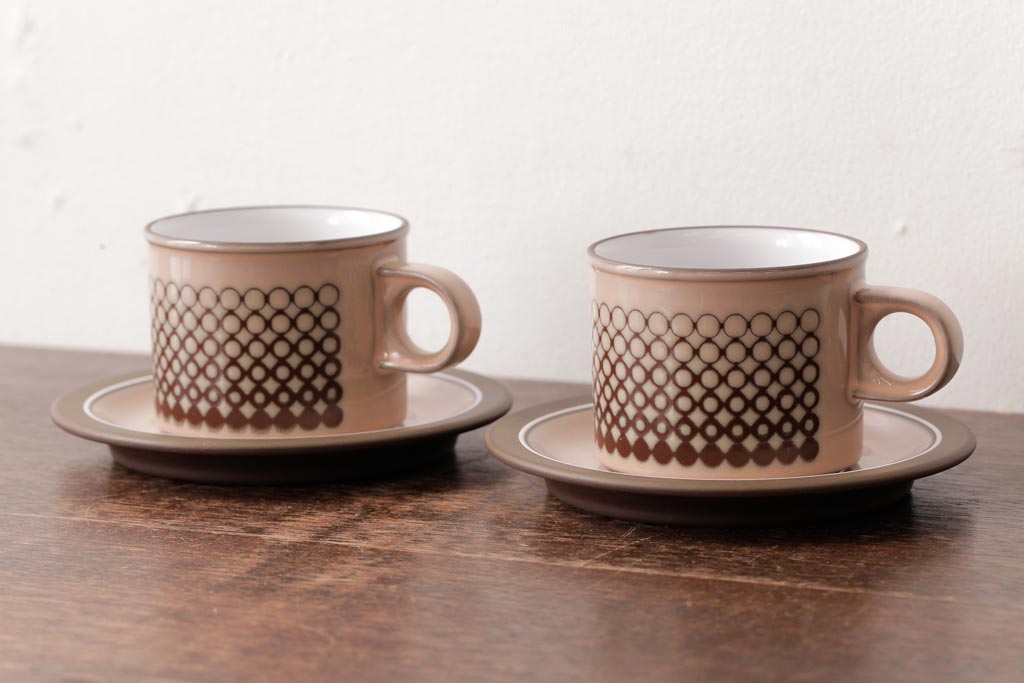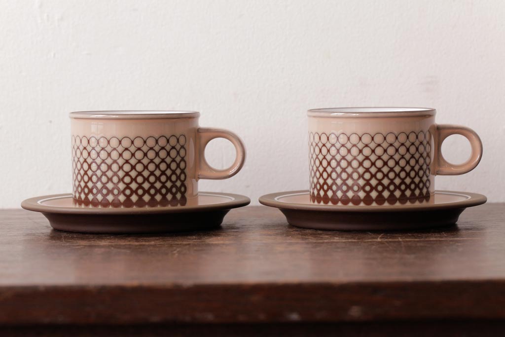 アンティーク雑貨 イギリスビンテージ HORNSEA(ホーンジー) CORAL(コーラル) カップ&ソーサー2客セット(洋食器)(R-036410)