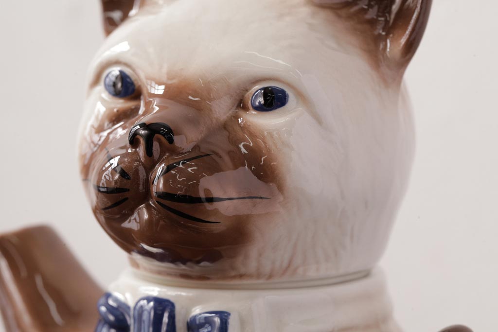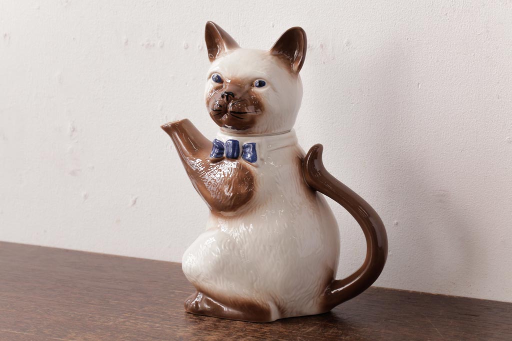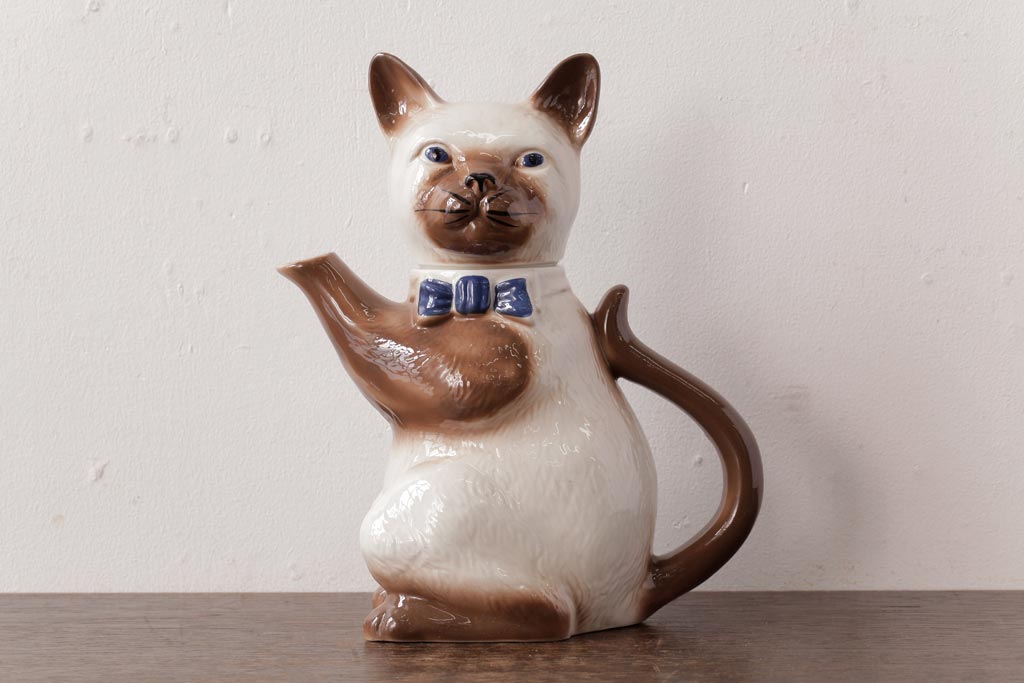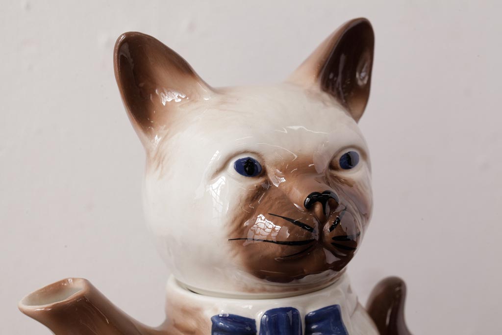 ヴィンテージ雑貨 イギリスビンテージ Tony wood(トニーウッド) シャム猫型のティーポット(ネコ型ポット、茶器)