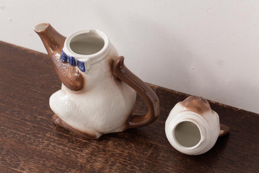 ラフジュ工房> 洋食器・キッチン用品> ポット・シュガーポット・クリーマー > ヴィンテージ雑貨 イギリスビンテージ Tony wood(トニーウッド) シャム猫型のティーポット(ネコ型ポット、茶器)