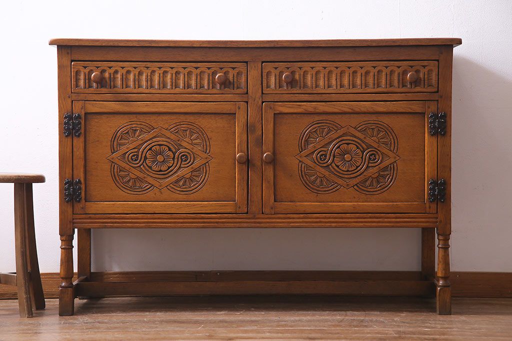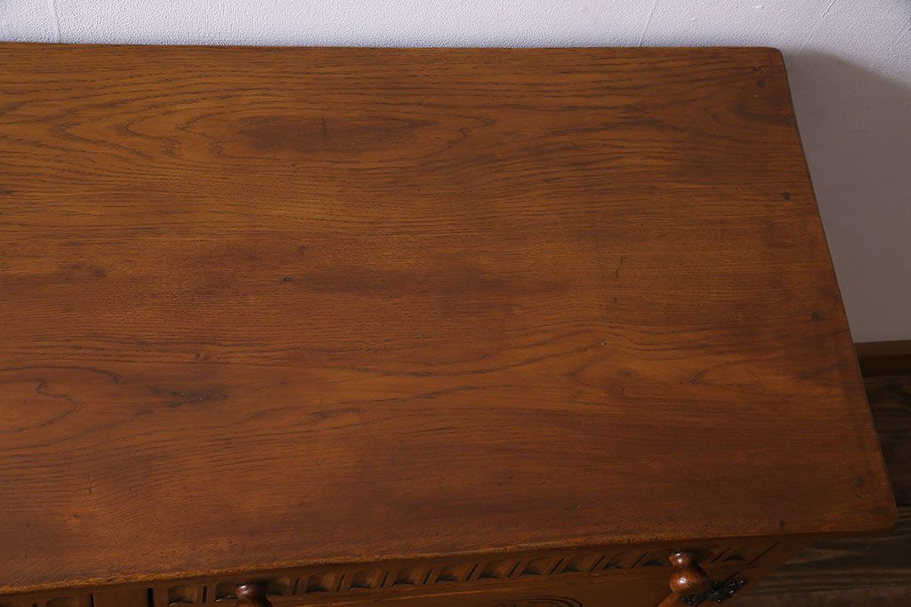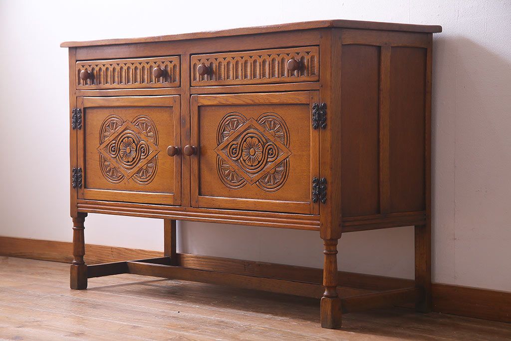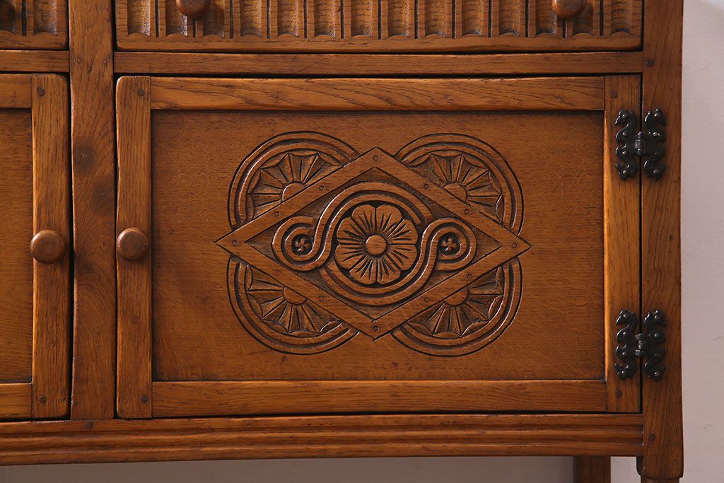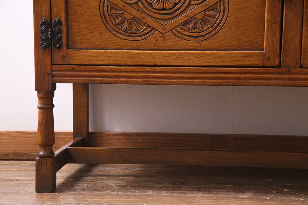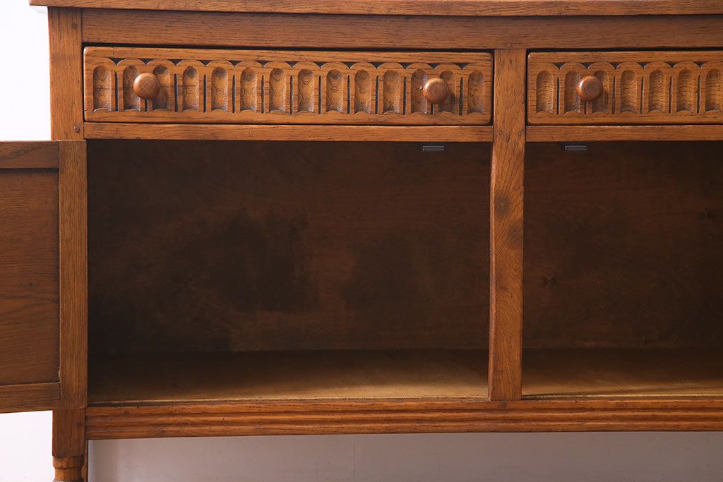 ビンテージ家具 フランスヴィンテージ オーク材 緻密なレリーフが魅力的なサイドボード(収納棚)(R-036967)