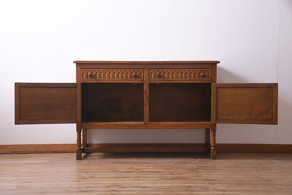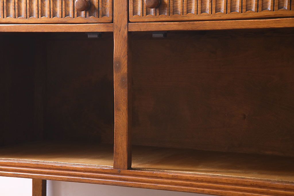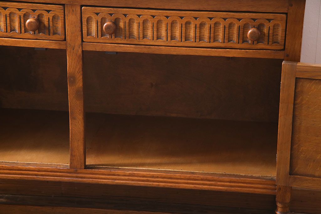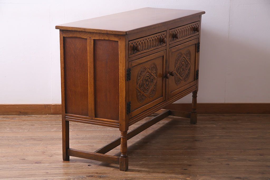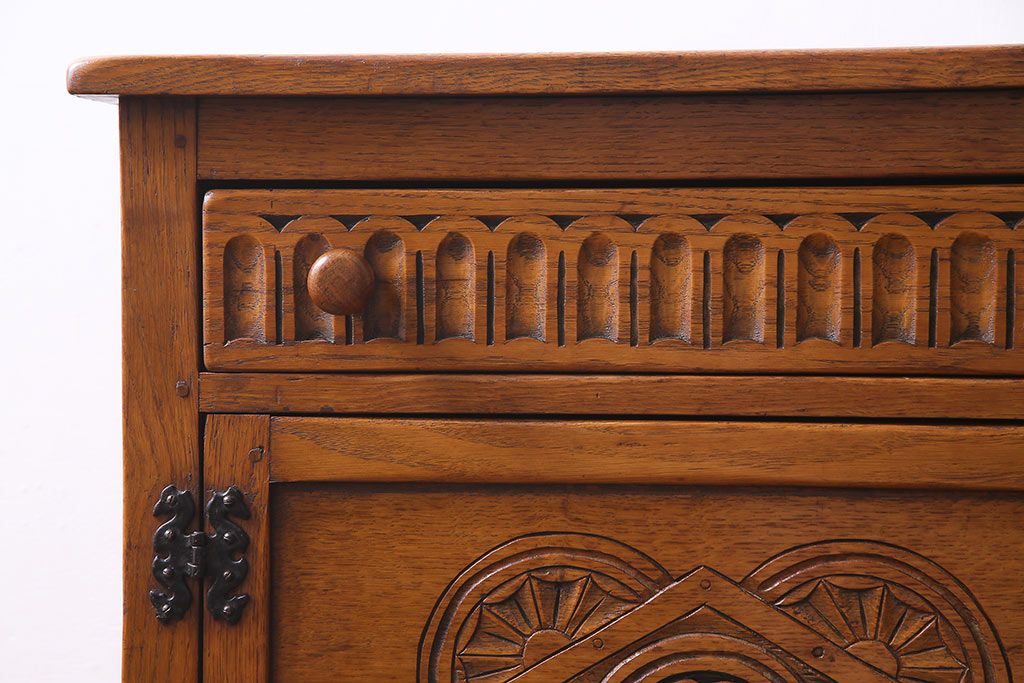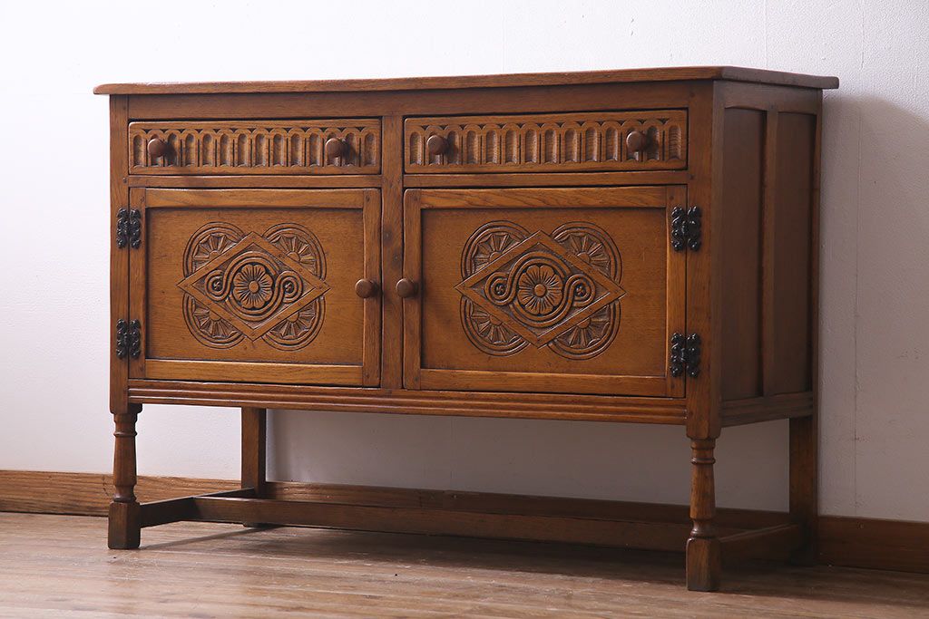 ビンテージ家具 フランスヴィンテージ オーク材 緻密なレリーフが魅力的なサイドボード(収納棚)(R-036967)