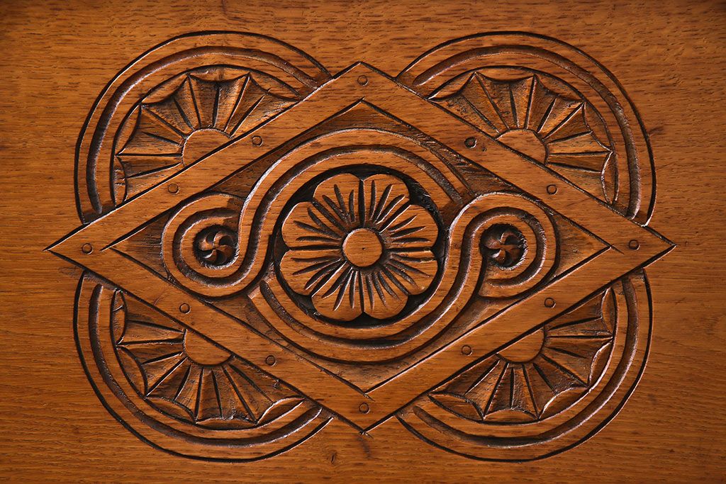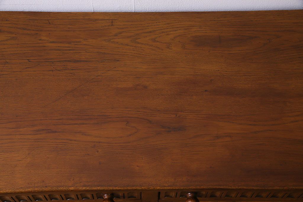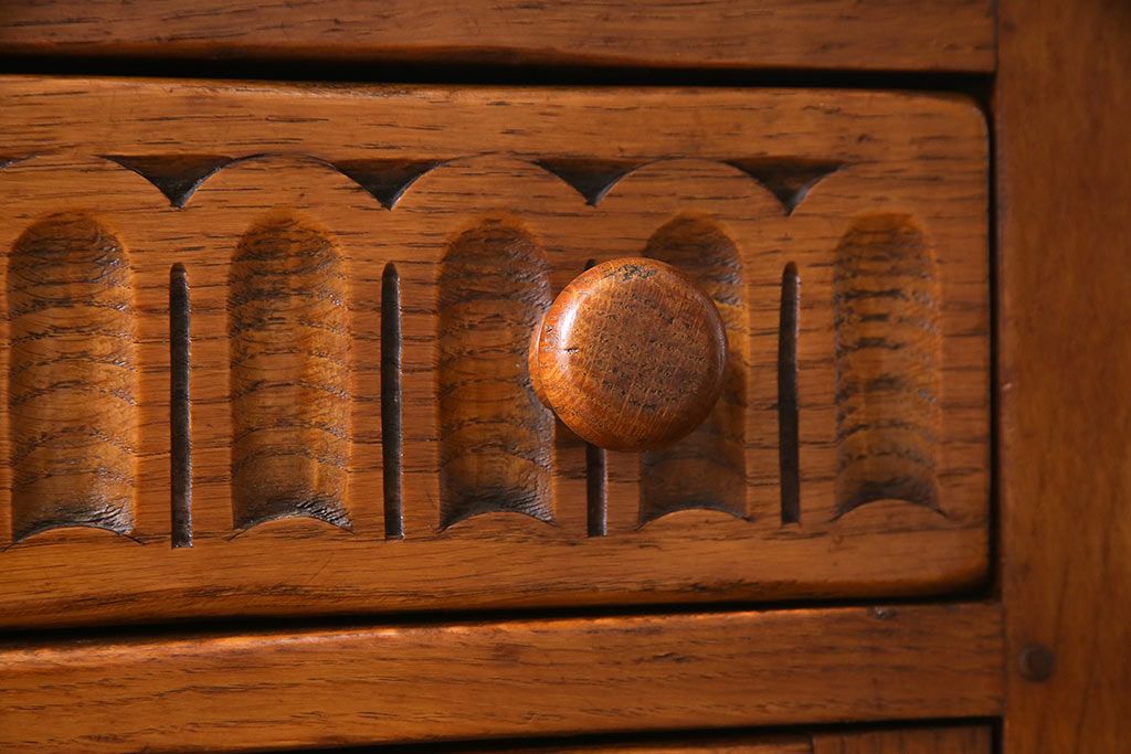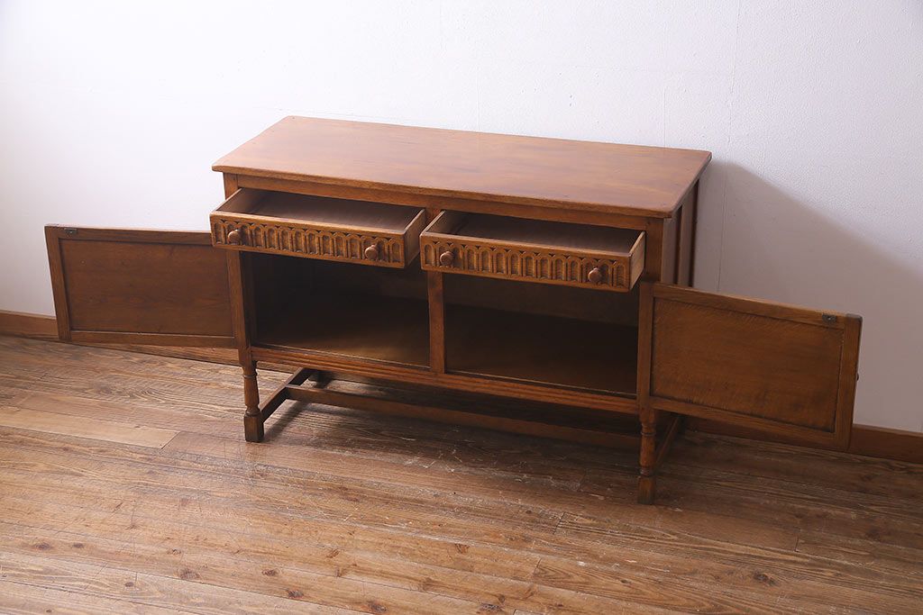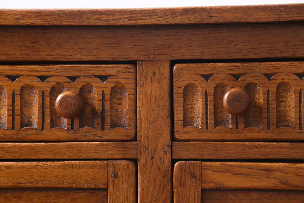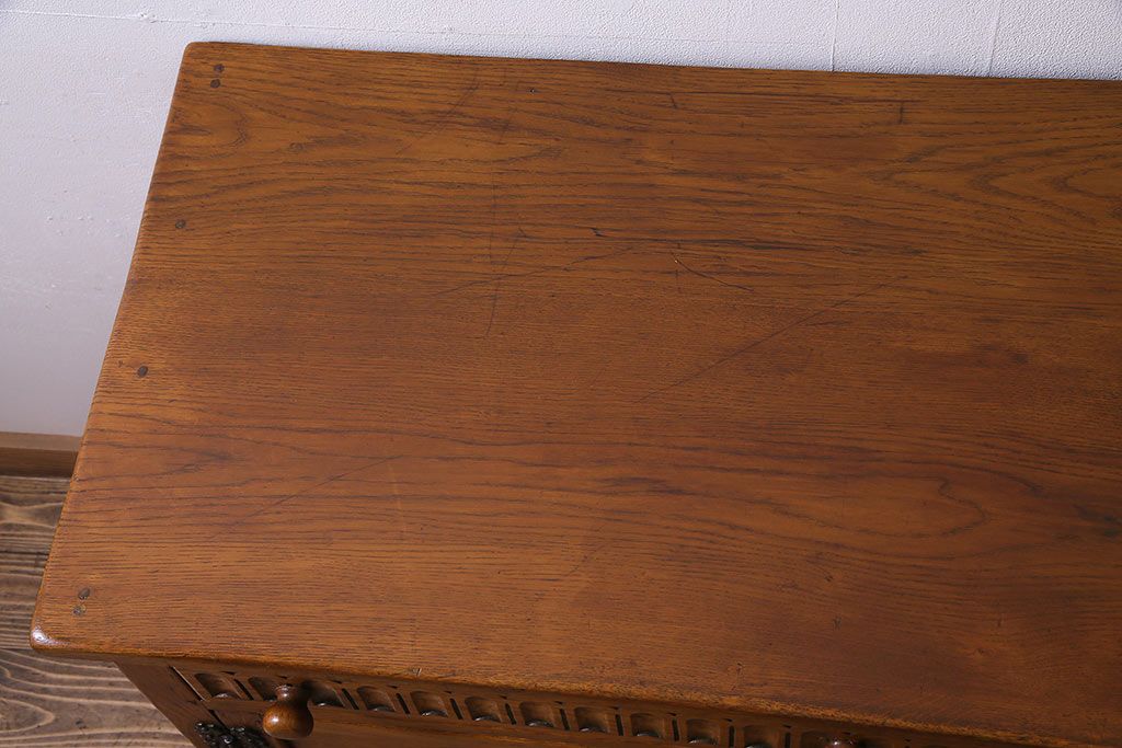 ビンテージ家具 フランスヴィンテージ オーク材 緻密なレリーフが魅力的なサイドボード(収納棚)(R-036967)