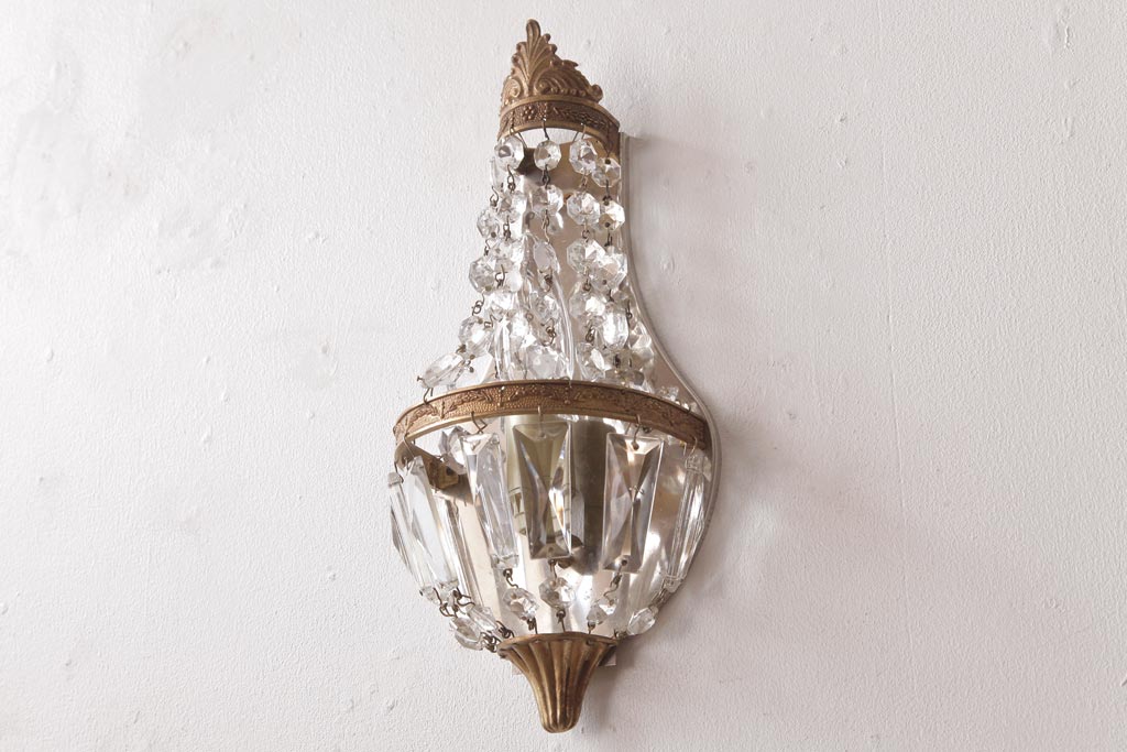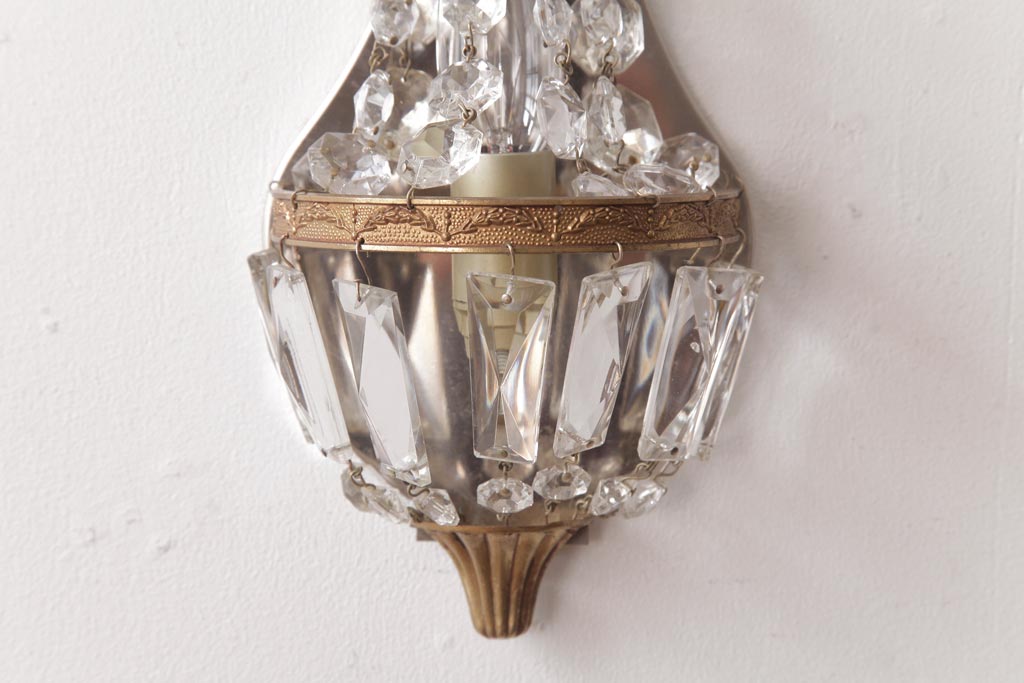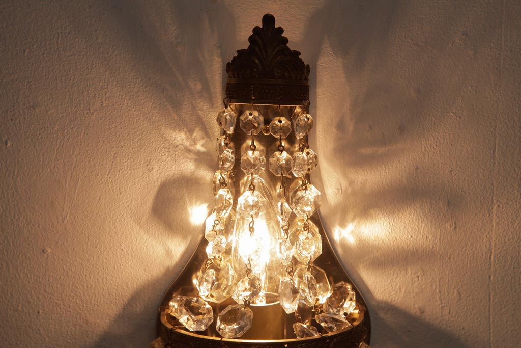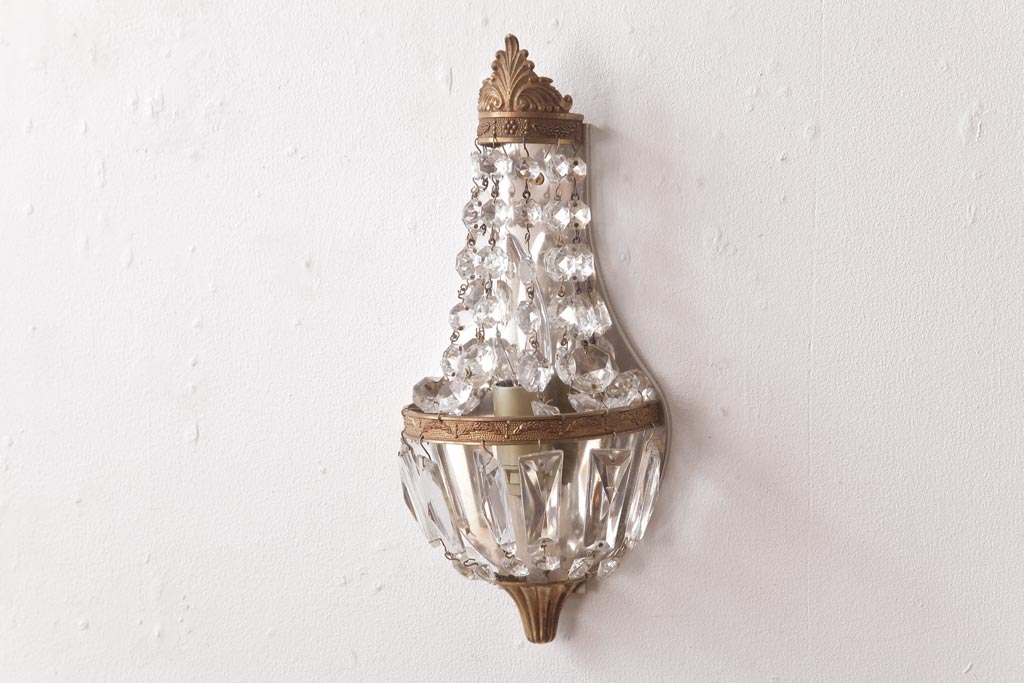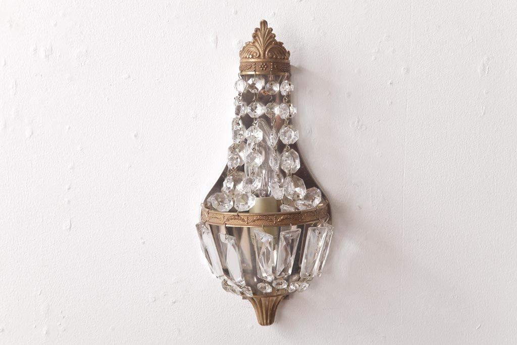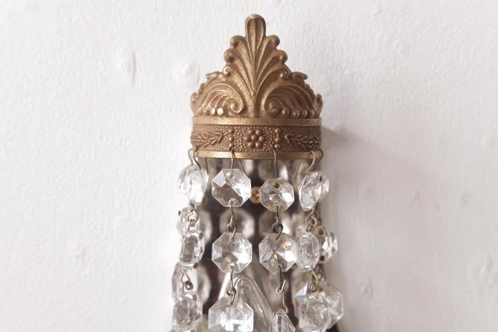 ビンテージ照明 フランスヴィンテージ 真鍮製 エンパイア様式 ガラスドロップが素敵な小振りのウォールランプ(壁掛け照明)(R-036979)