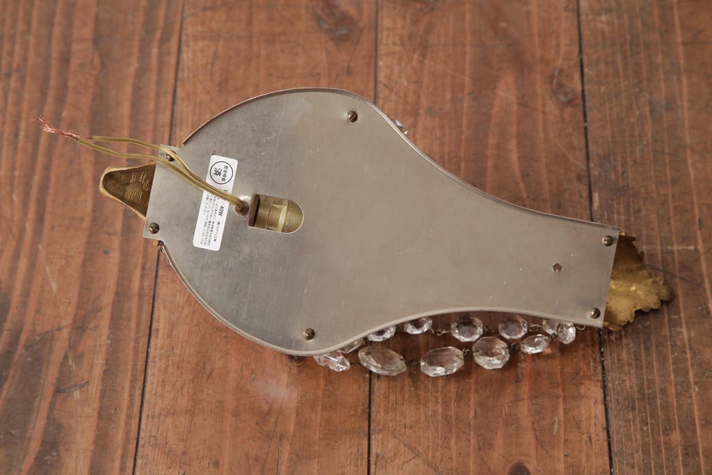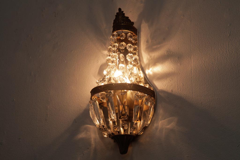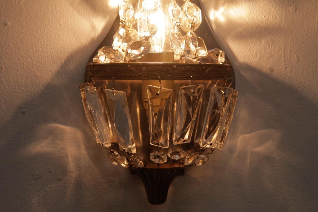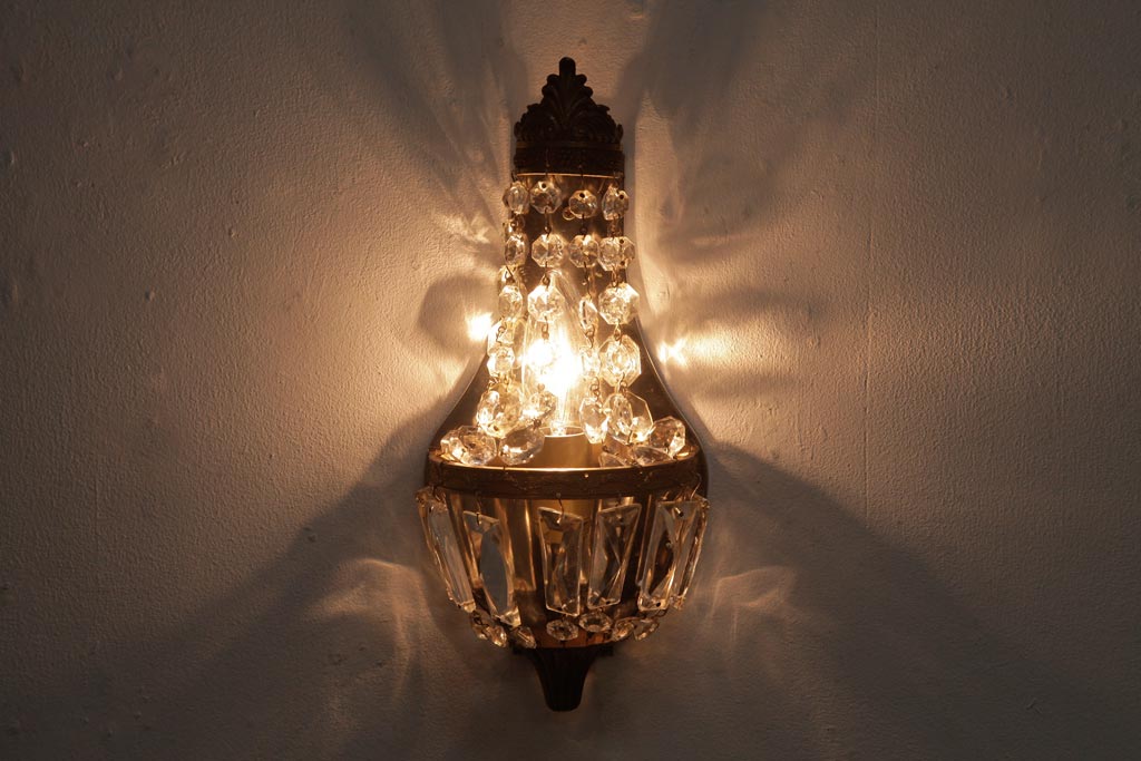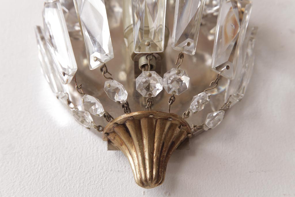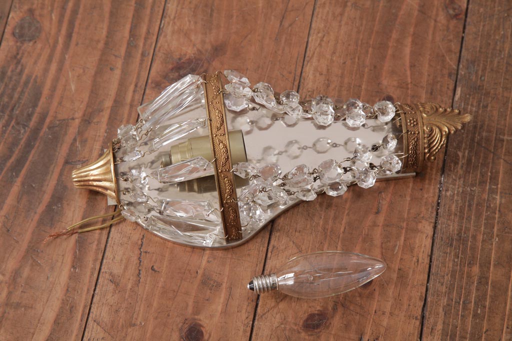 ビンテージ照明 フランスヴィンテージ 真鍮製 エンパイア様式 ガラスドロップが素敵な小振りのウォールランプ(壁掛け照明)(R-036979)