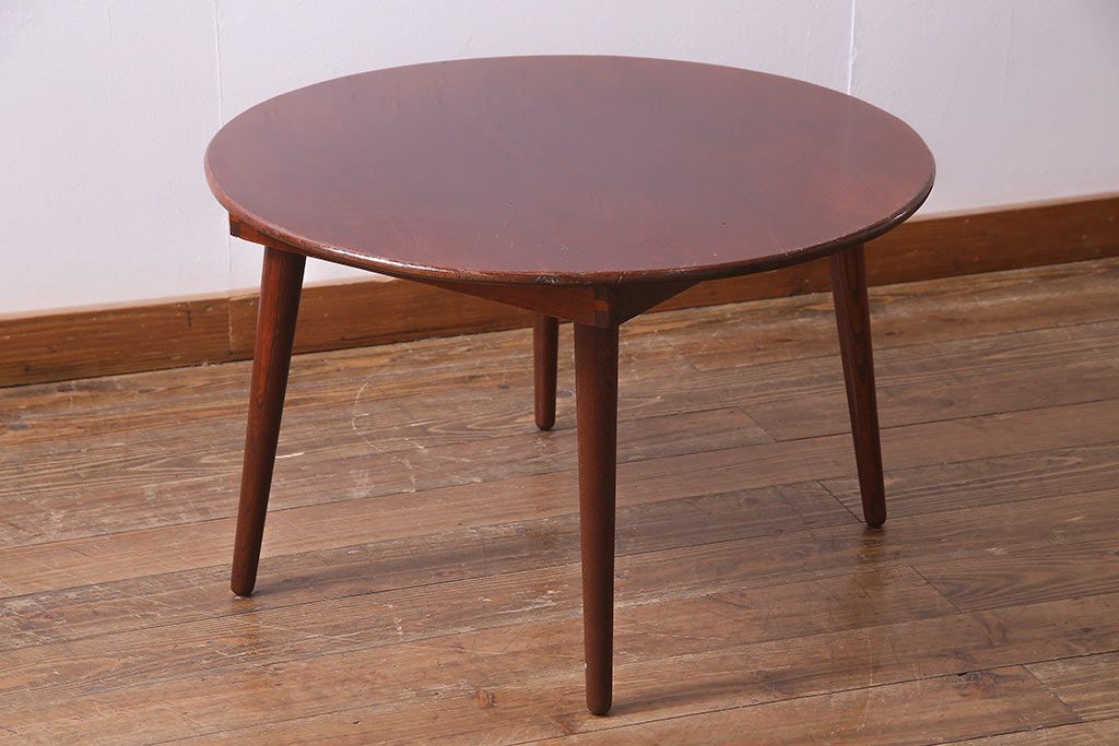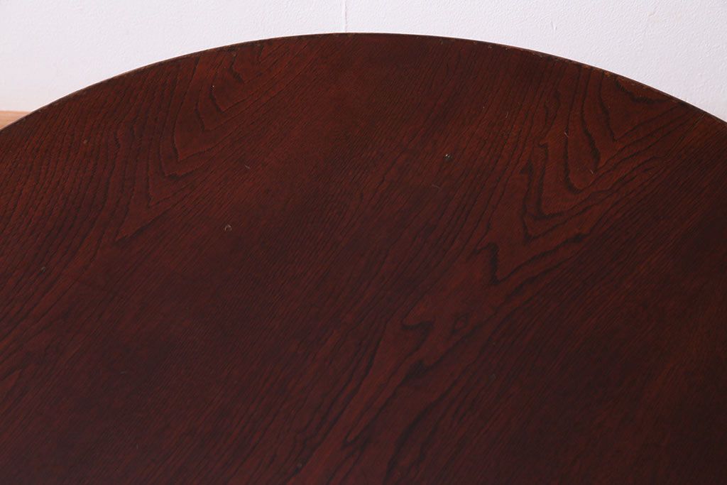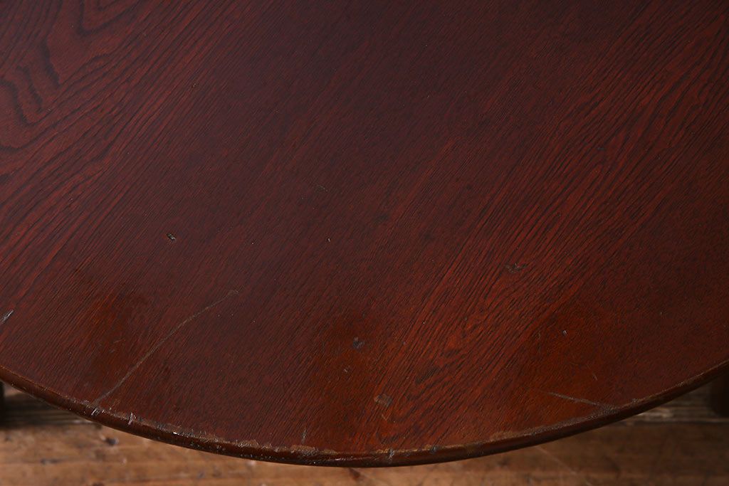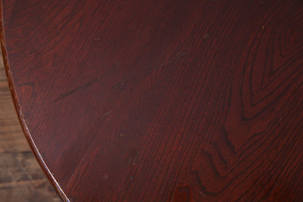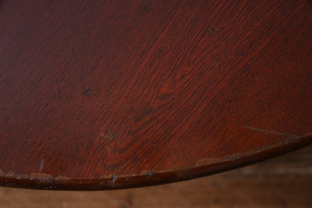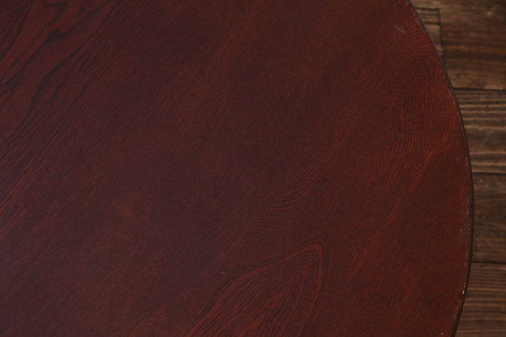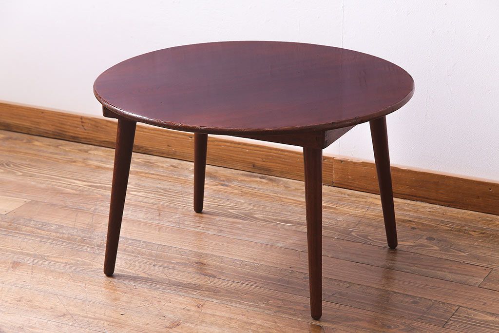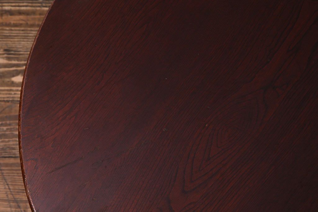 テーブル> 丸テーブル > レトロ家具 昭和初期 脚付リメイク 天板栓材 赤みがかった艶がきれいな漆塗りの丸ちゃぶ台(ラウンドテーブル)(R-36993)