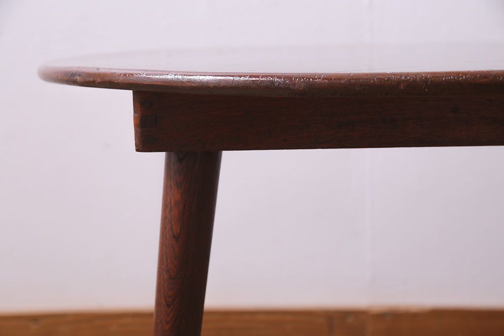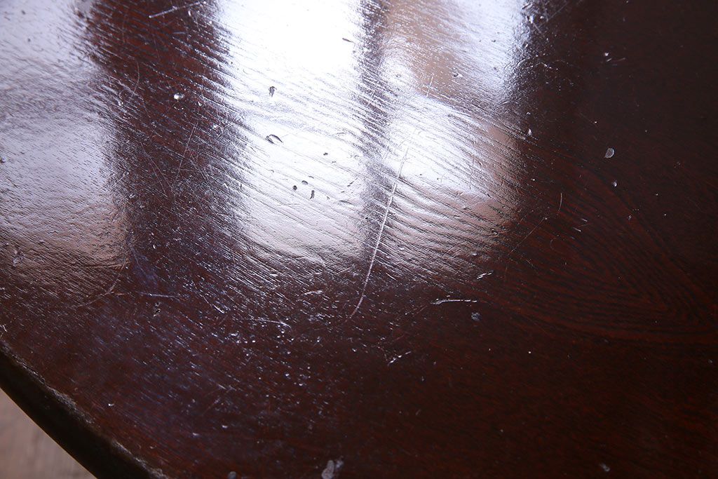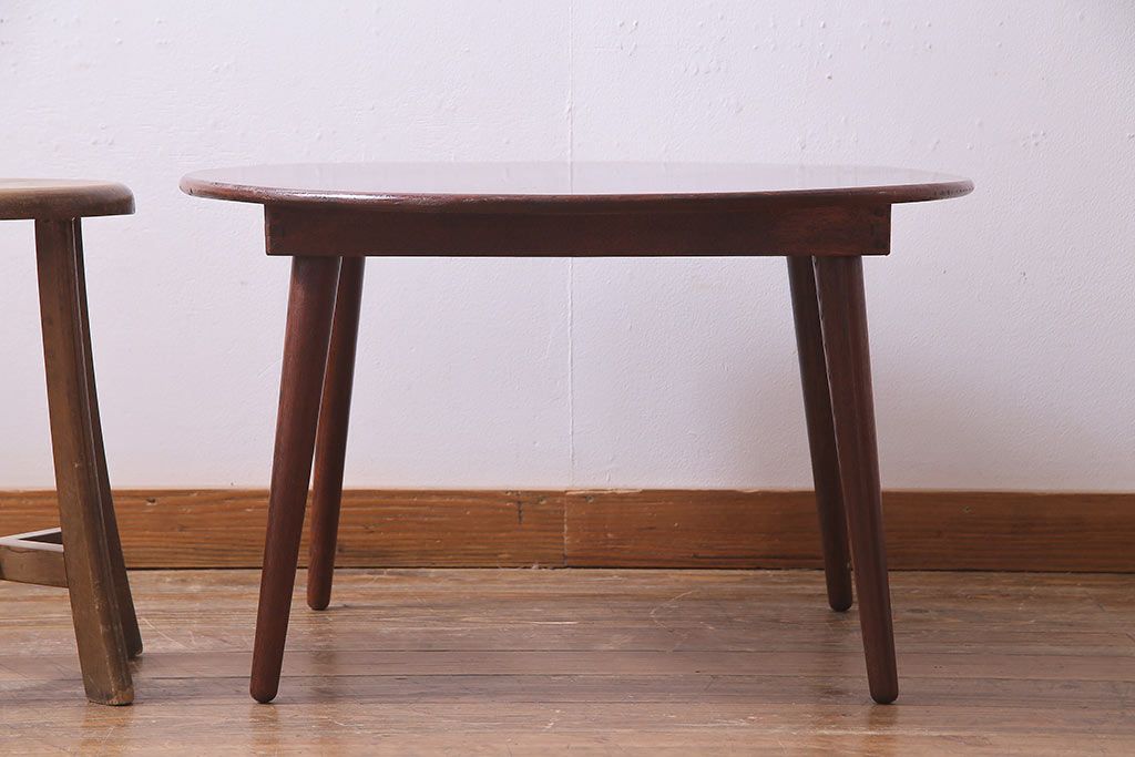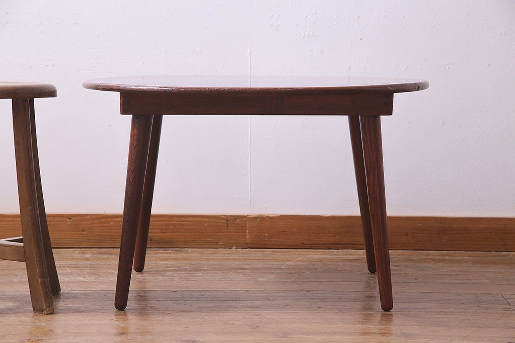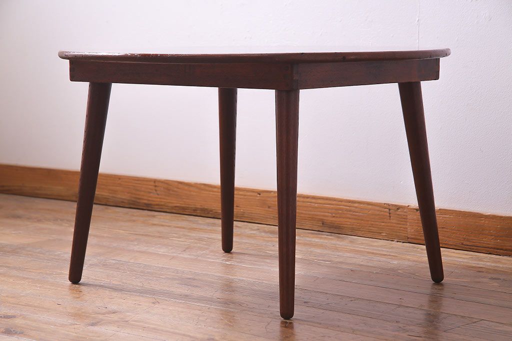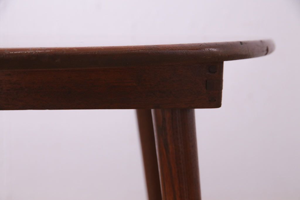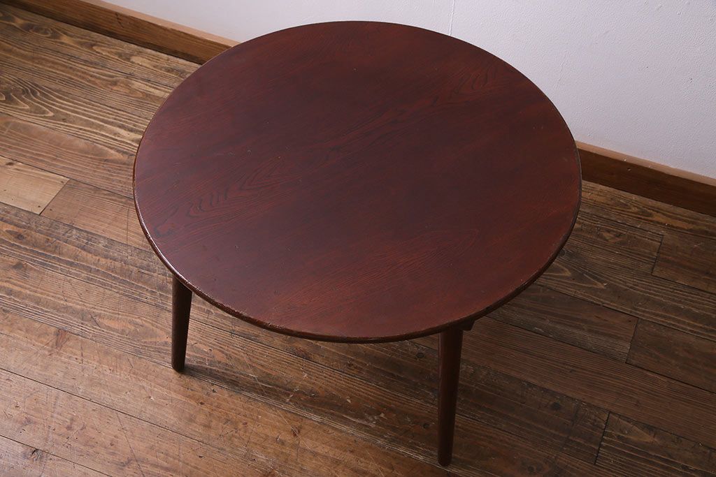 テーブル> ちゃぶ台 > レトロ家具 昭和初期 脚付リメイク 天板栓材 赤みがかった艶がきれいな漆塗りの丸ちゃぶ台(ラウンドテーブル)(R-36993)