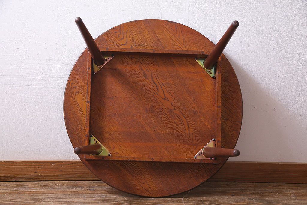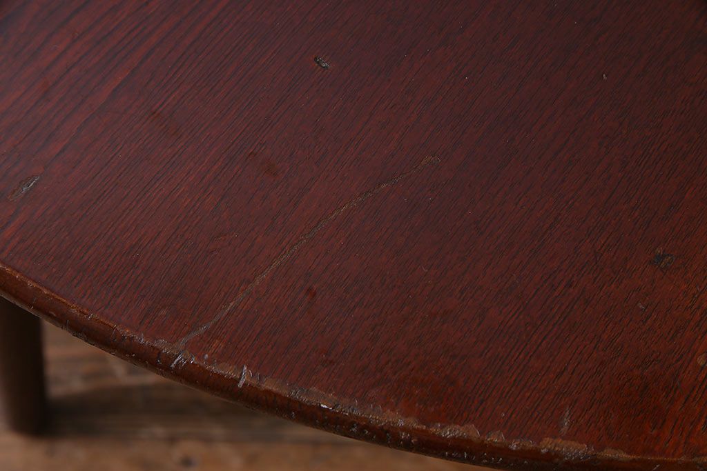 レトロ家具 昭和初期 脚付リメイク 天板栓材 赤みがかった艶がきれいな漆塗りの丸ちゃぶ台(ラウンドテーブル)(R-36993)