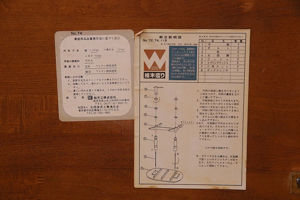 中古 ビンテージ家具 柏木工 ブナ材 温もりと気品が織り交じるダイニングテーブル(4人掛け、机)(R-037138)です。
