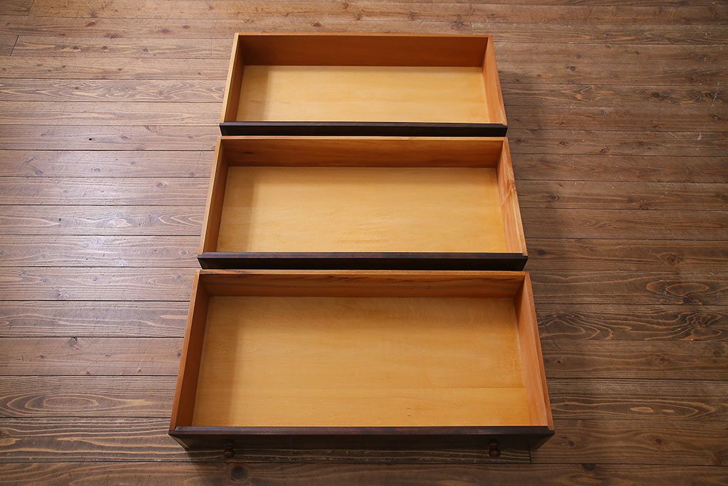 中古 リメイク 松本民芸家具 取り入れやすいサイズのローボード(ローチェスト、引き出し)(R-037144)