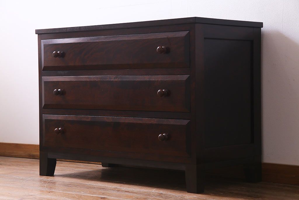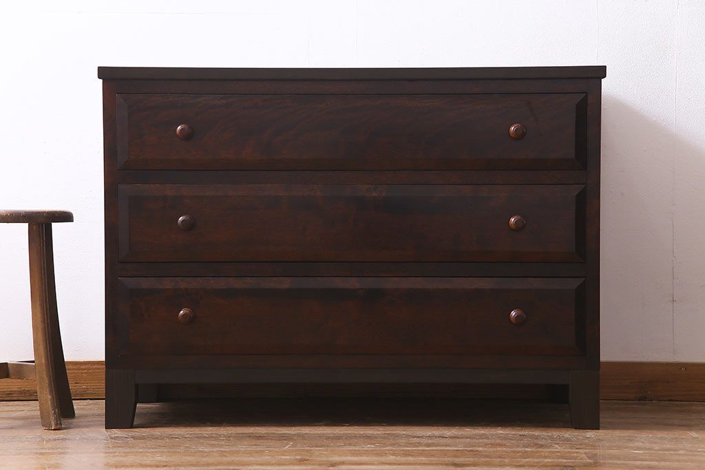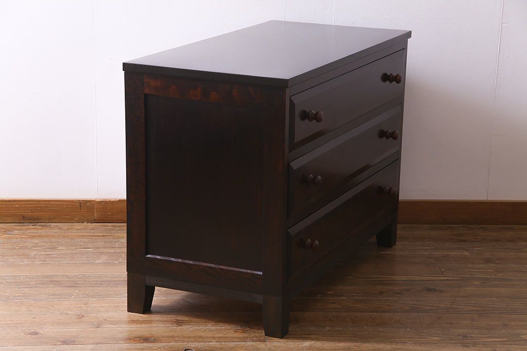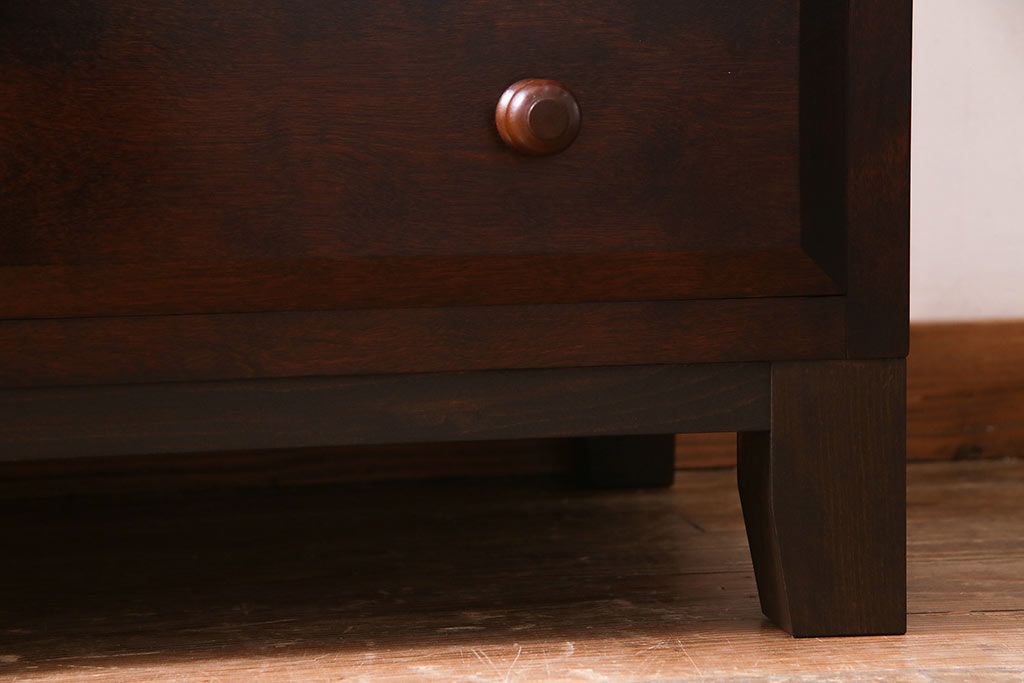 中古 当店リメイク 松本民芸家具 シンプルでシックなローボード(ローチェスト、引き出し)(R-036983)