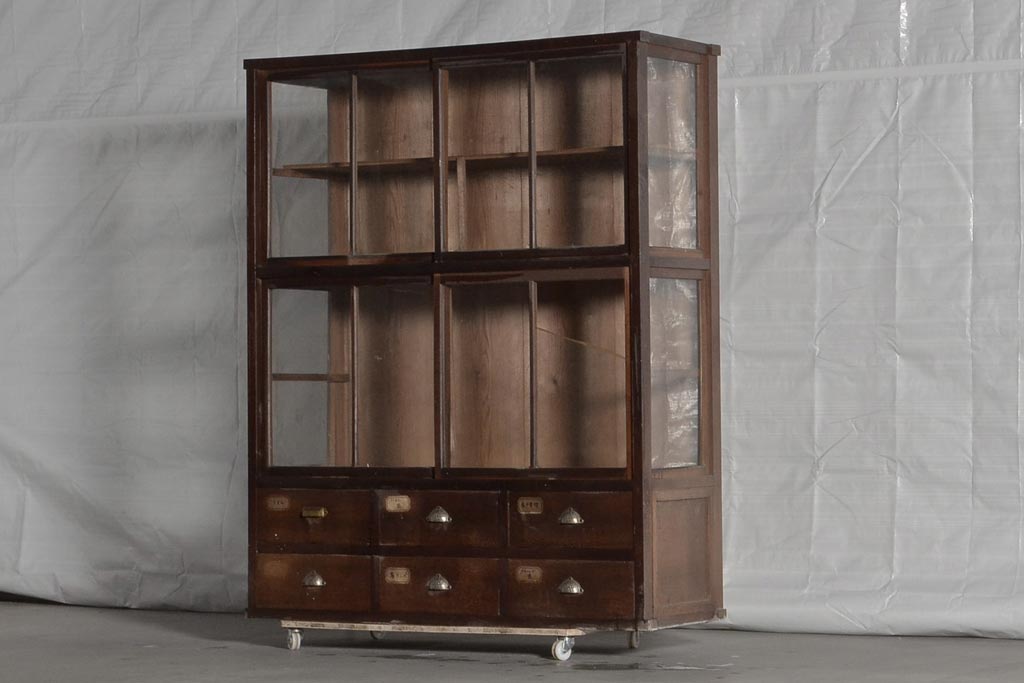 ラフジュ工房> 店長おすすめの逸品 > アンティーク家具 引き出し付き レトロな三面ガラスキャビネット(ガラスケース、飾り棚、収納棚)(R-036309)