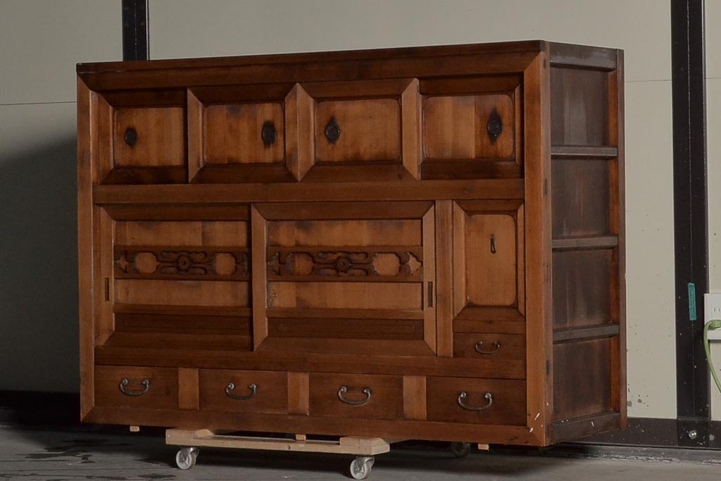 アンティーク家具 檜材 造りが凝っている五尺水屋箪笥サイドボード(R-036343)