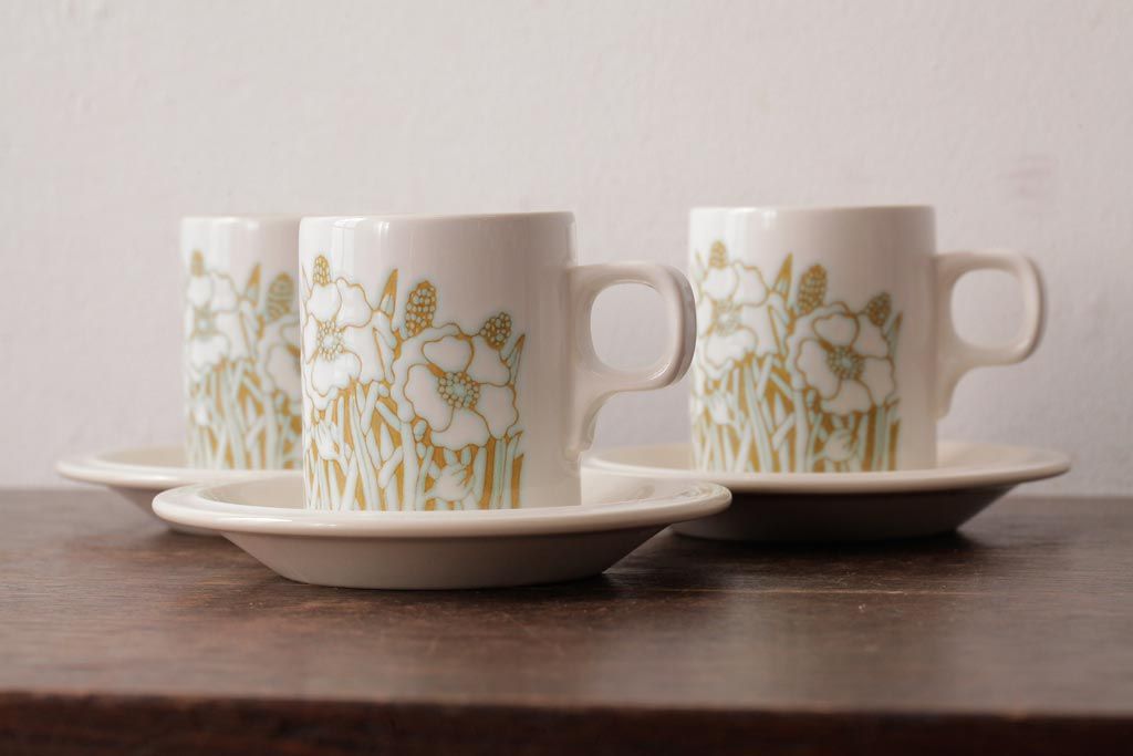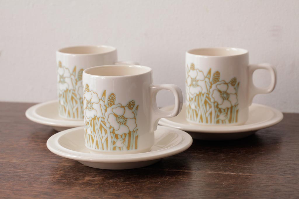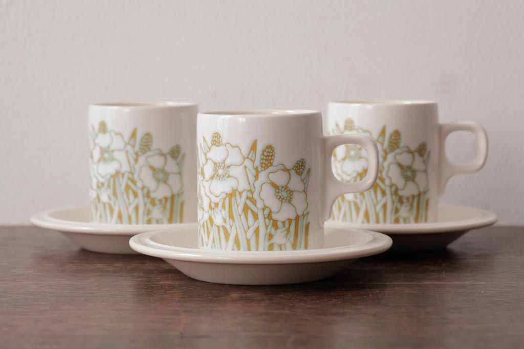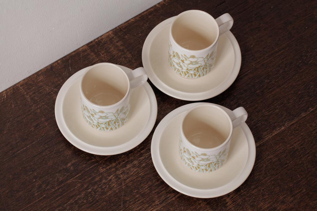 ヴィンテージ雑貨 イギリスビンテージ Hornsea(ホーンジー) FLEUR(フルール) カップ&ソーサー3客セット(R-036419)