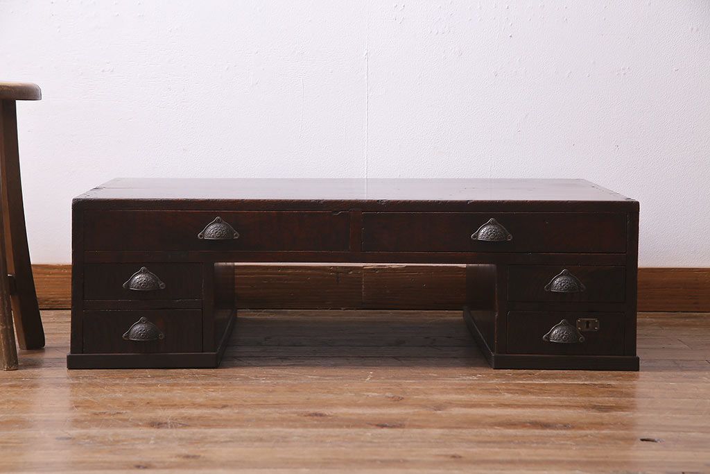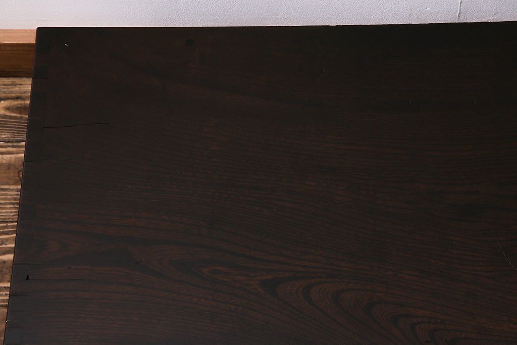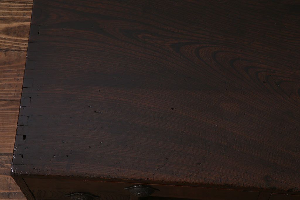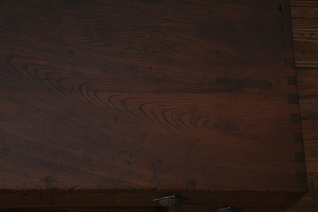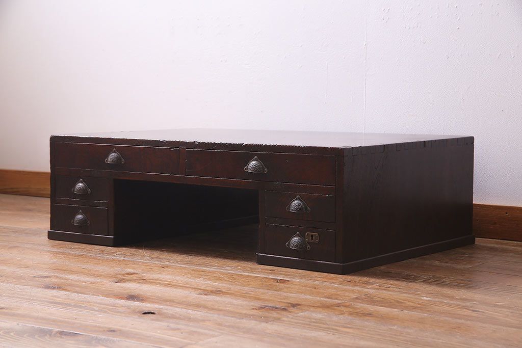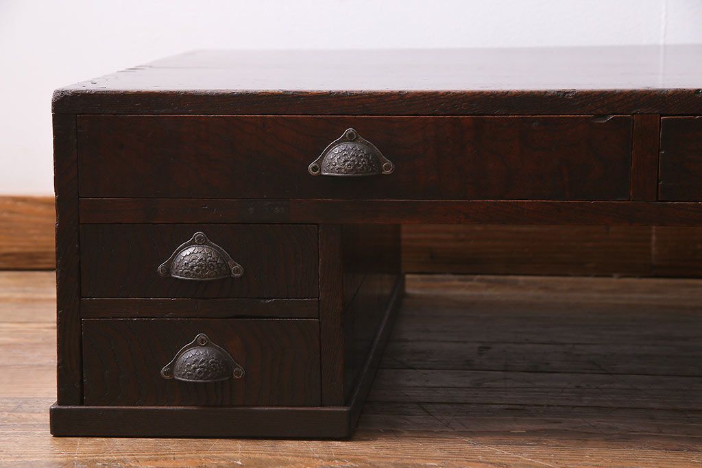 アンティーク家具 大正昭和初期 総ケヤキ材 天板に一枚板が贅沢に使われた両袖文机(両袖机、帳場机)(R-035827)