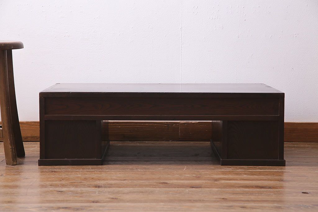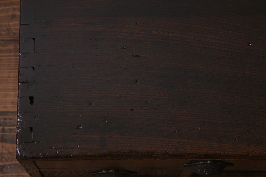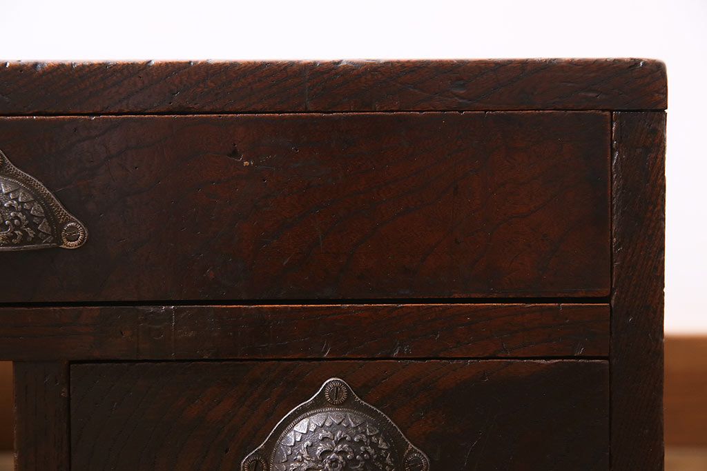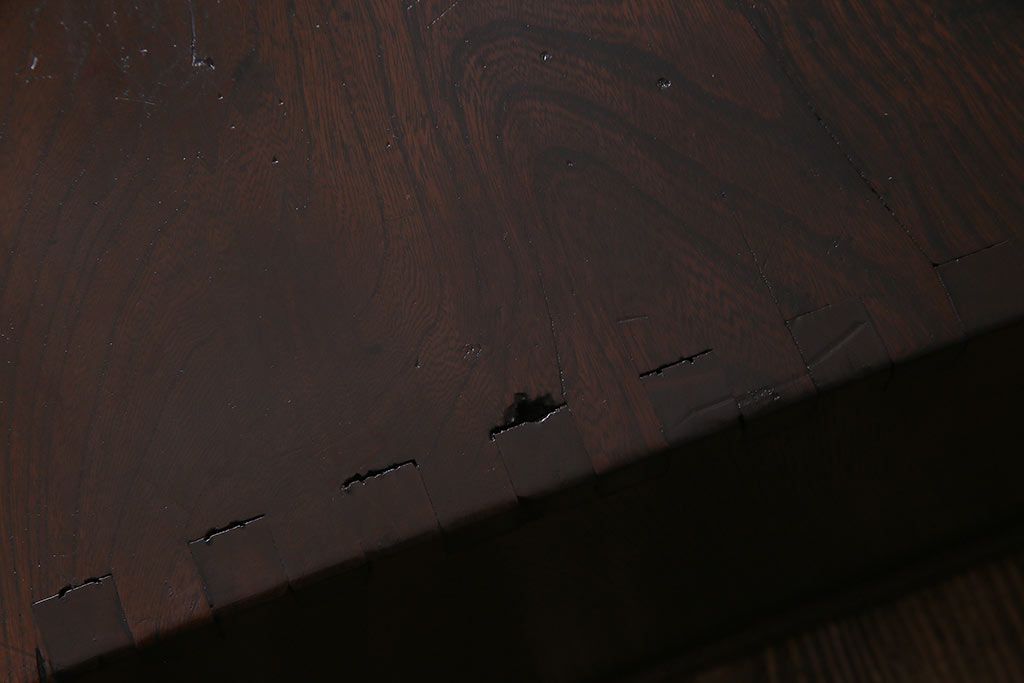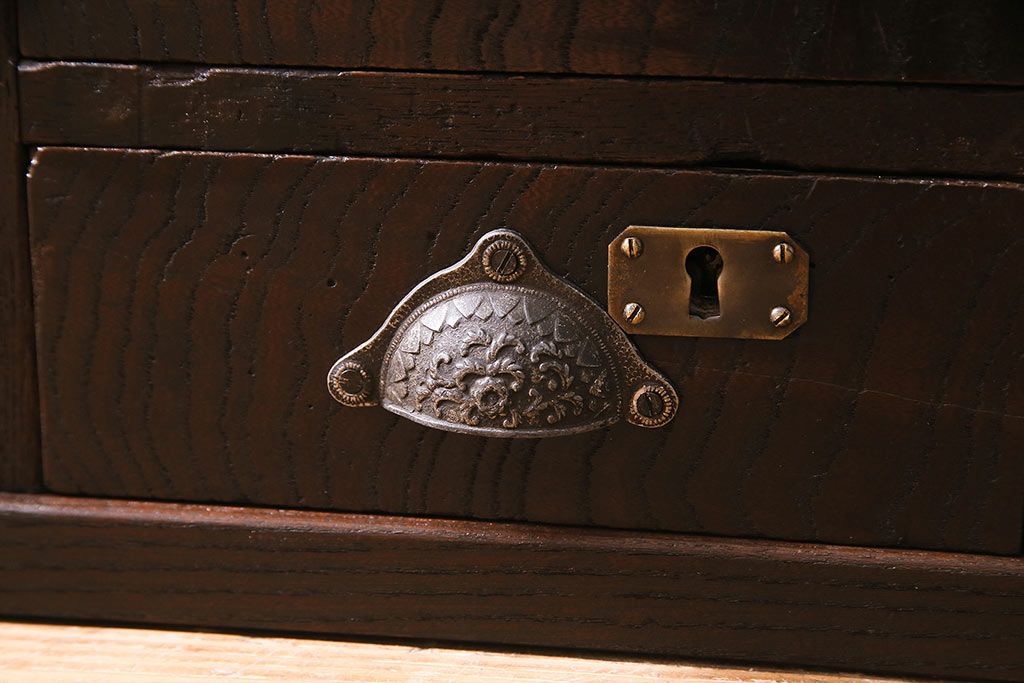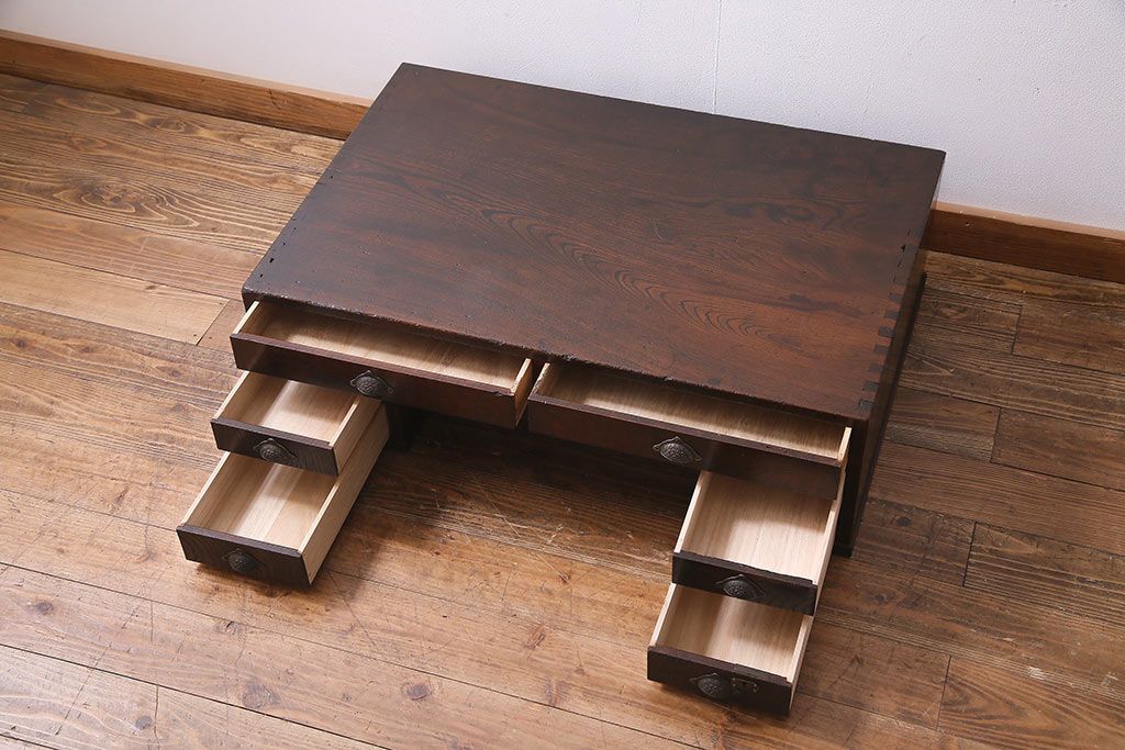 アンティーク家具 大正昭和初期 総ケヤキ材 天板に一枚板が贅沢に使われた両袖文机(両袖机、帳場机)(R-035827)