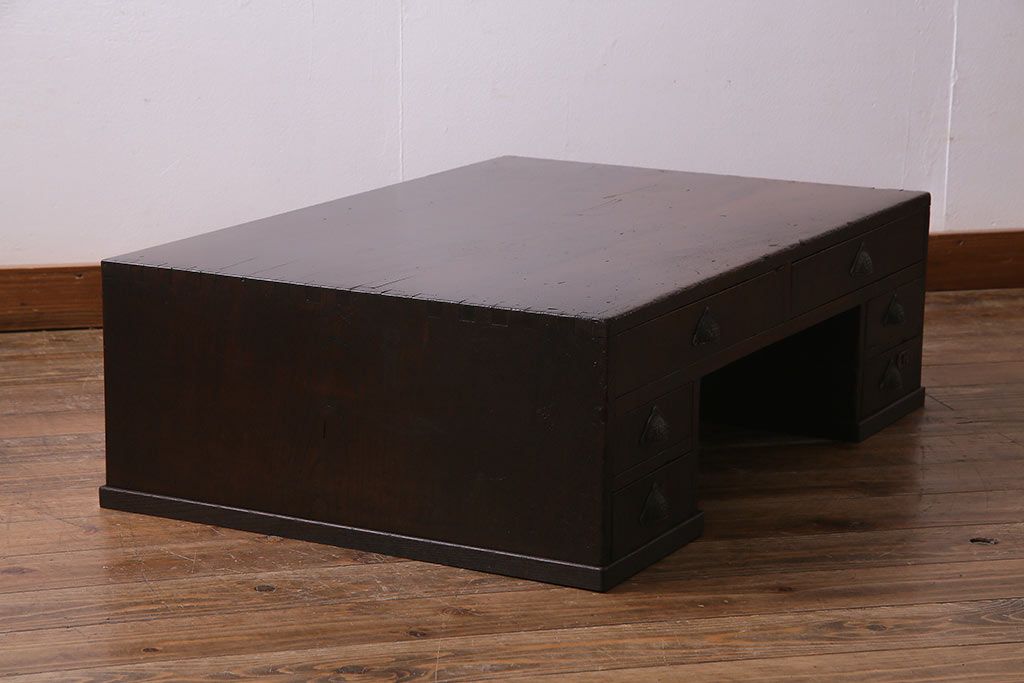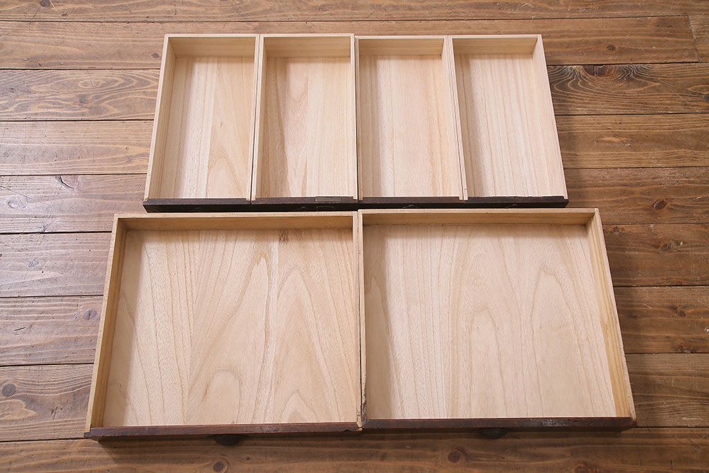 ラフジュ工房> デスク> 文机・座机 > アンティーク家具 大正昭和初期 総ケヤキ材 天板に一枚板が贅沢に使われた両袖文机(両袖机、帳場机)(R-035827)