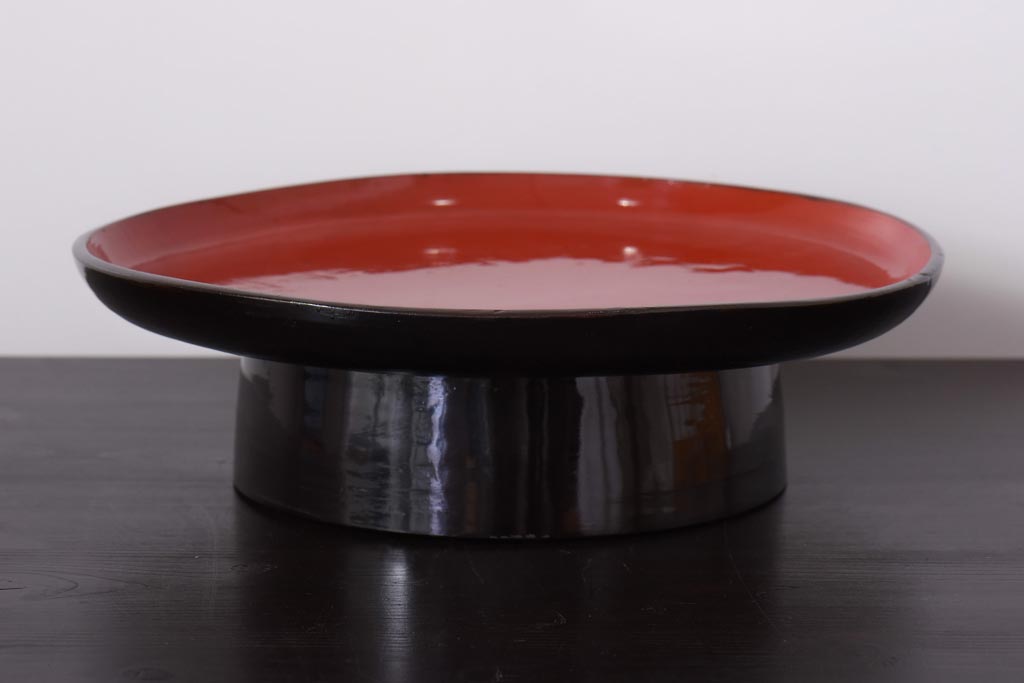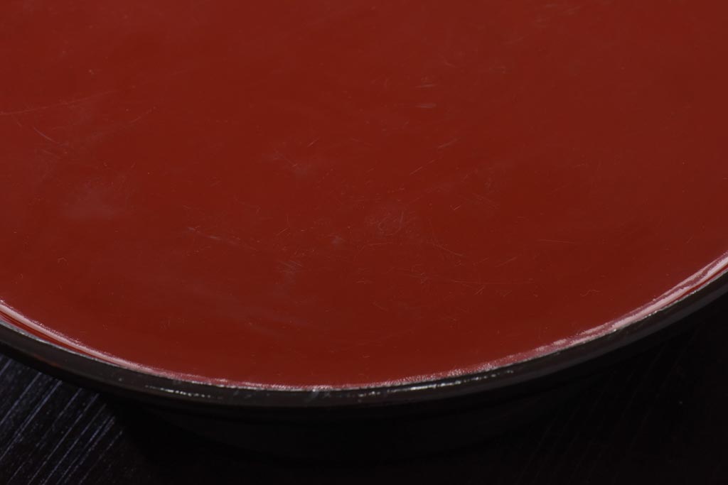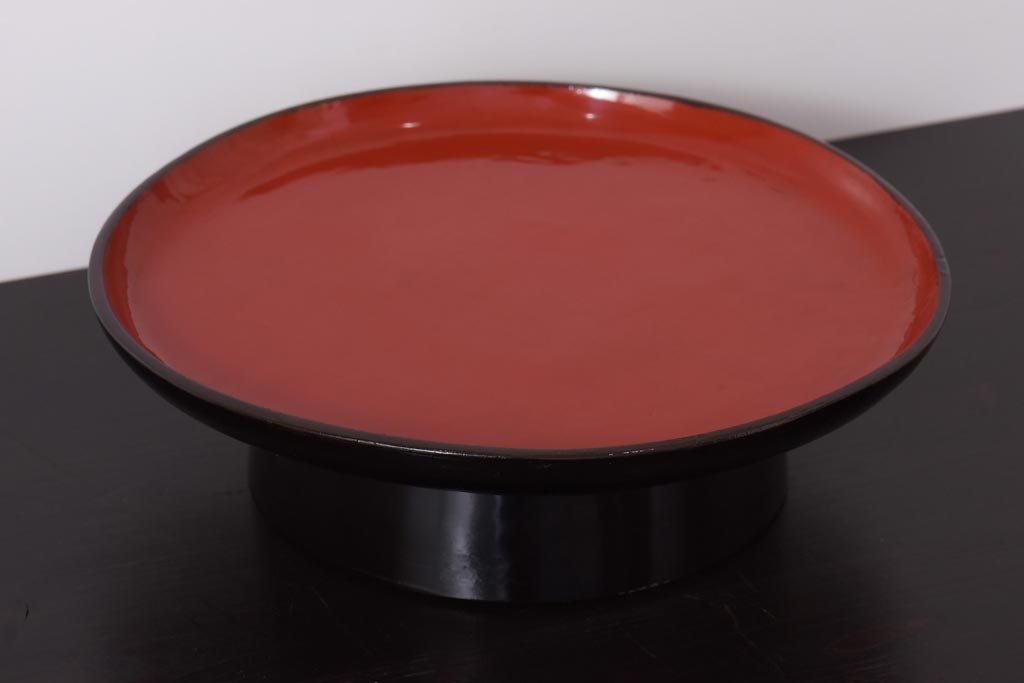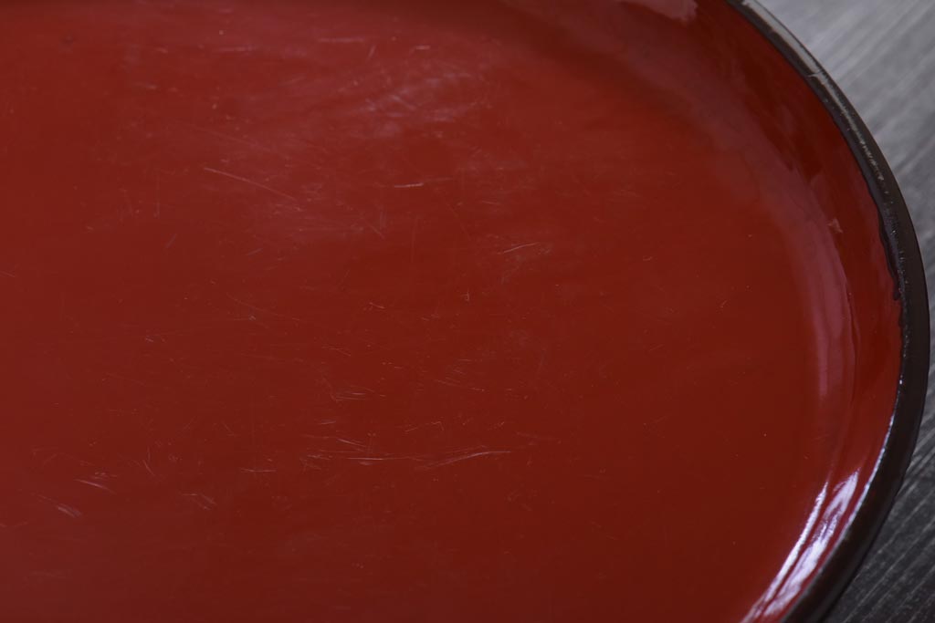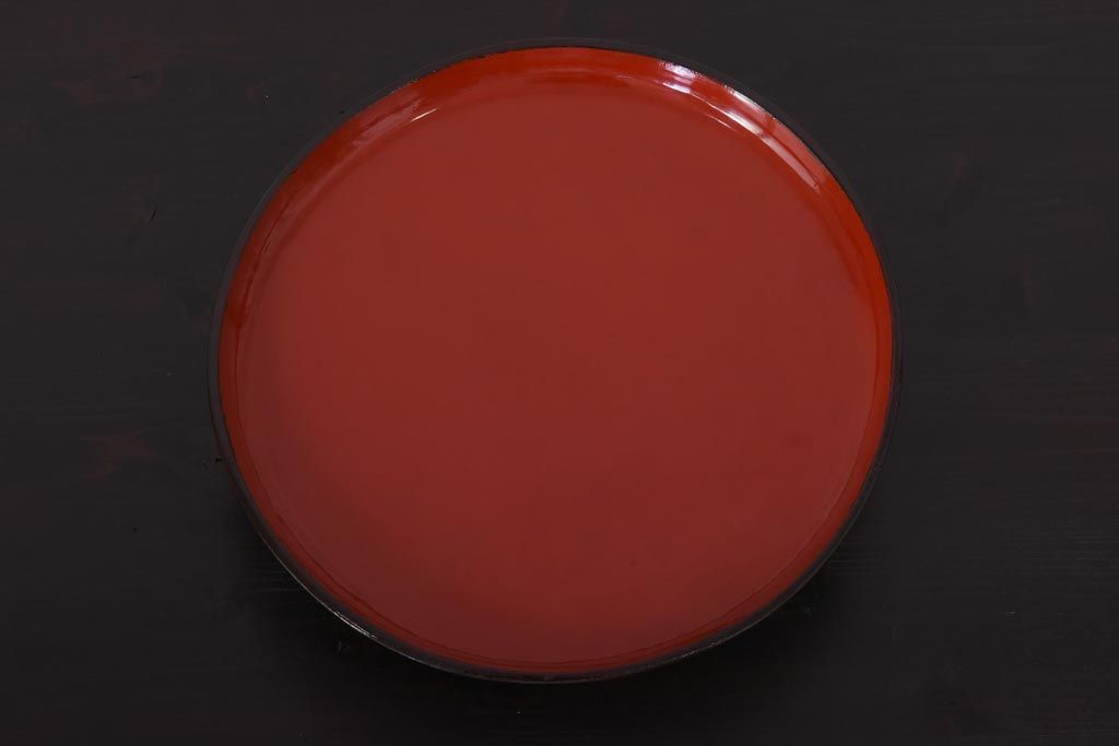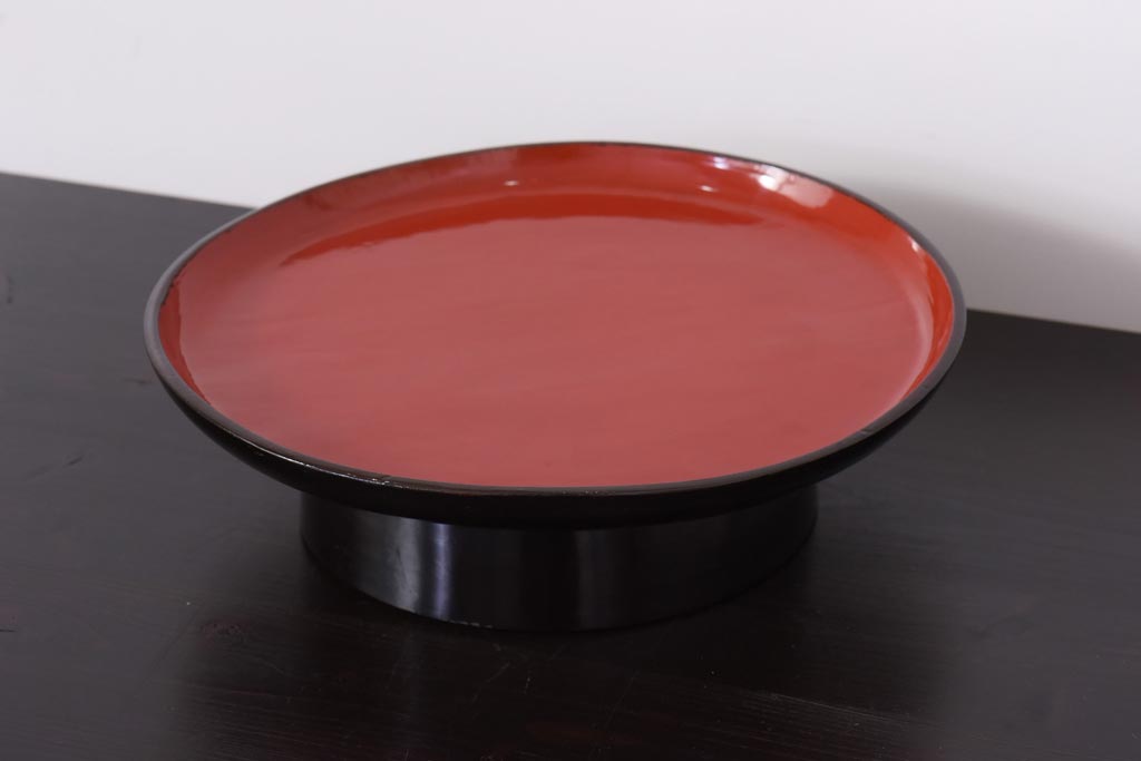 アンティーク雑貨 会津漆器 朱赤の漆塗りが美しい高台付き丸盆(丸膳)(R-036480)