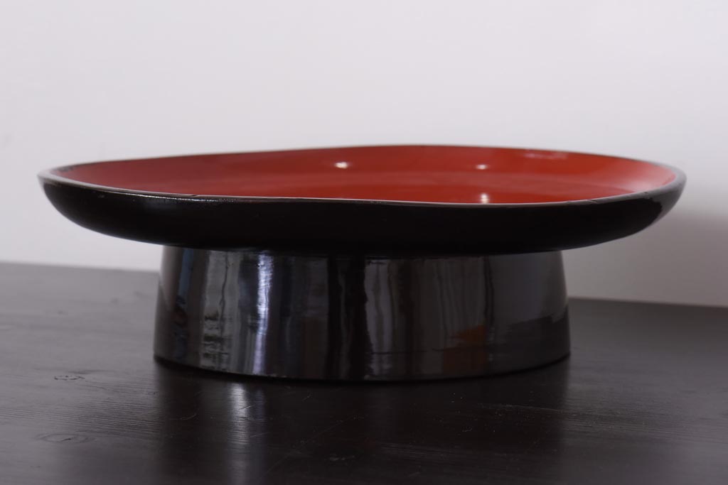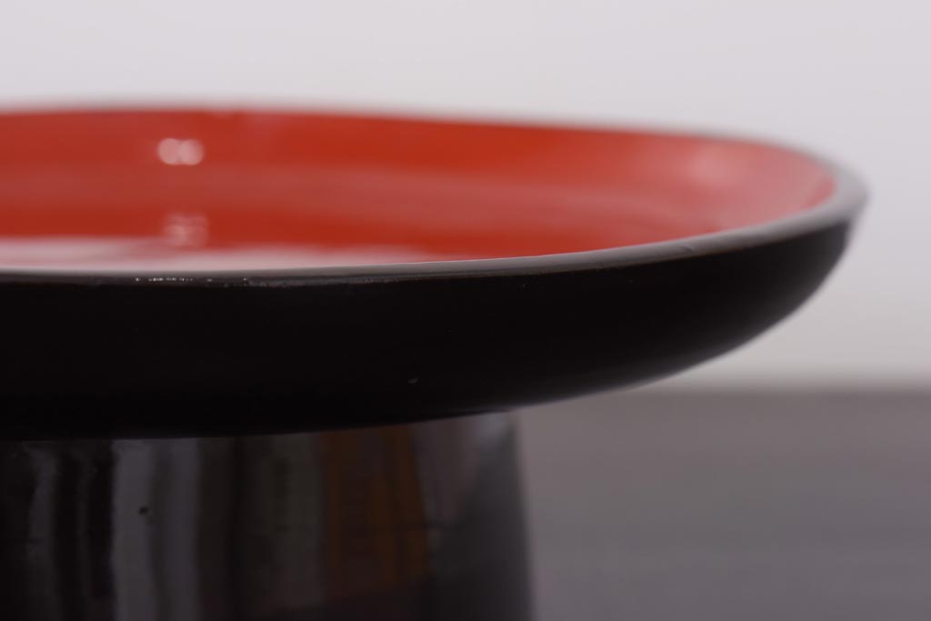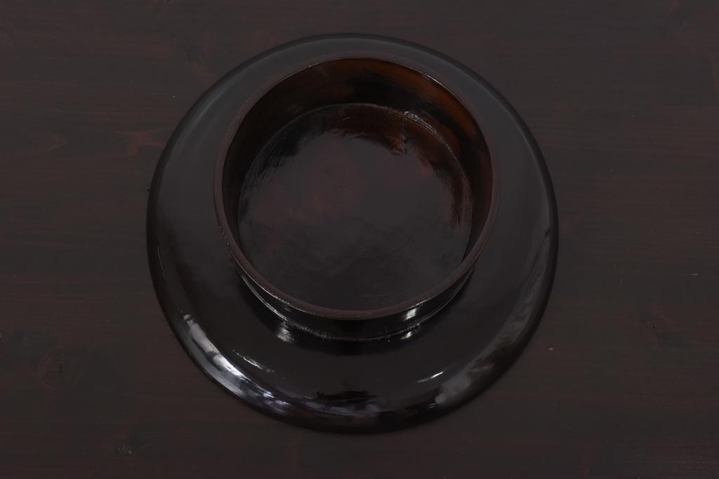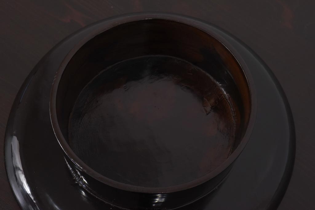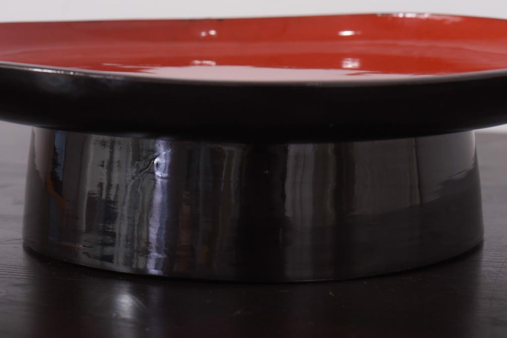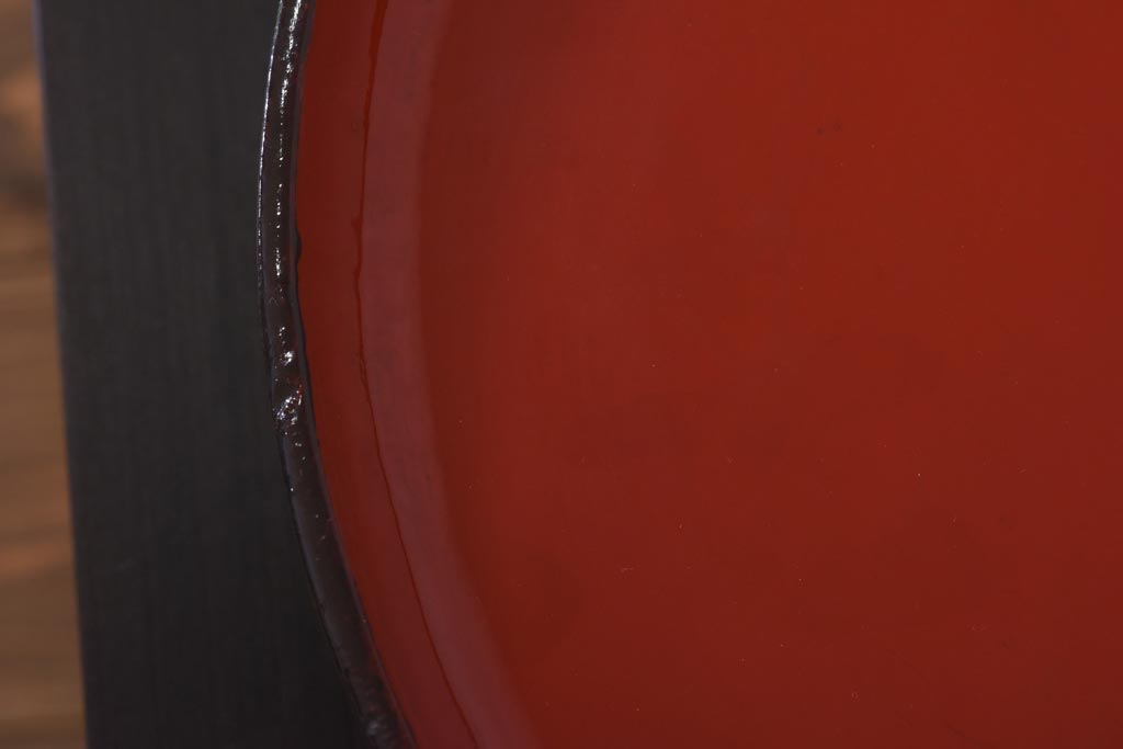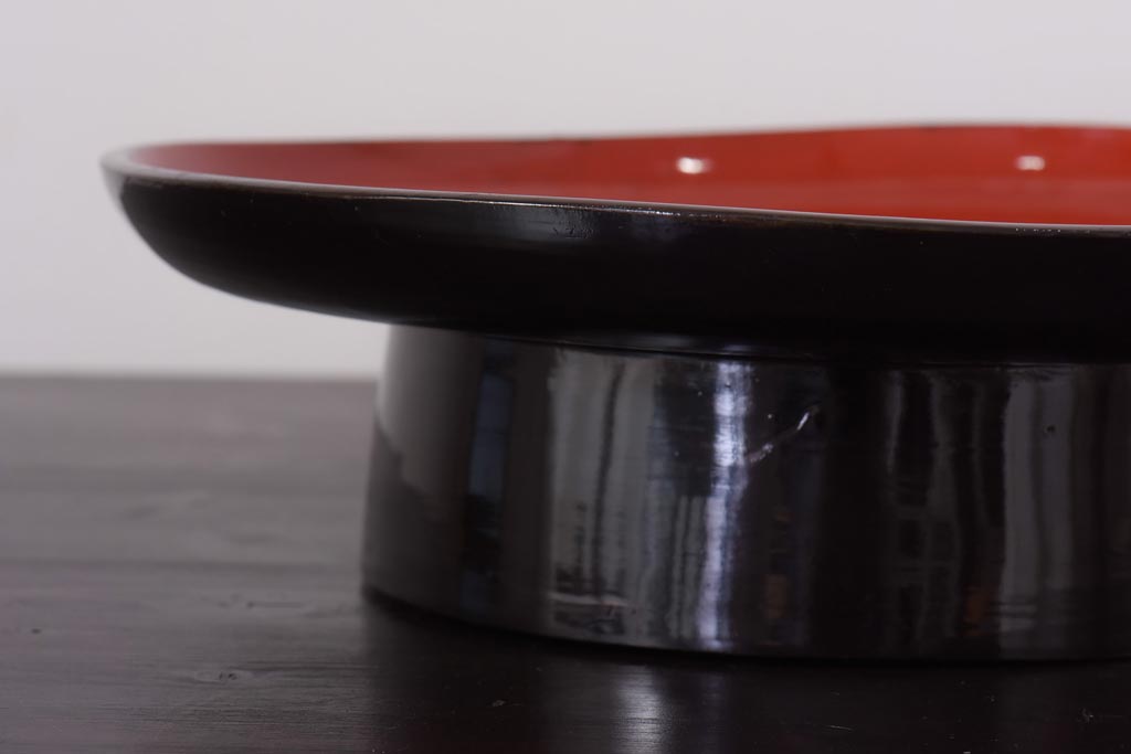 アンティーク雑貨 会津漆器 朱赤の漆塗りが美しい高台付き丸盆(丸膳)(R-036480)