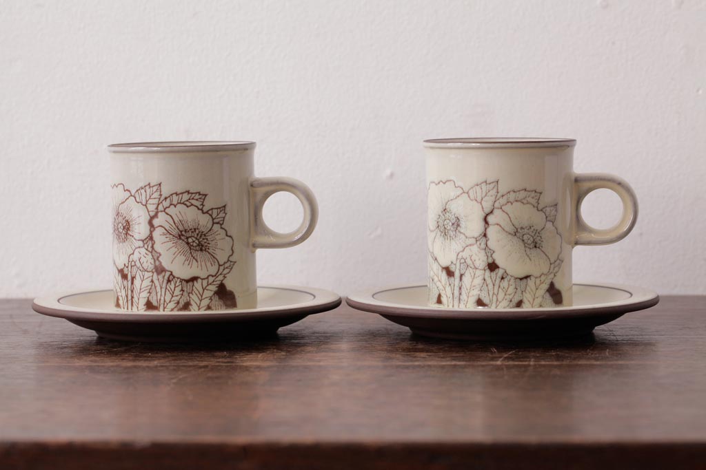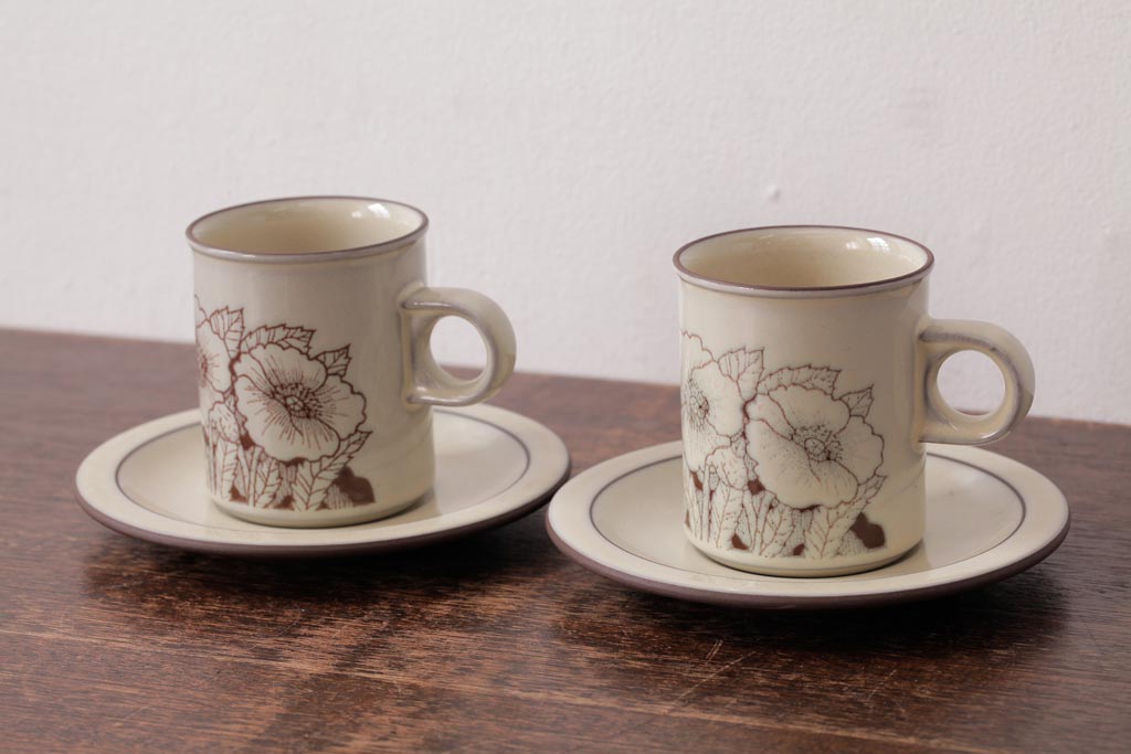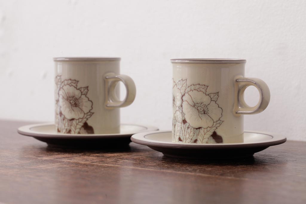 ヴィンテージ雑貨 イギリスビンテージ HORNSEA(ホーンジー) Cornrose(コーンローズ) カップ&ソーサー2客セット(デミタスカップ)(R-036423)