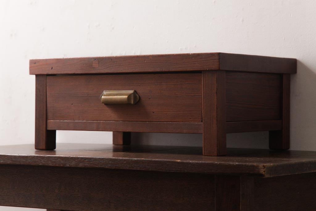 アンティーク雑貨 和製アンティーク 古い松材の風合いが味のある引き出し付き飾り台(花台)