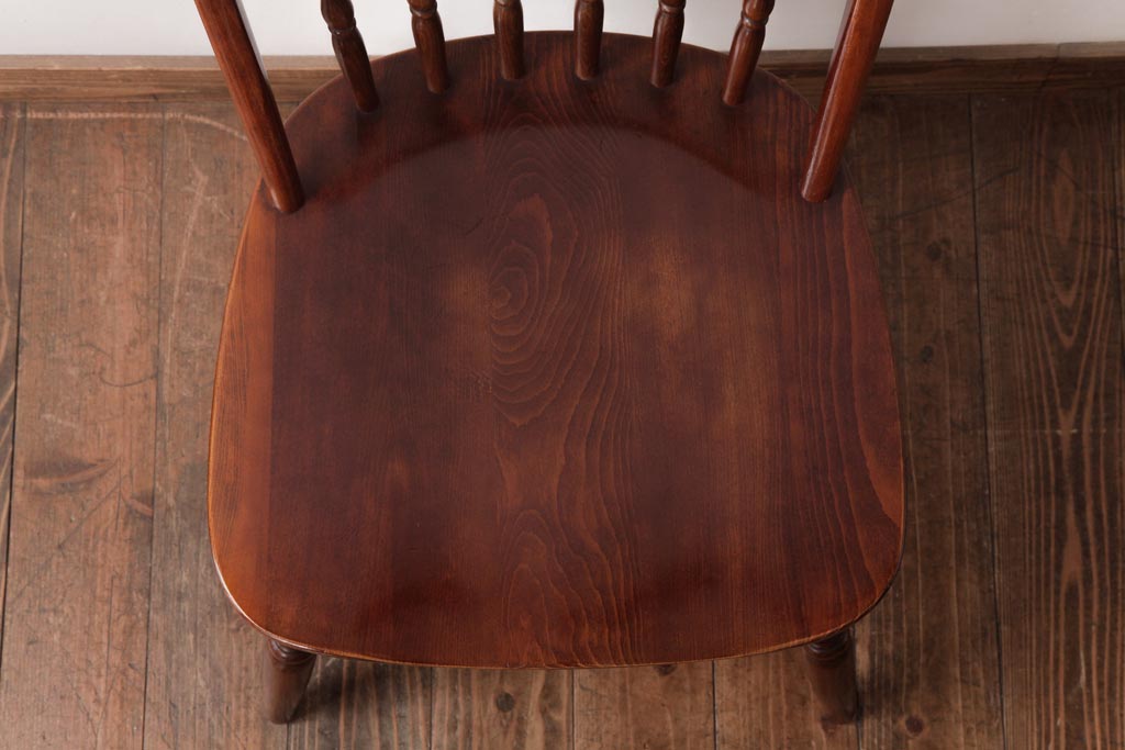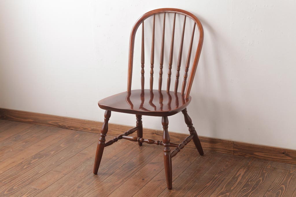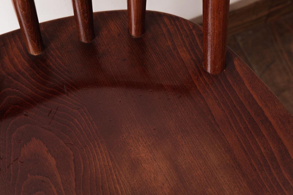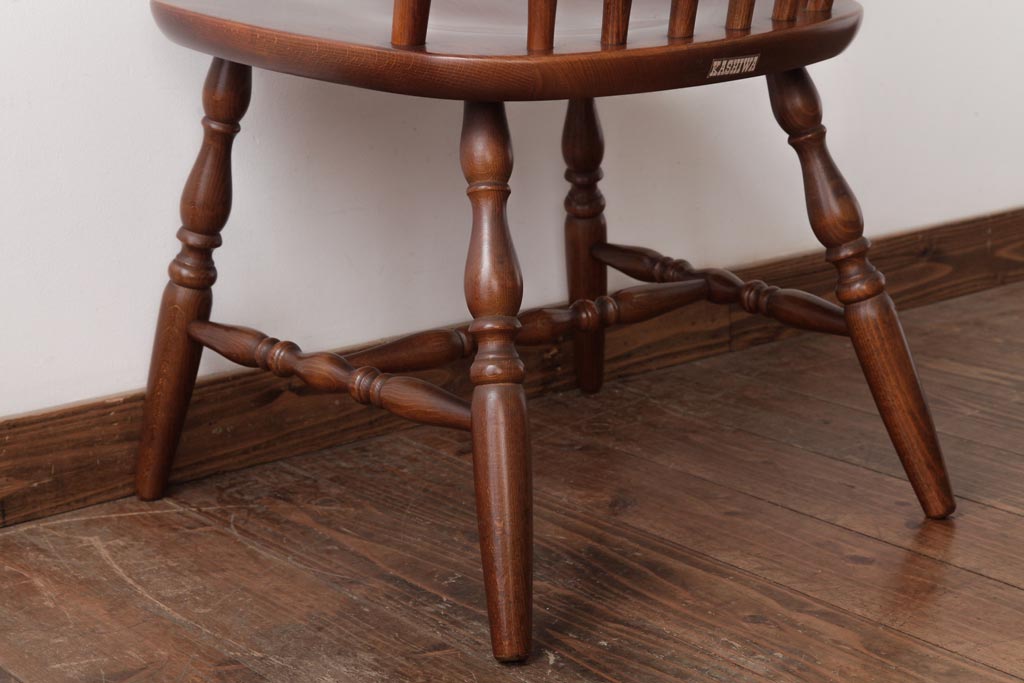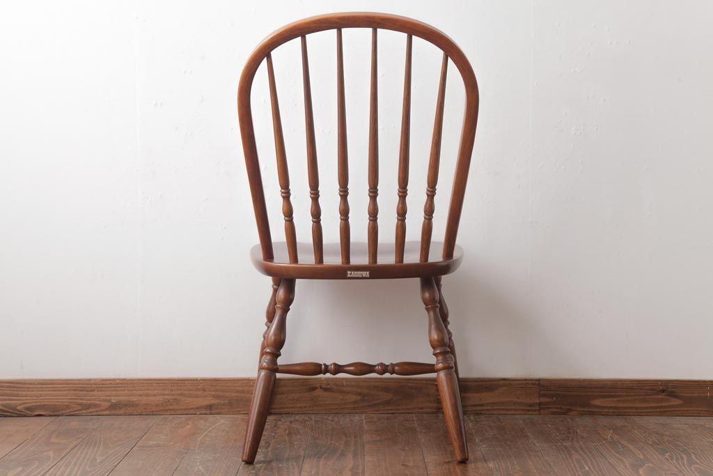 ラフジュ工房> 椅子・ベンチ> ダイニングチェア > ビンテージ家具 柏木工(カシワ、KASHIWA) カバ材 飴色の艶と質感が品のあるチェア(ダイニングチェア、ウィンザーチェア、ウインザーチェア)(R-037320)