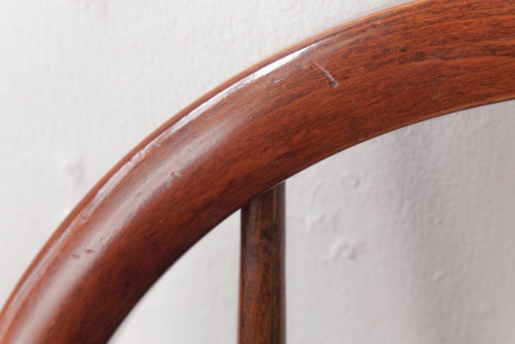 ラフジュ工房> 椅子・ベンチ> ウィンザーチェア > ビンテージ家具 柏木工(カシワ、KASHIWA) カバ材 飴色の艶と質感が品のあるチェア(ダイニングチェア、ウィンザーチェア、ウインザーチェア)(R-037320)