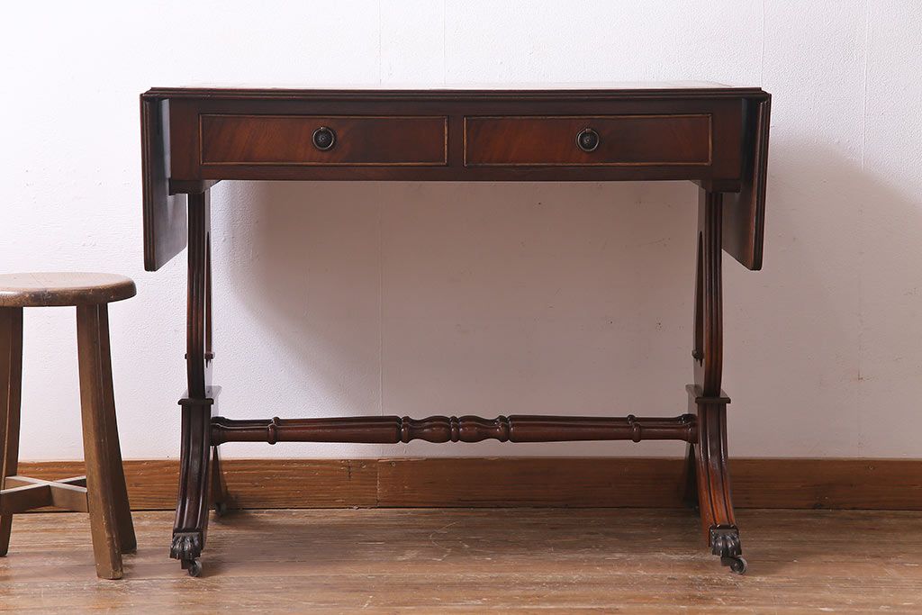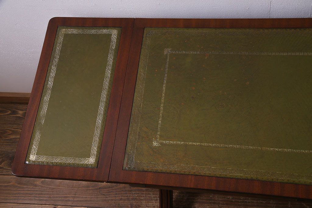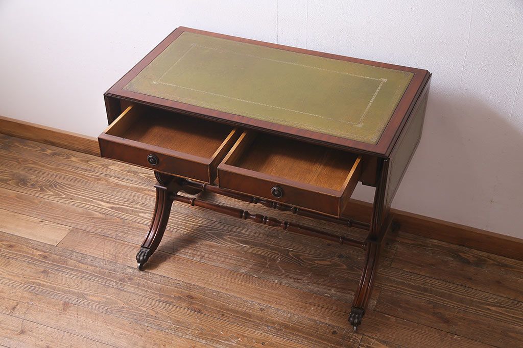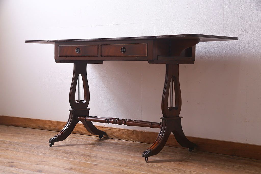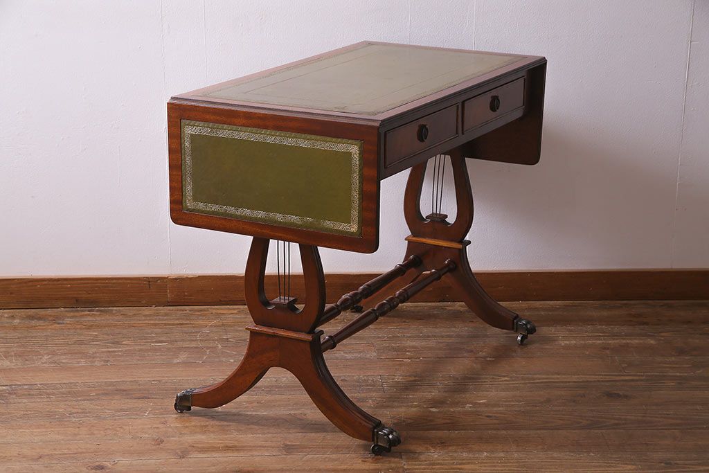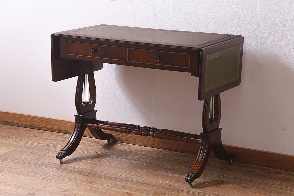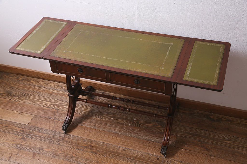 アンティーク家具 イギリスアンティーク マホガニー材 レザートップがお洒落なバタフライコンソールテーブル(サイドテーブル)