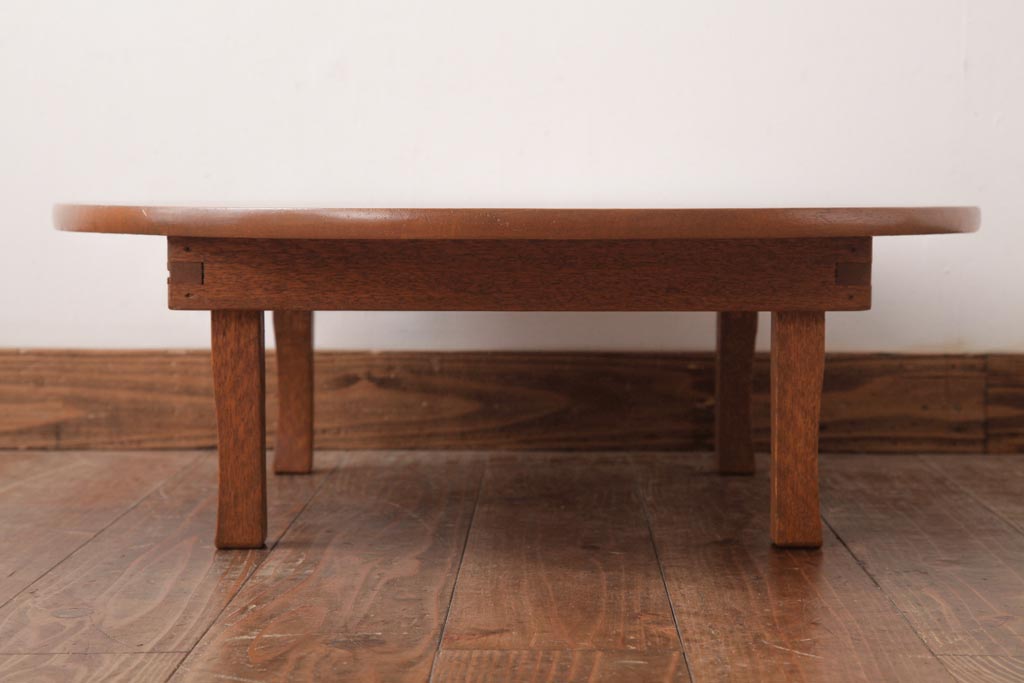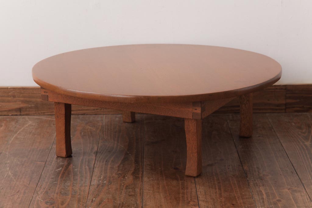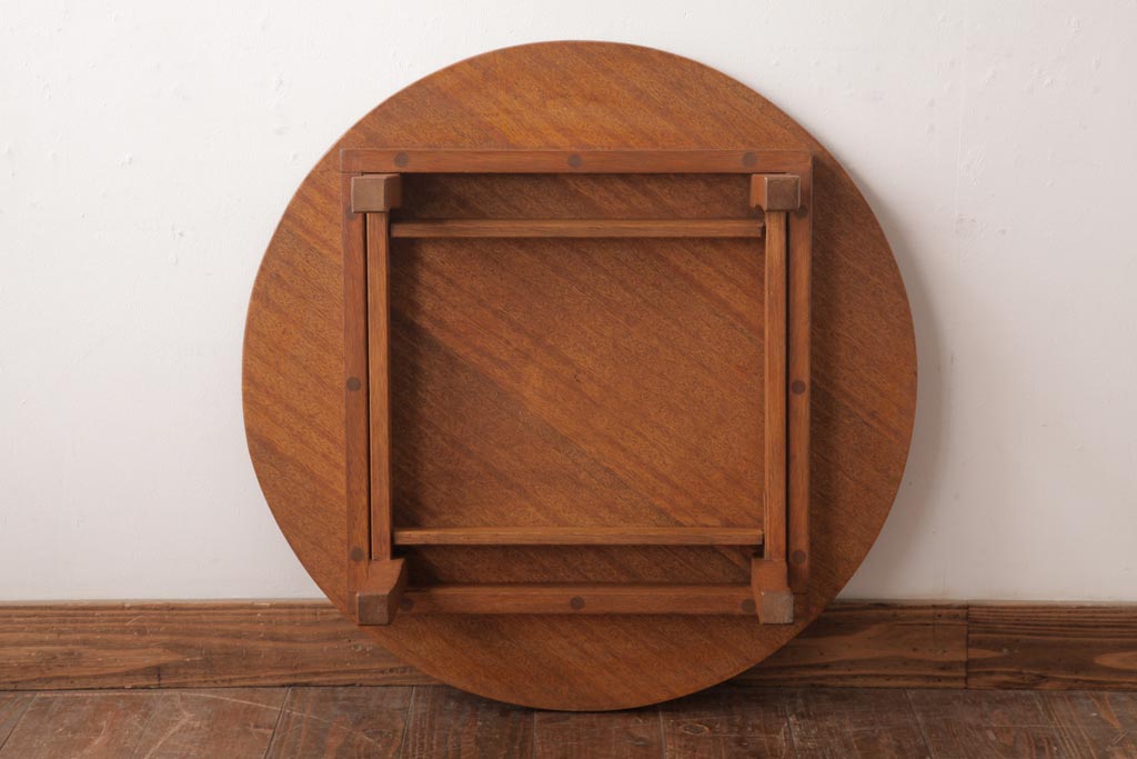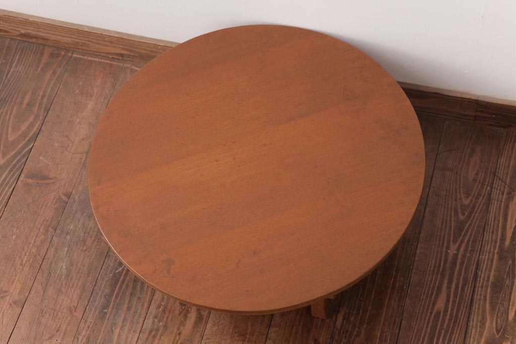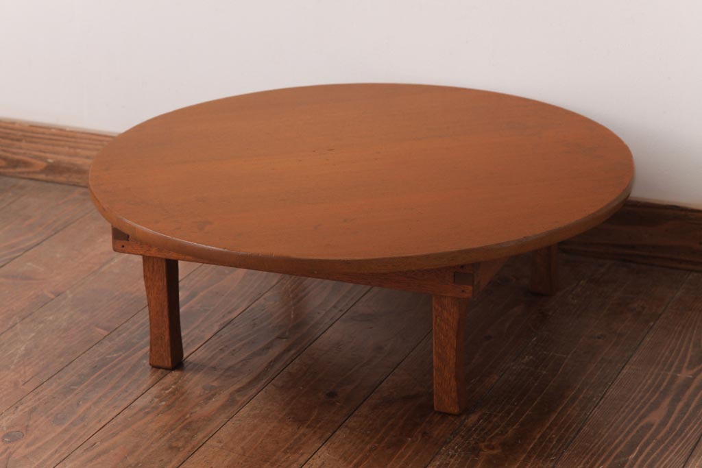 レトロ家具 古民具 素朴な木肌が温かみを感じる丸ちゃぶ台(折り畳み式テーブル、ローテーブル)(R-037313)