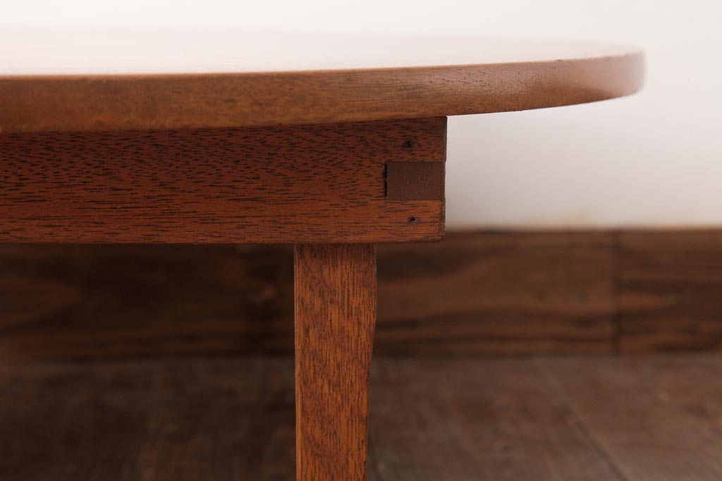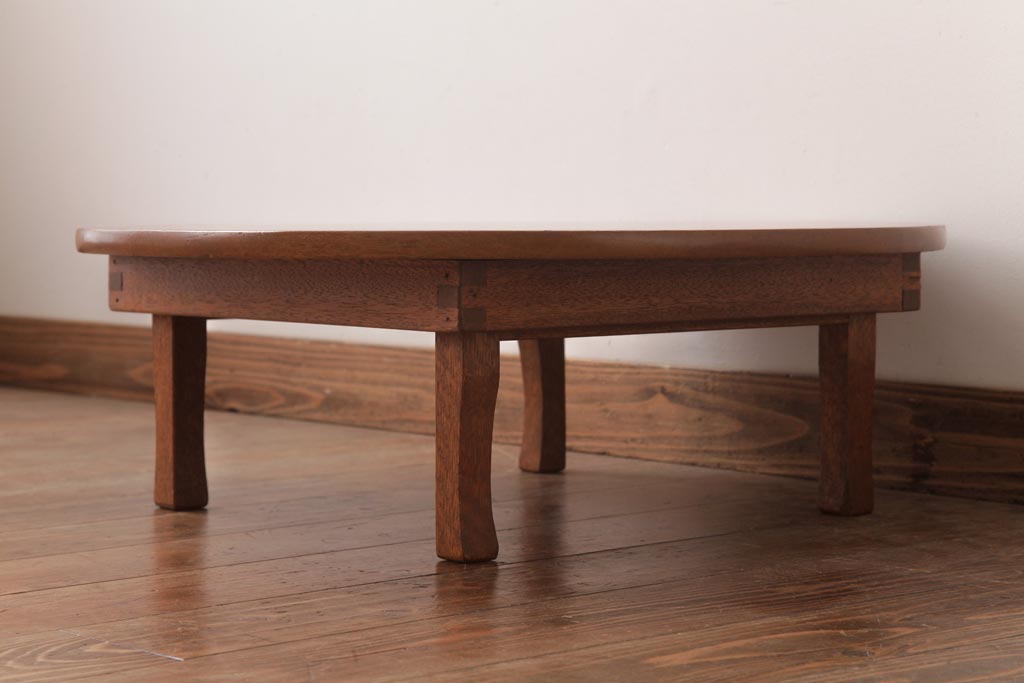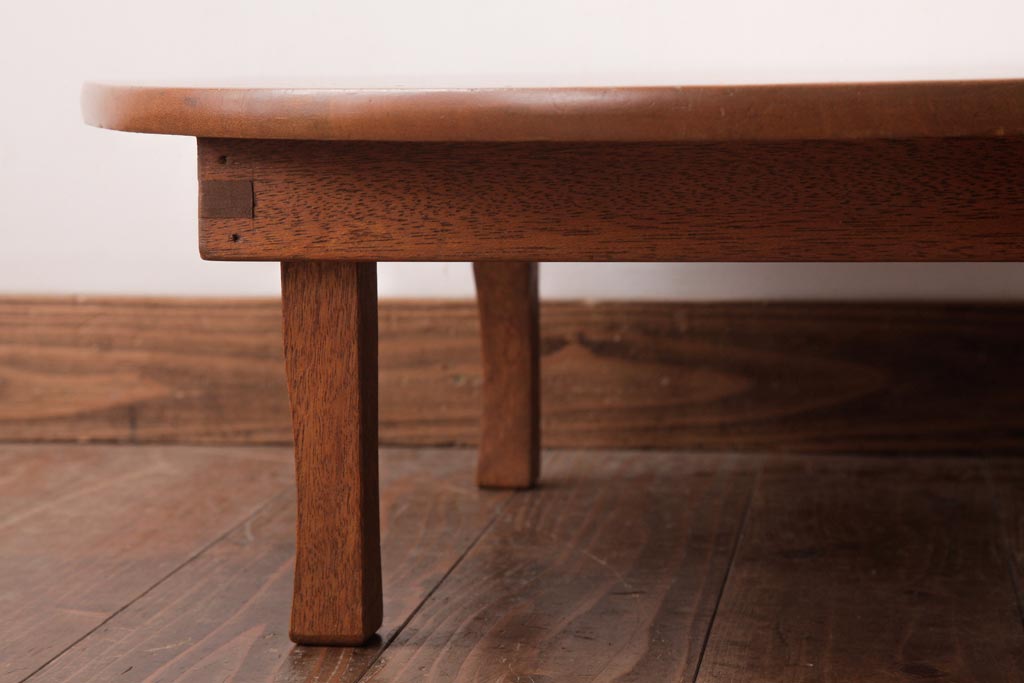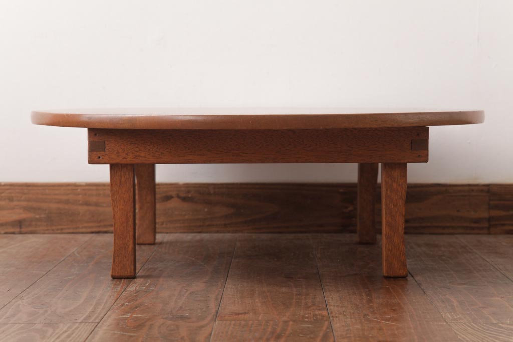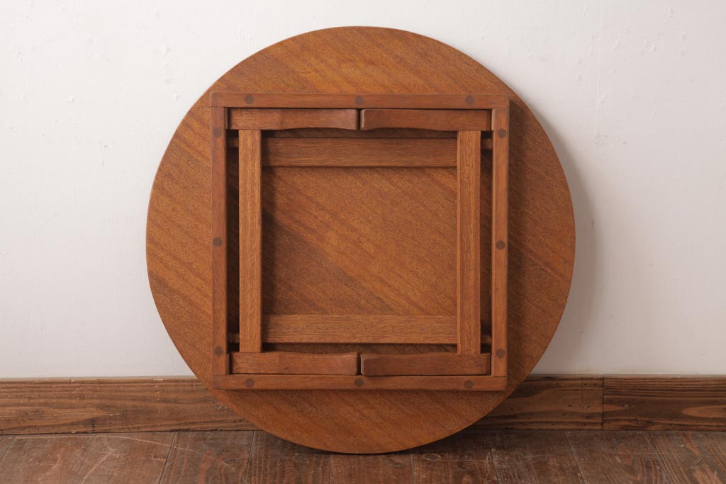 レトロ家具 古民具 素朴な木肌が温かみを感じる丸ちゃぶ台(折り畳み式テーブル、ローテーブル)(R-037313)