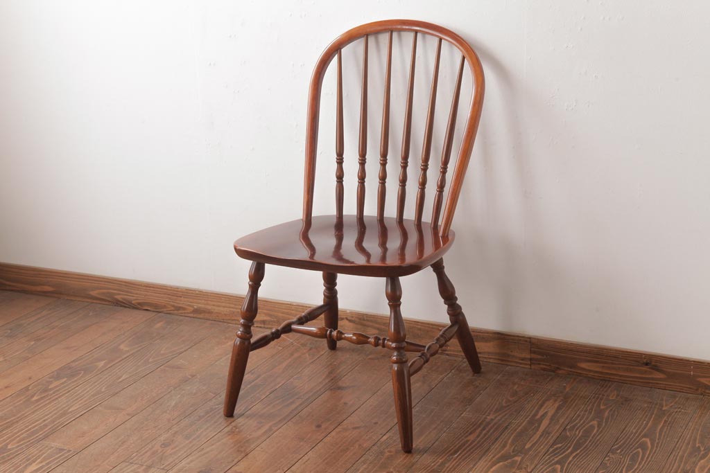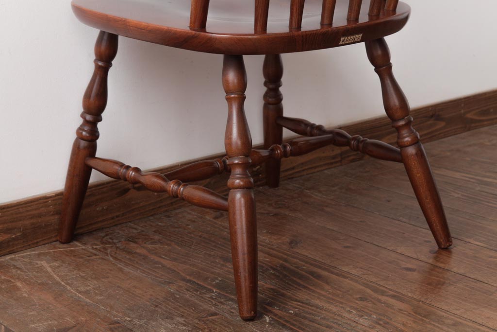 椅子・ベンチ> ウィンザーチェア > ビンテージ家具 柏木工(カシワ、KASHIWA) カバ材 飴色の艶と質感が品のあるチェア(ダイニングチェア、ウィンザーチェア、ヴィンテージ、ウインザーチェア)(R-037319)