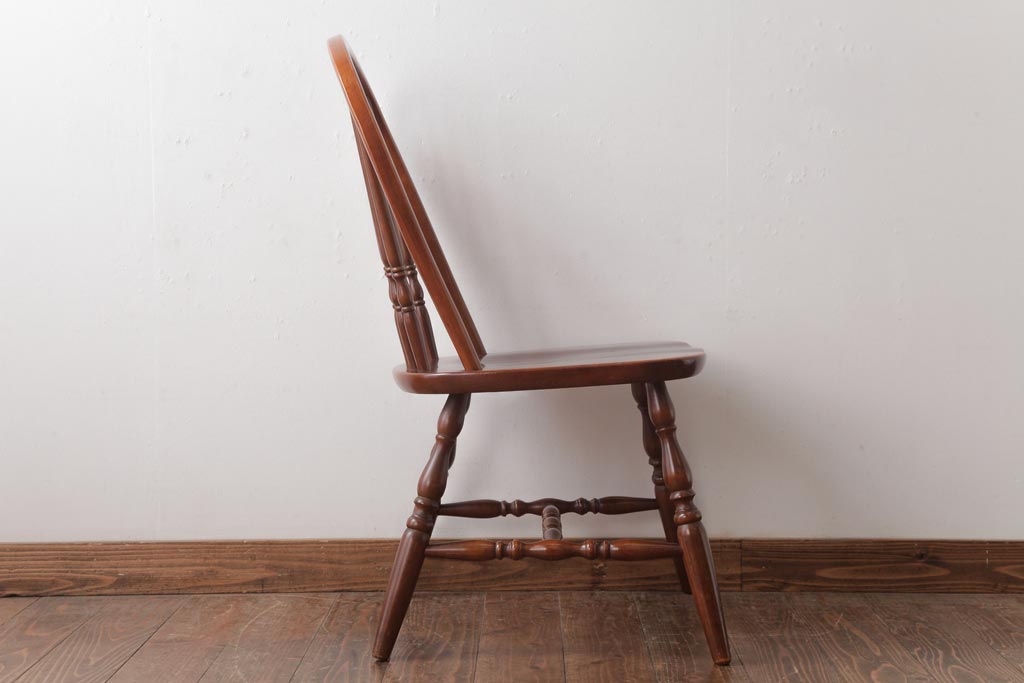 ビンテージ家具 柏木工(カシワ、KASHIWA) カバ材 飴色の艶と質感が品のあるチェア(ダイニングチェア、ウィンザーチェア、ヴィンテージ、ウインザーチェア)(R-037319)
