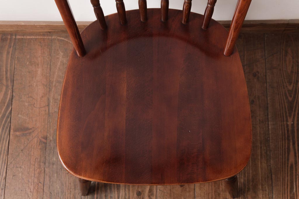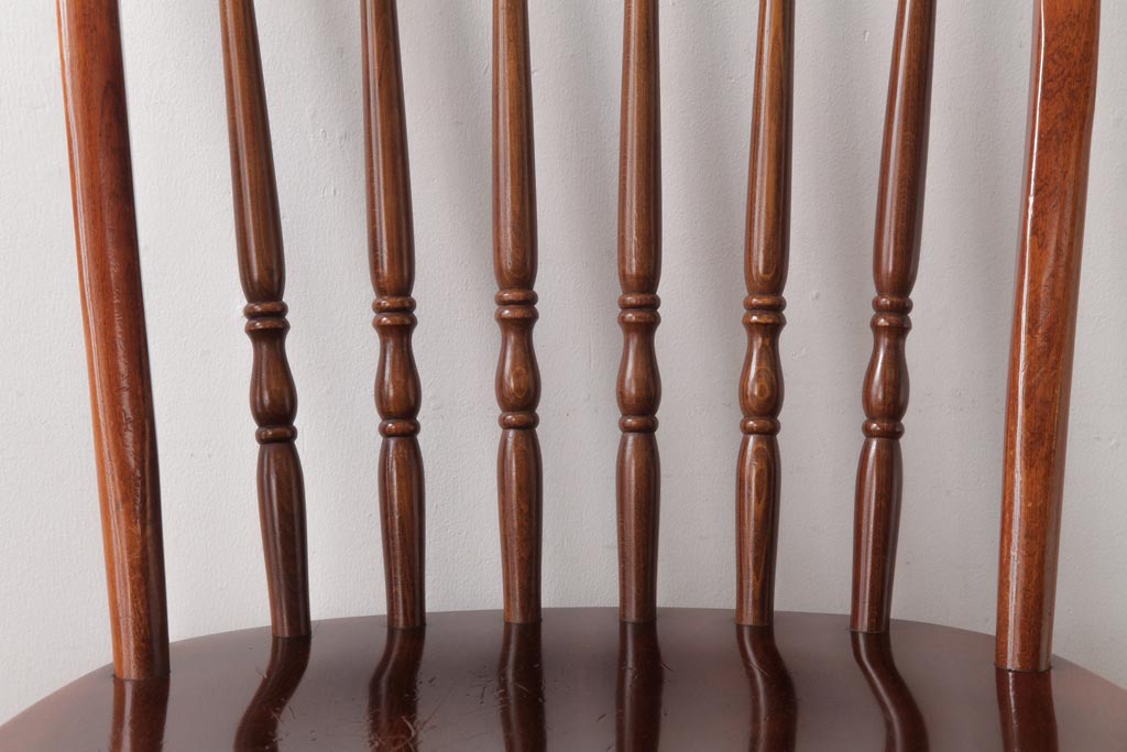 椅子・ベンチ> ダイニングチェア > ビンテージ家具 柏木工(カシワ、KASHIWA) カバ材 飴色の艶と質感が品のあるチェア(ダイニングチェア、ウィンザーチェア、ヴィンテージ、ウインザーチェア)(R-037319)