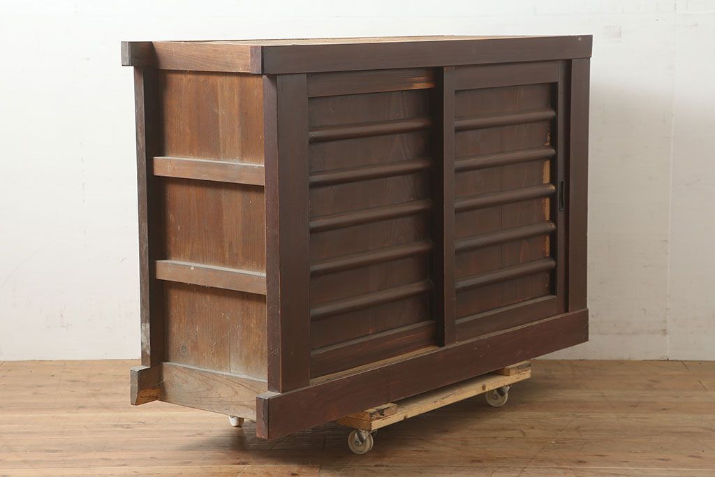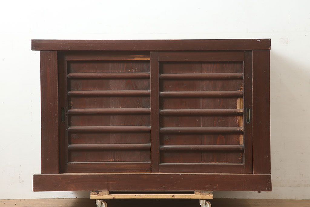 アンティーク家具 四尺 横桟引き戸が魅力の水屋箪笥サイドボード(テレビ台)(R-036588)です。