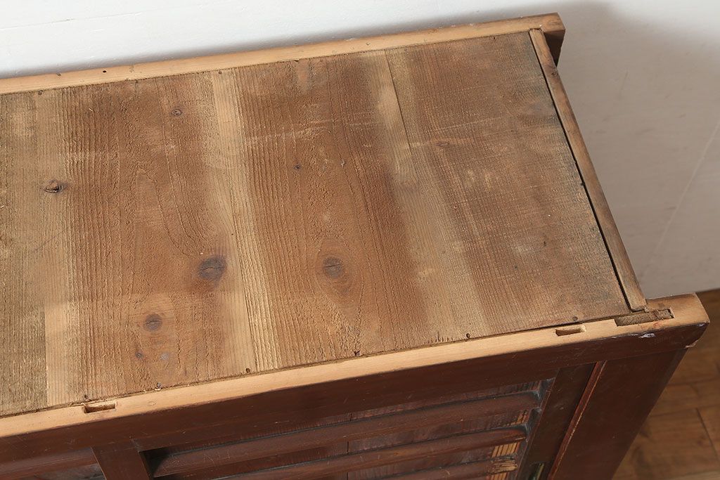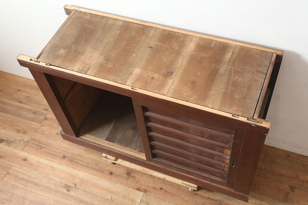 アンティーク家具 四尺 横桟引き戸が魅力の水屋箪笥サイドボード(テレビ台)(R-036588)