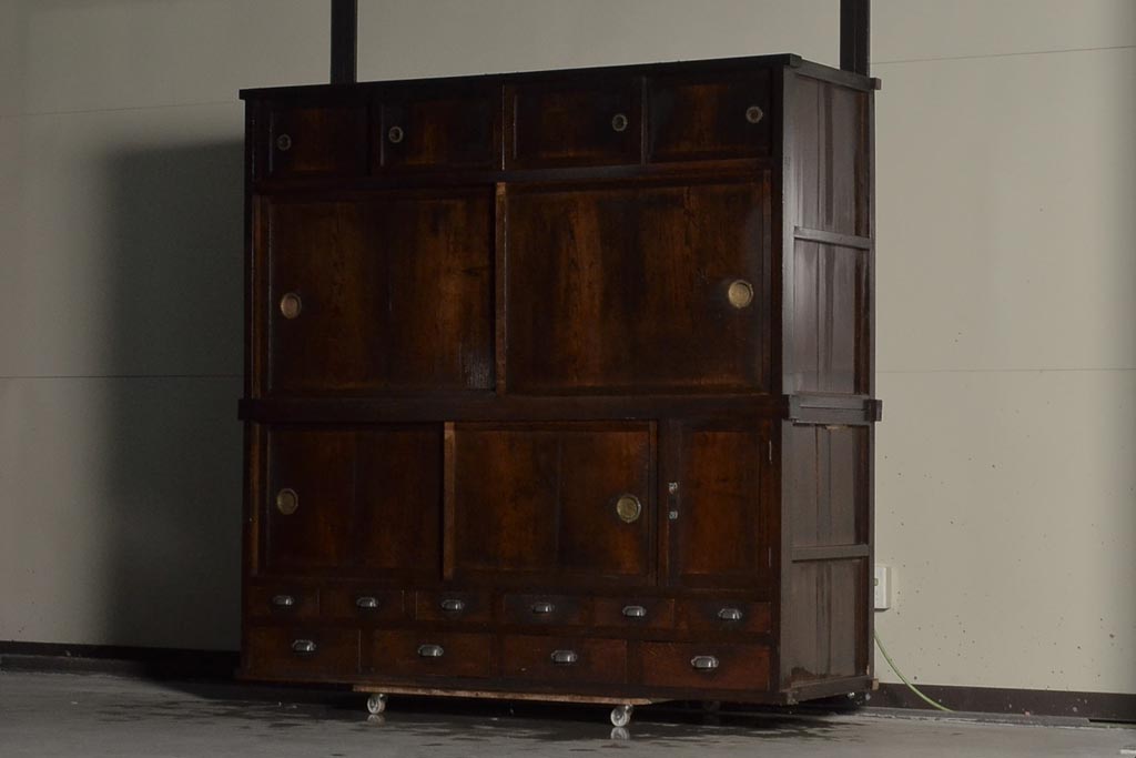 和製アンティーク キャビネット(重ね箪笥、収納棚、戸棚、水屋箪笥、茶箪笥、食器棚)(R-036589)