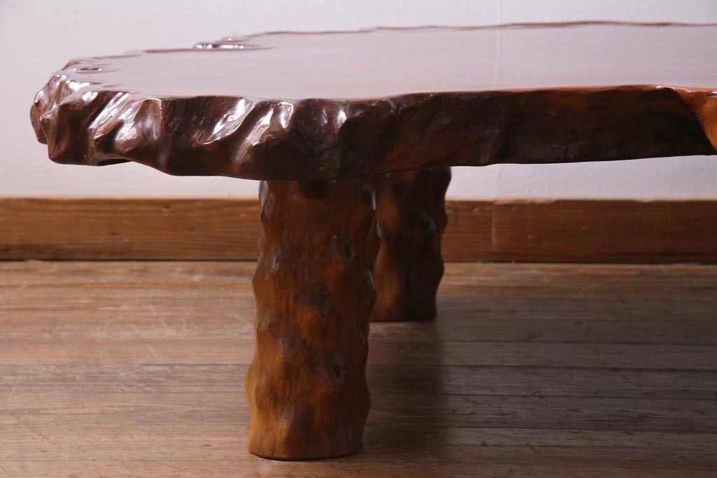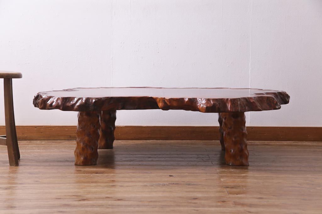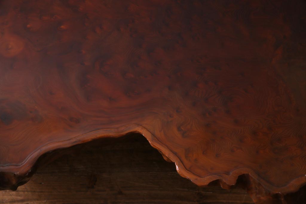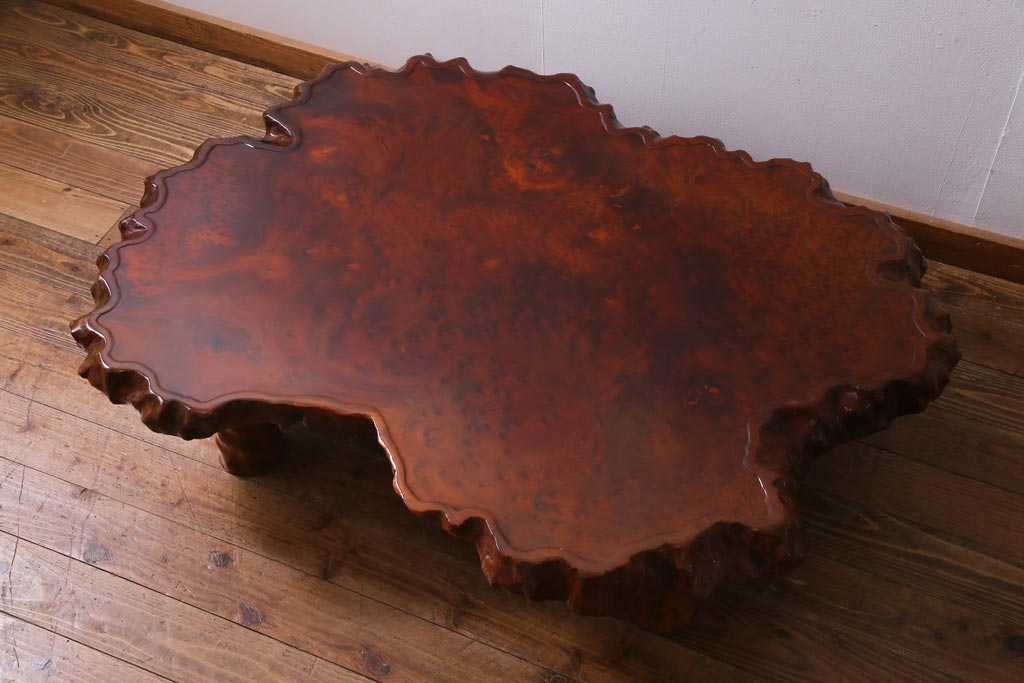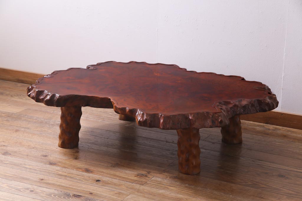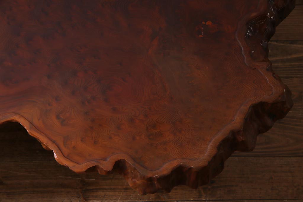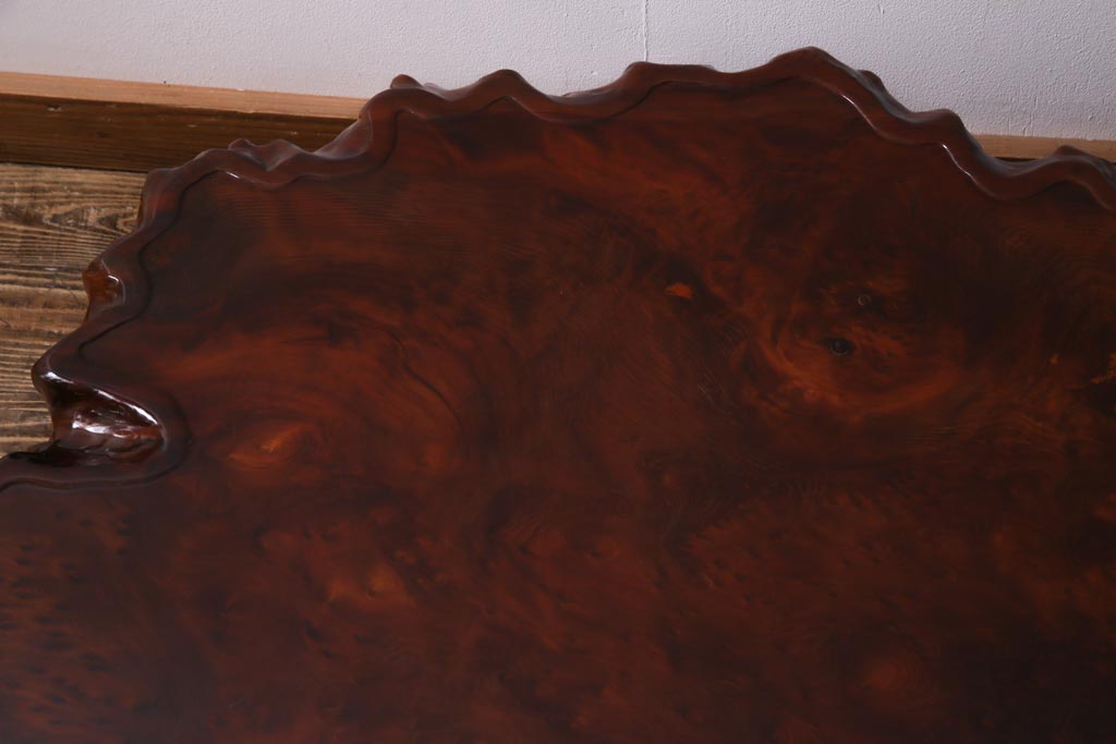 ヴィンテージ家具 葡萄杢・鳥眼杢 天板クスノキ(楠)材一枚板の座卓(ローテーブル、ビンテージ)(R-037351)