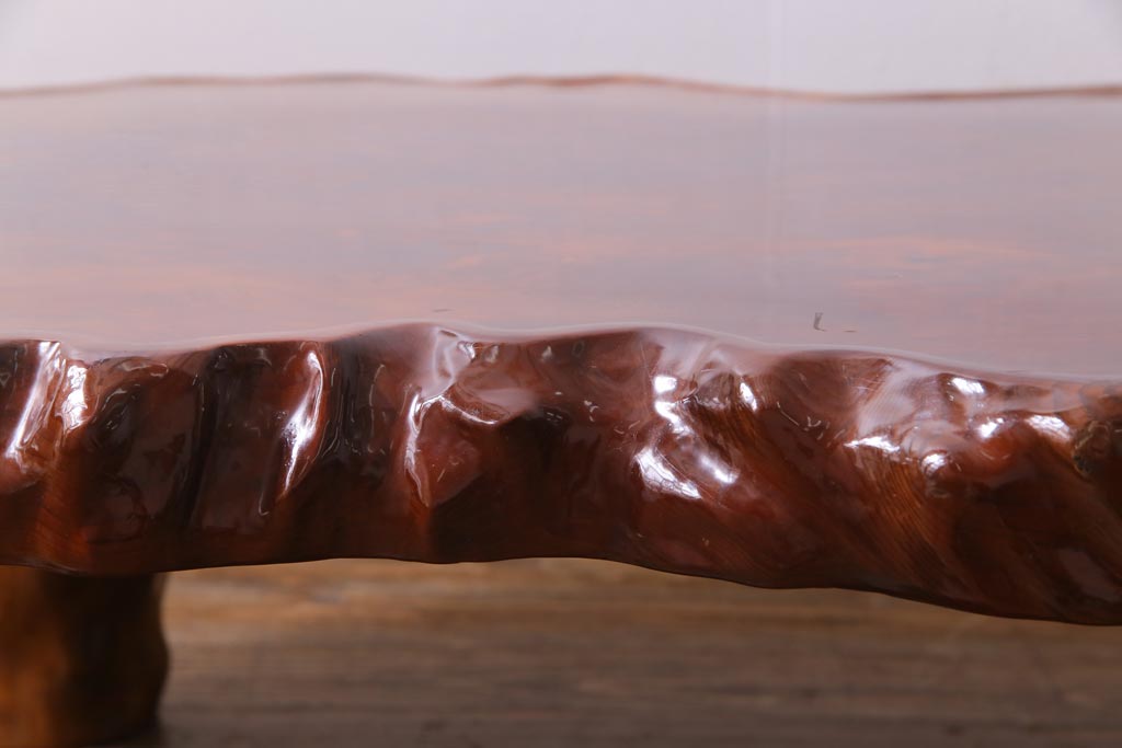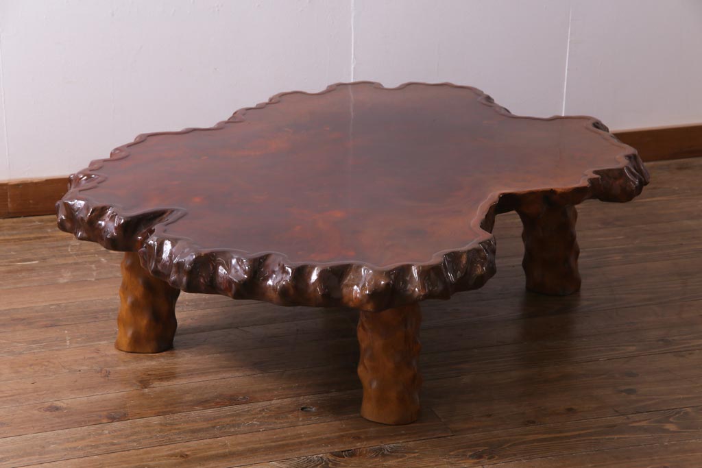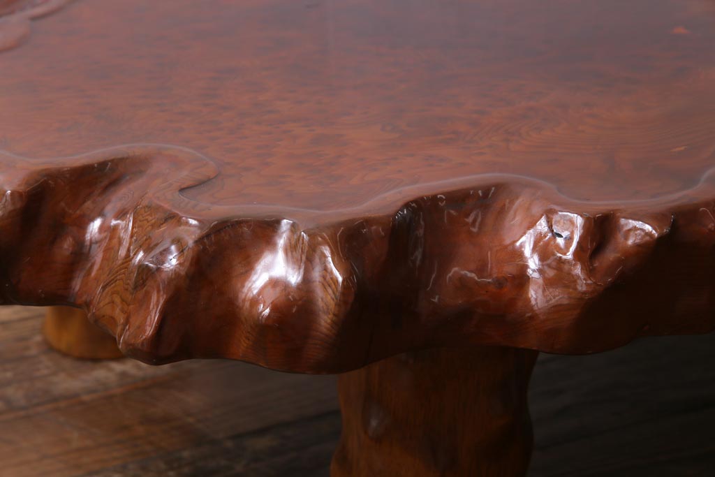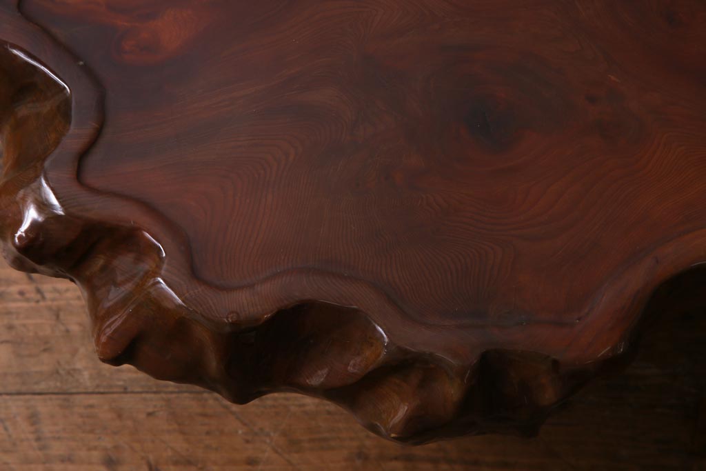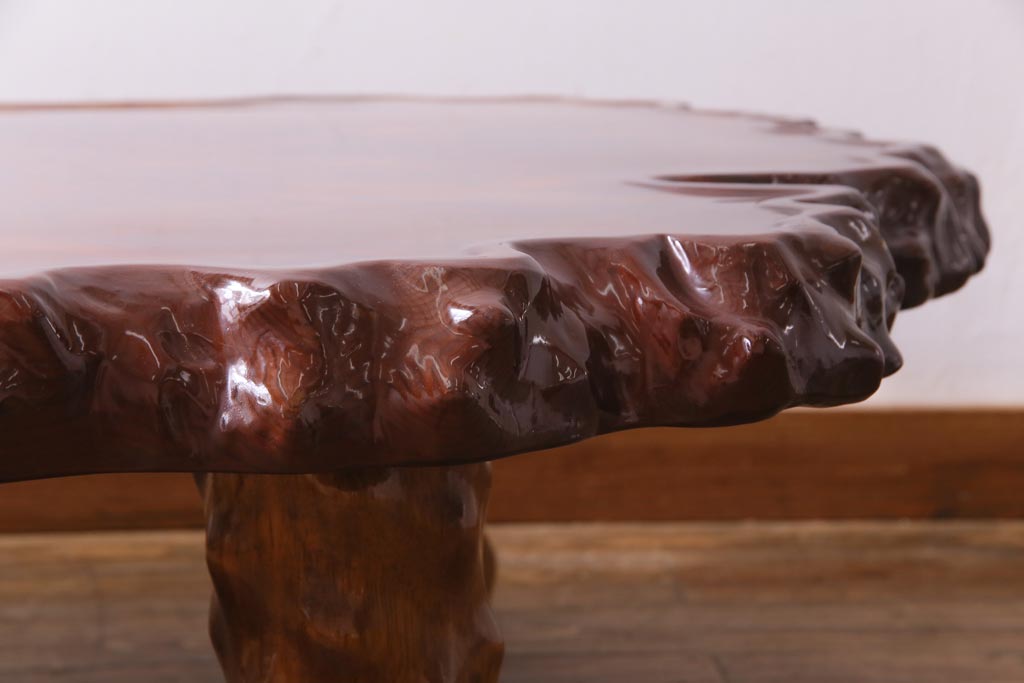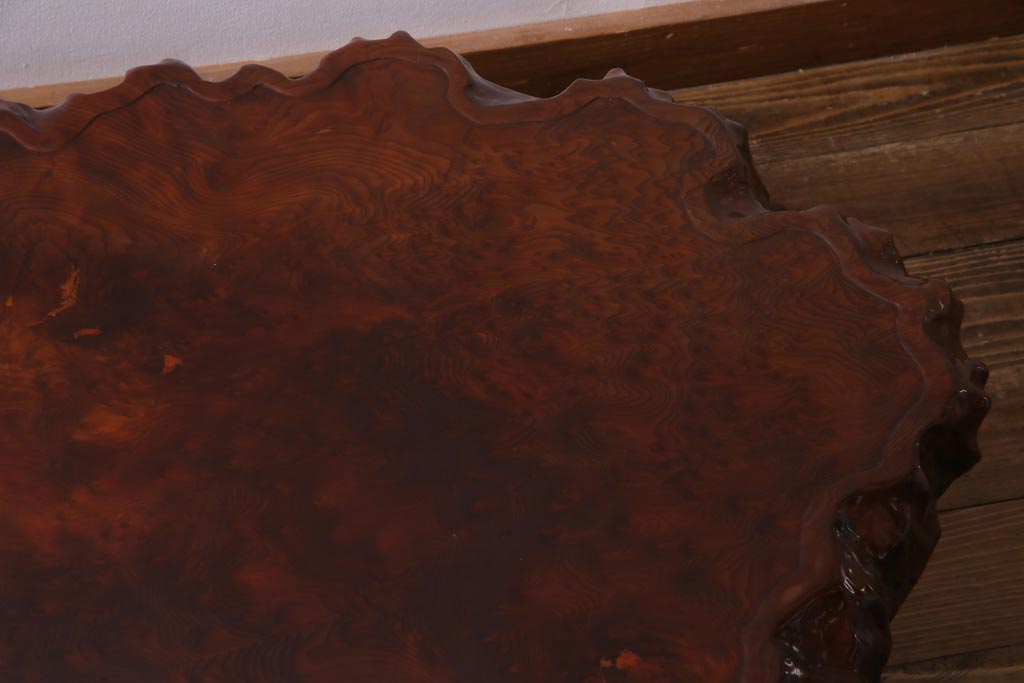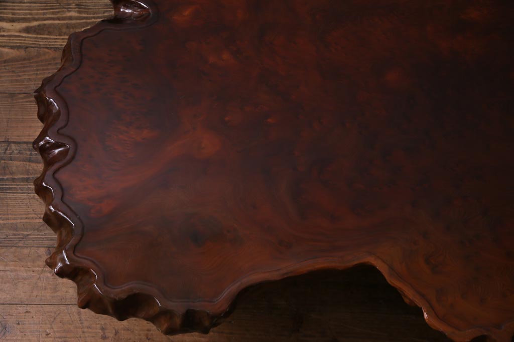 ヴィンテージ家具 葡萄杢・鳥眼杢 天板クスノキ(楠)材一枚板の座卓(ローテーブル、ビンテージ)(R-037351)
