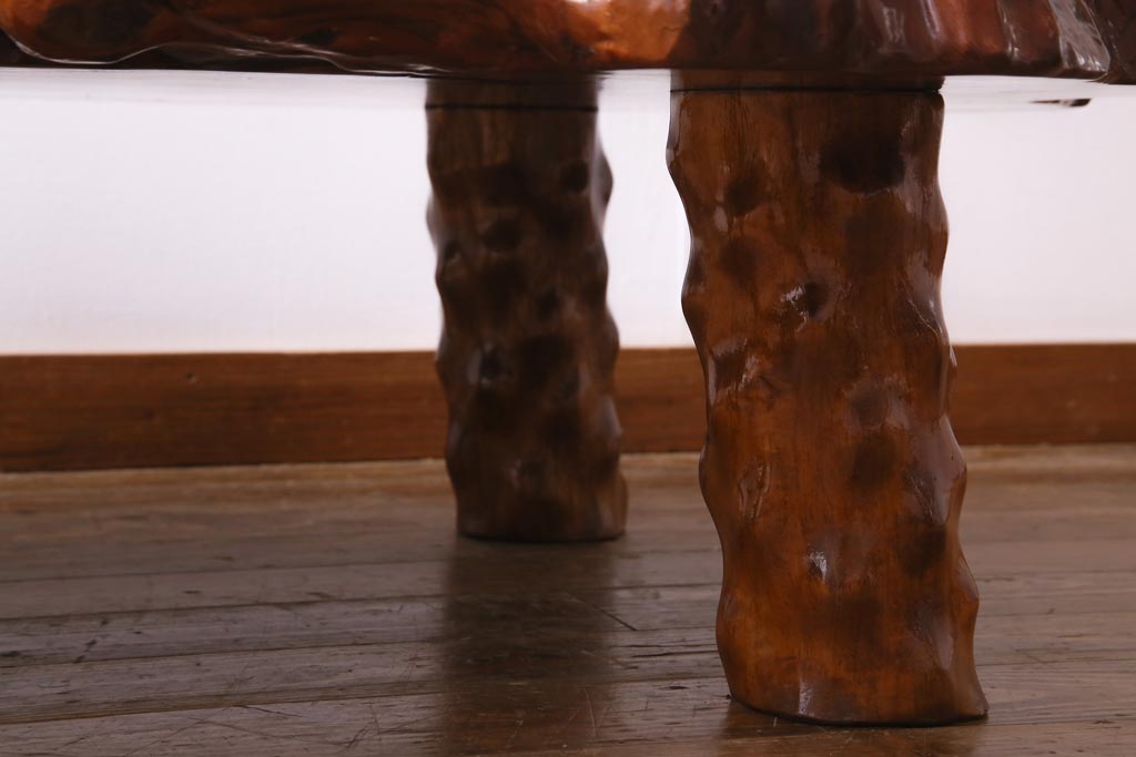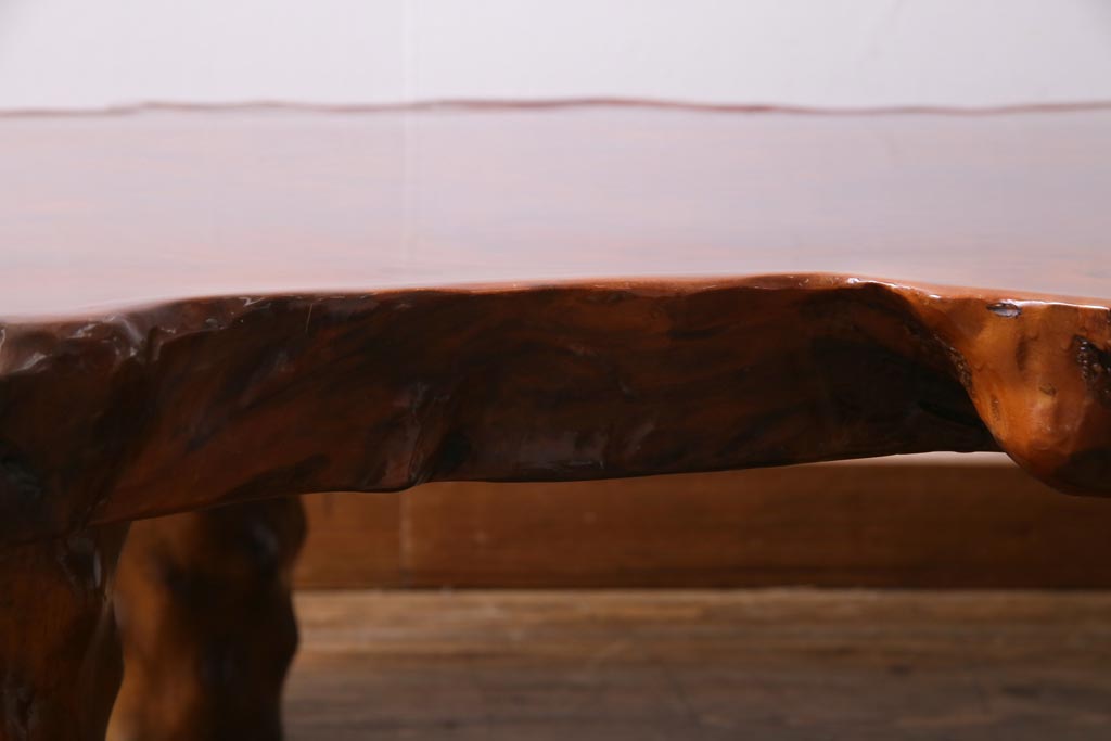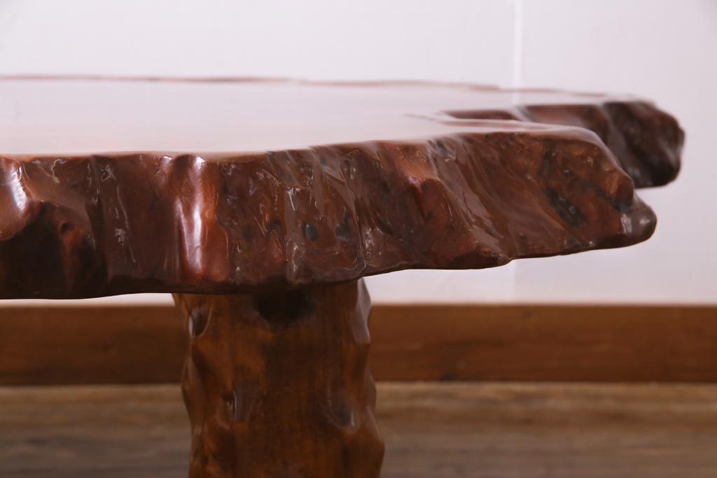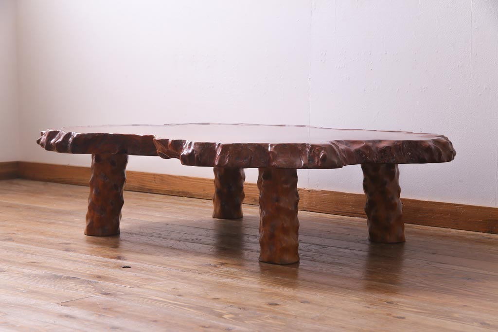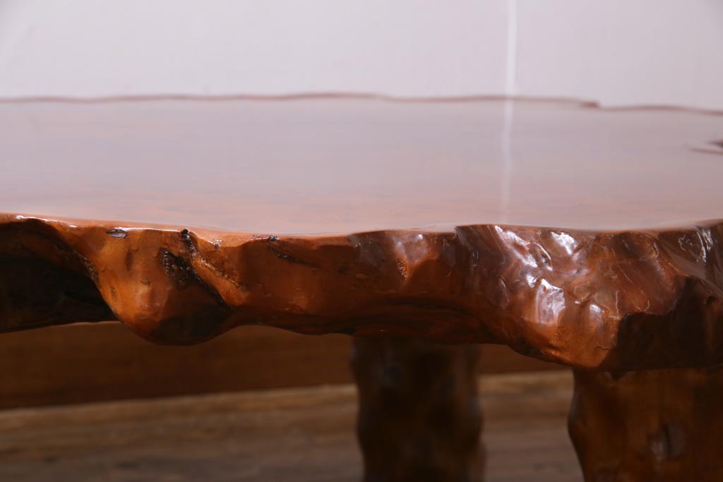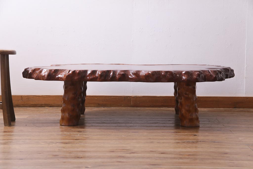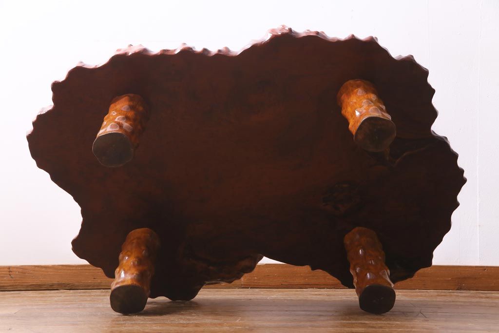 ヴィンテージ家具 葡萄杢・鳥眼杢 天板クスノキ(楠)材一枚板の座卓(ローテーブル、ビンテージ)(R-037351)