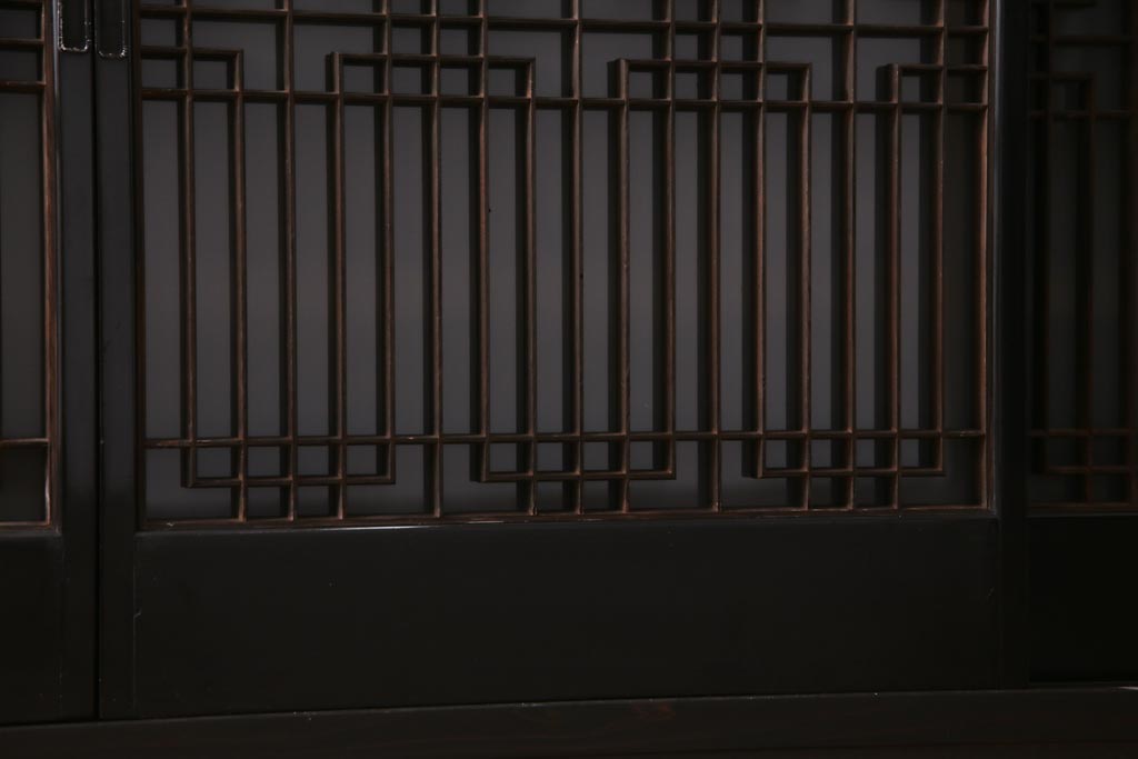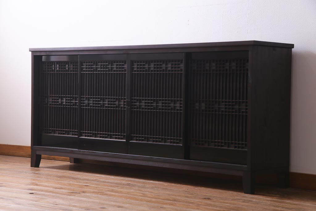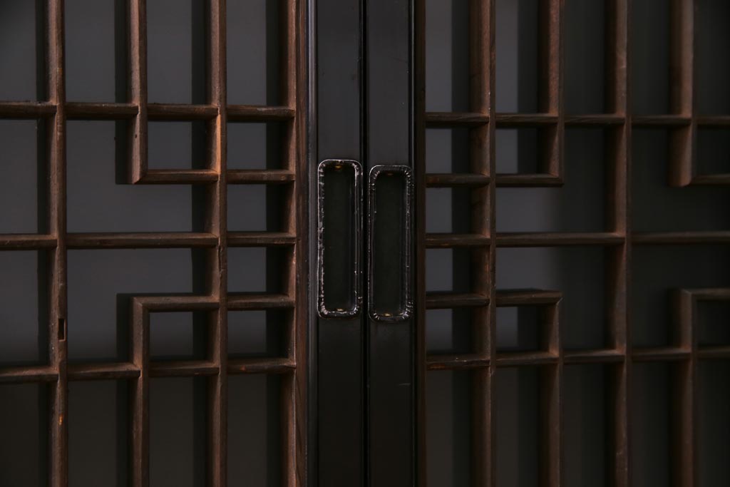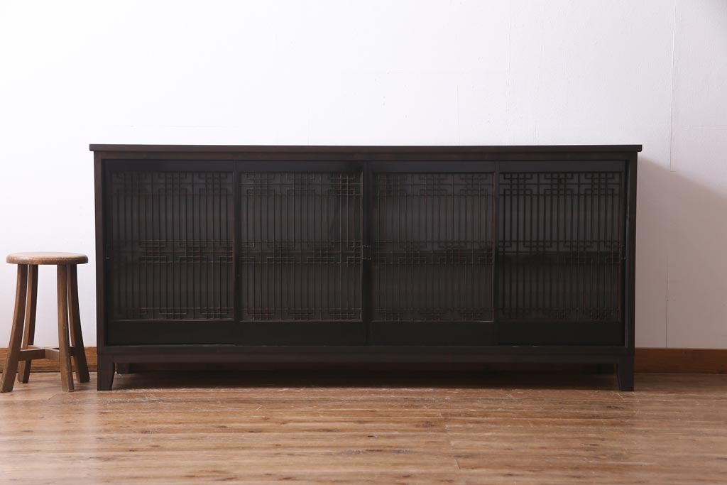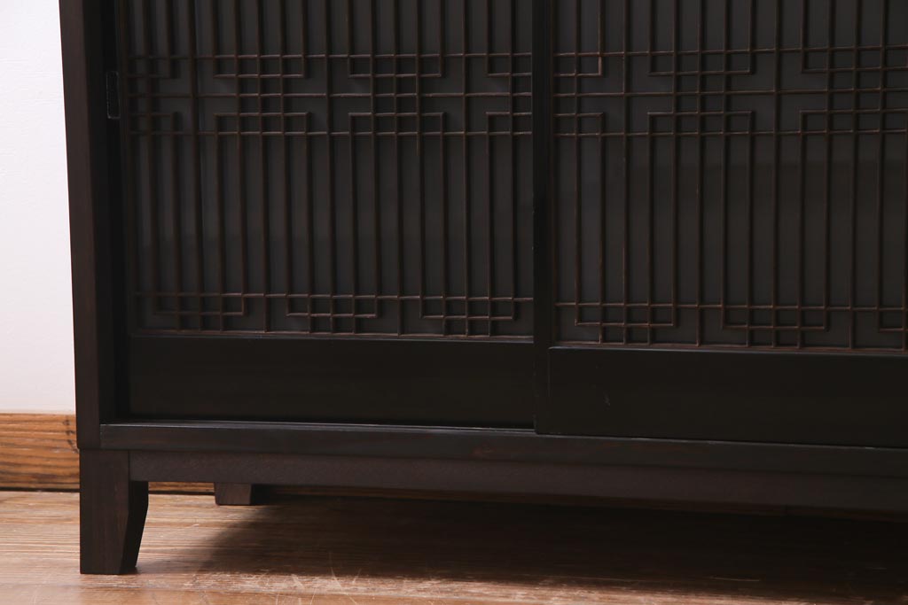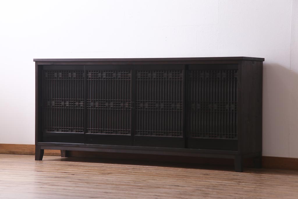ラフジュ工房オリジナル アンティーク建具リメイク 和モダンな脚付サイドボード(書院戸、組子、キャビネット)(R-037329)