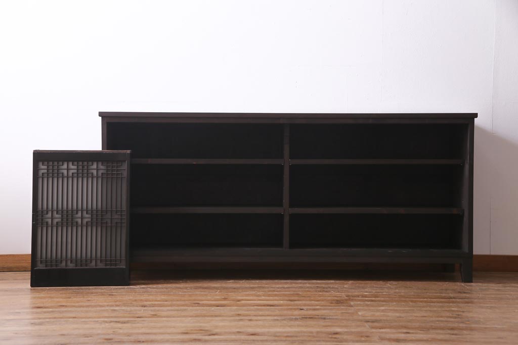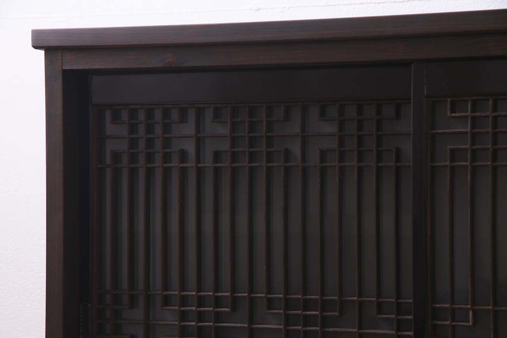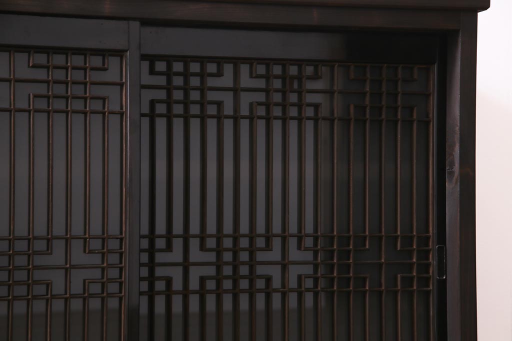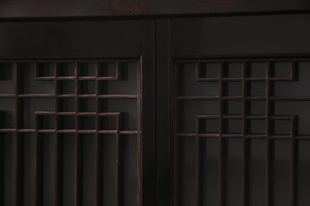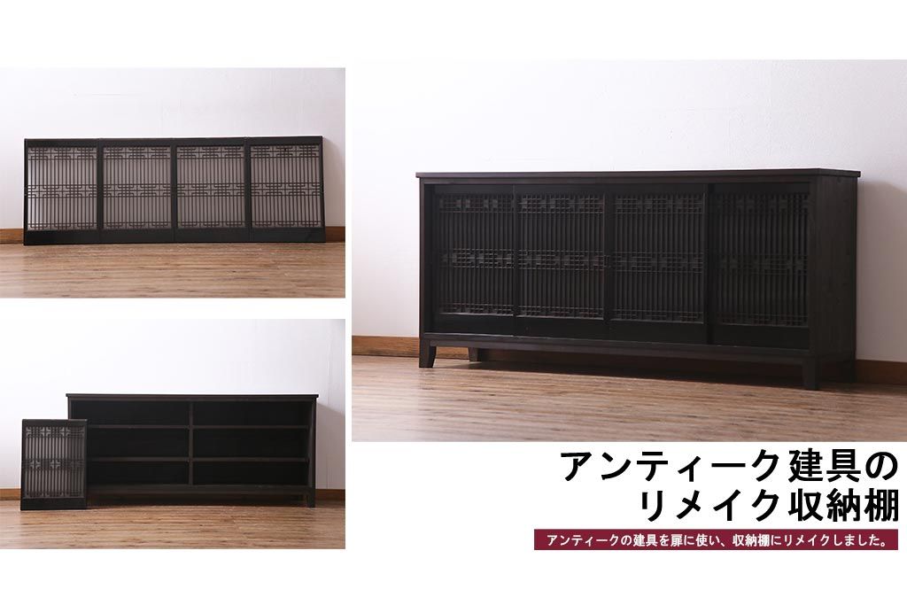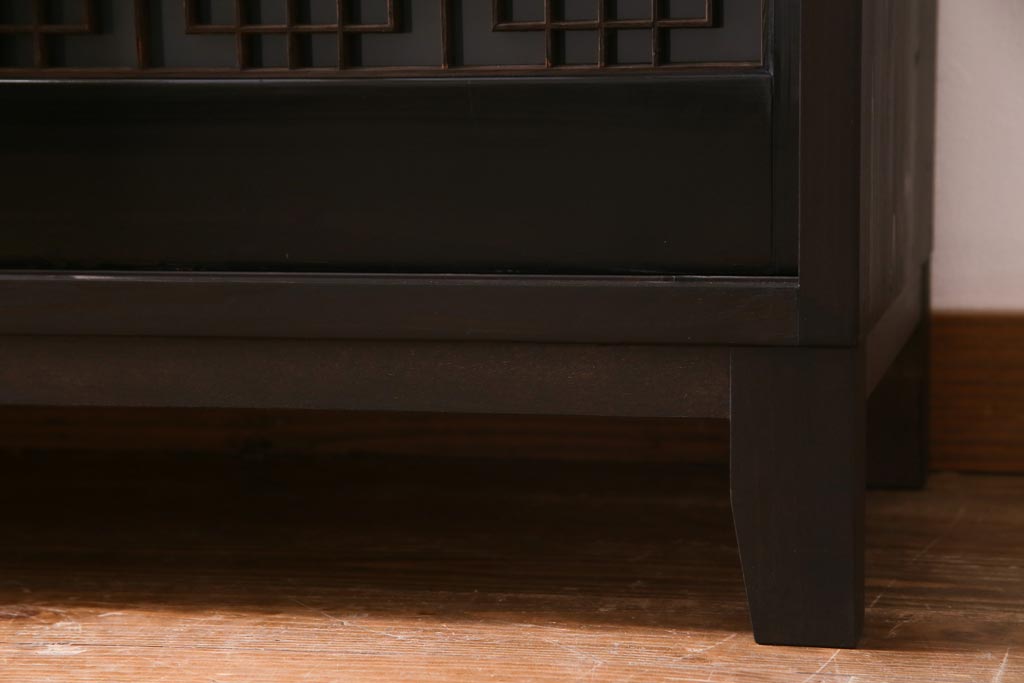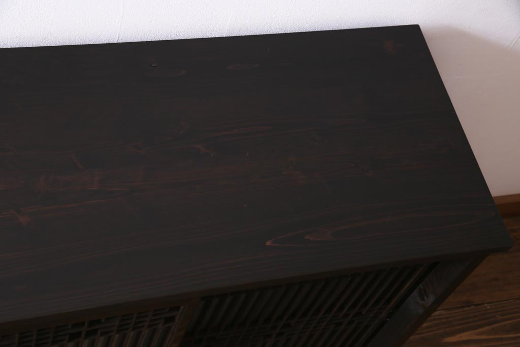 ラフジュ工房オリジナル アンティーク建具リメイク 和モダンな脚付サイドボード(書院戸、組子、キャビネット)(R-037329)