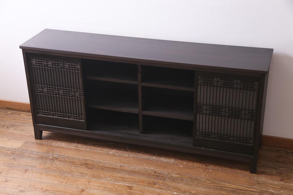 ラフジュ工房オリジナル アンティーク建具リメイク 和モダンな脚付サイドボード(書院戸、組子、キャビネット)(R-037329)です。
