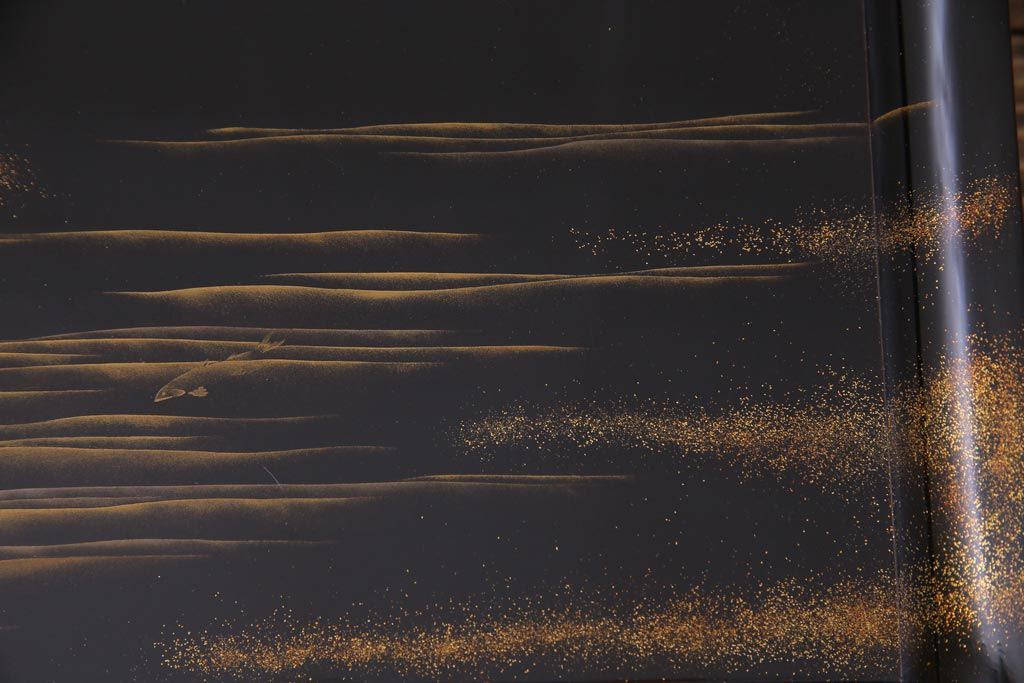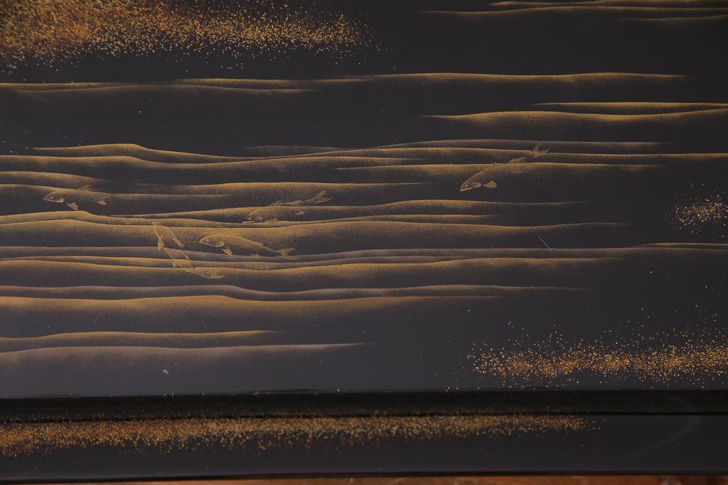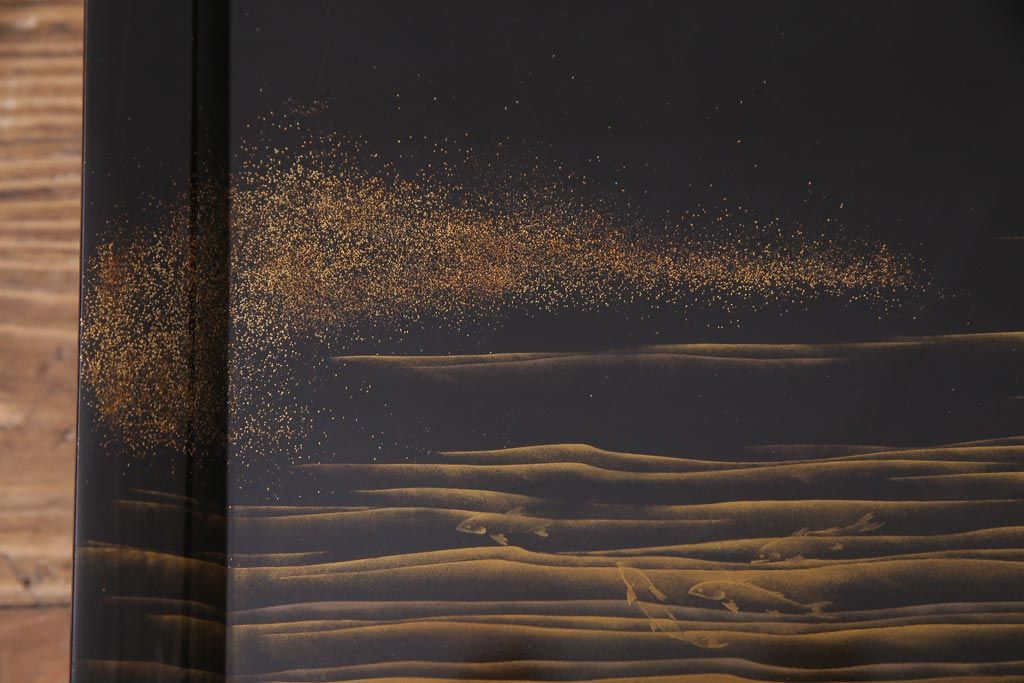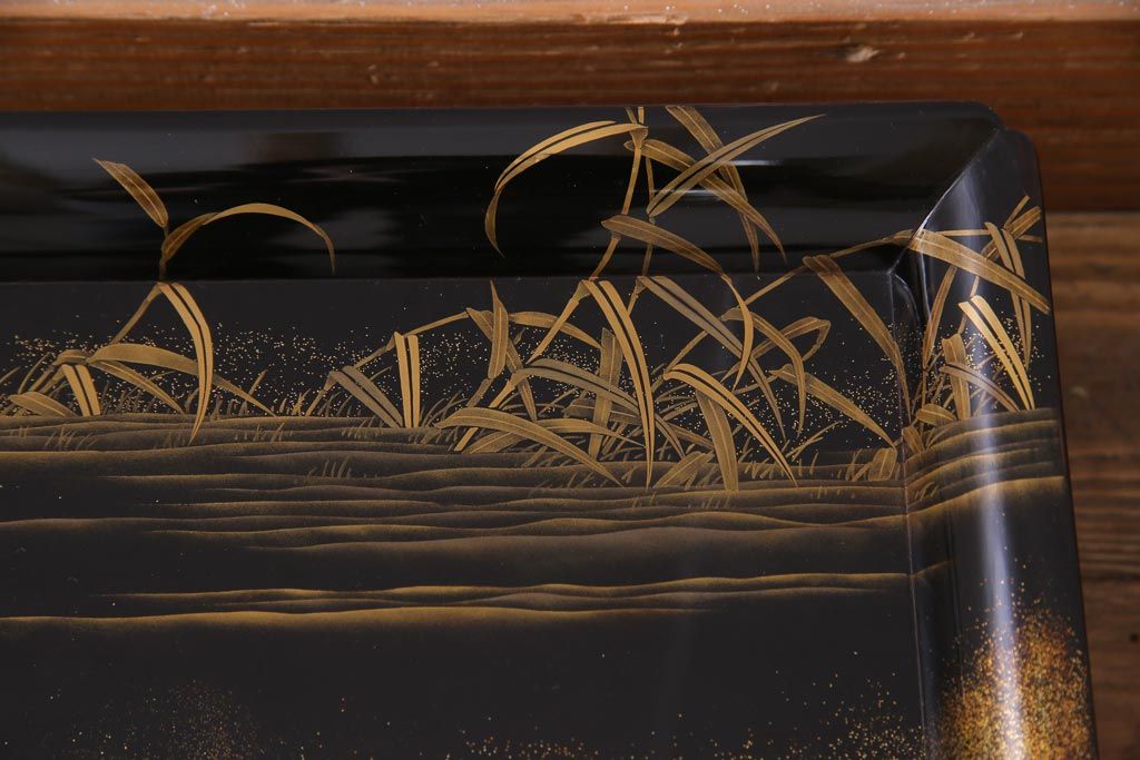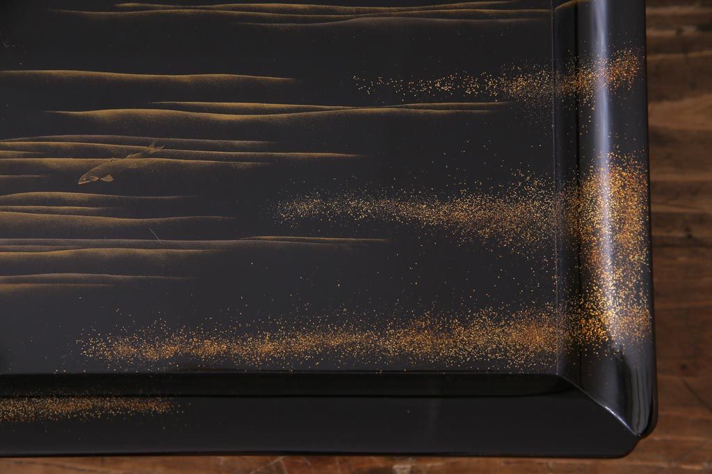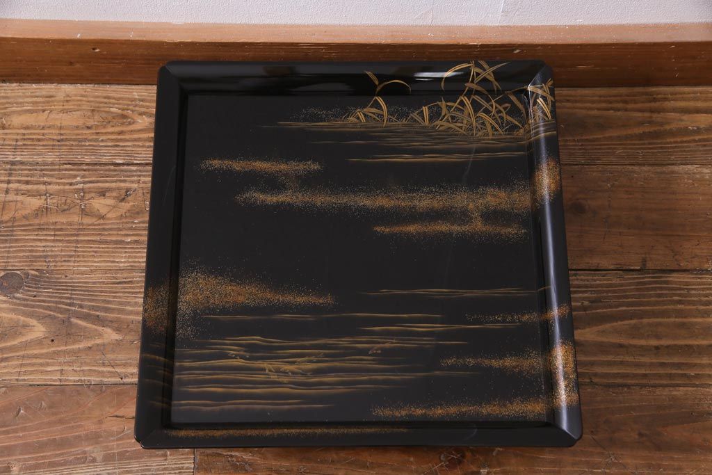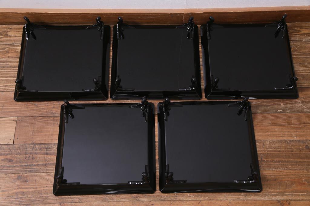 アンティーク雑貨 輪島塗 金蒔絵 鯉の図 木製お膳5客セット(漆器、脚付膳、和食器)(R-036277)