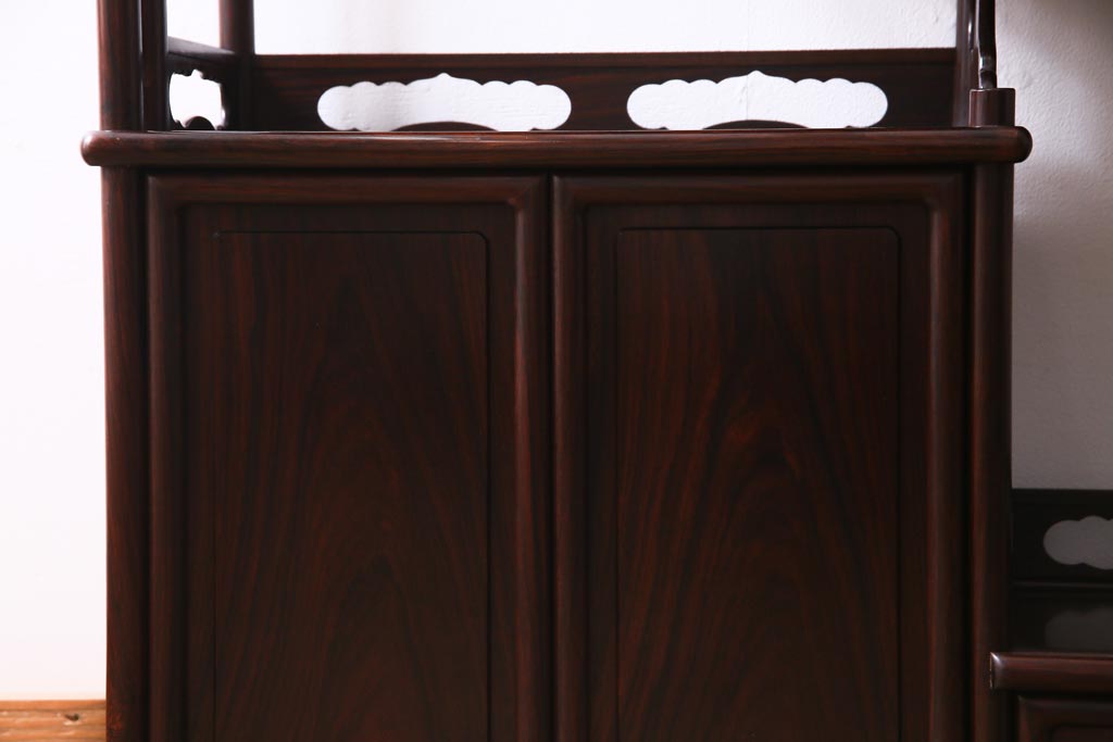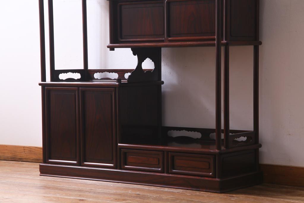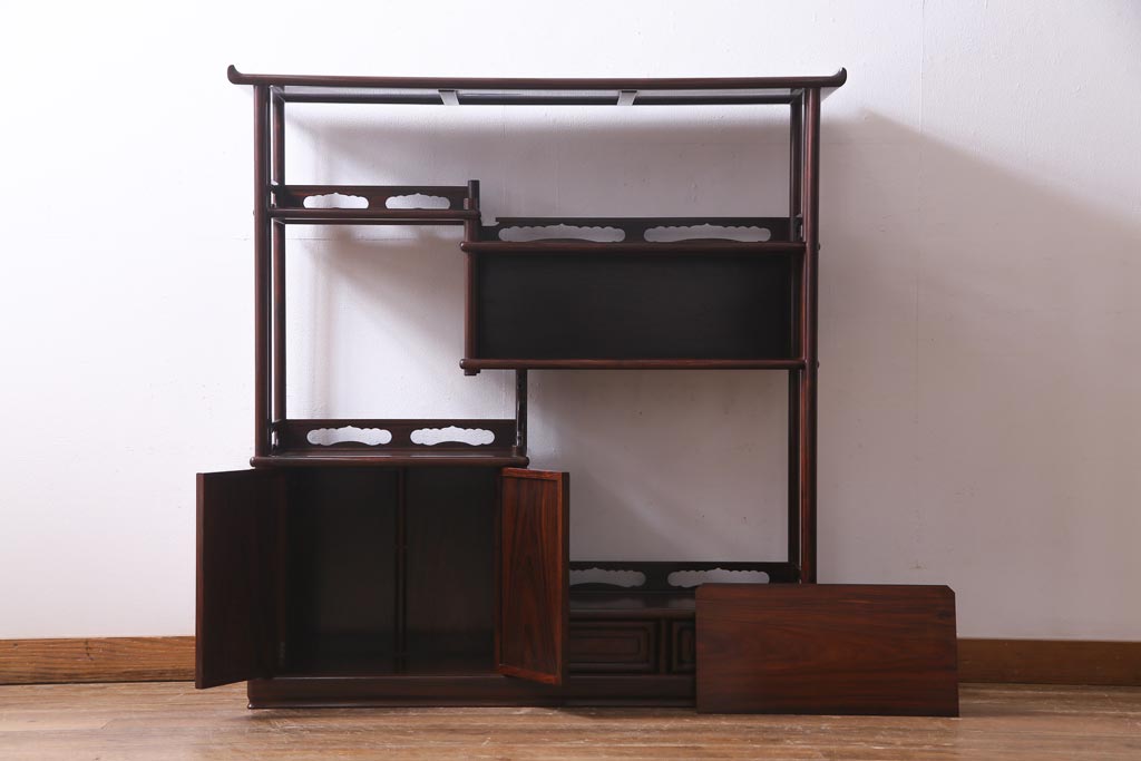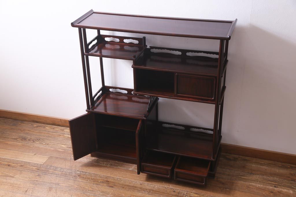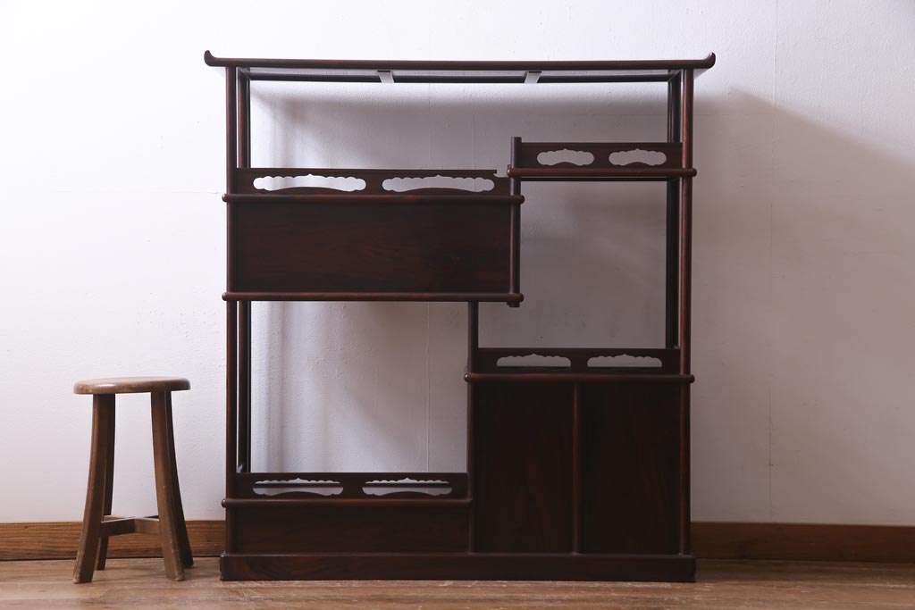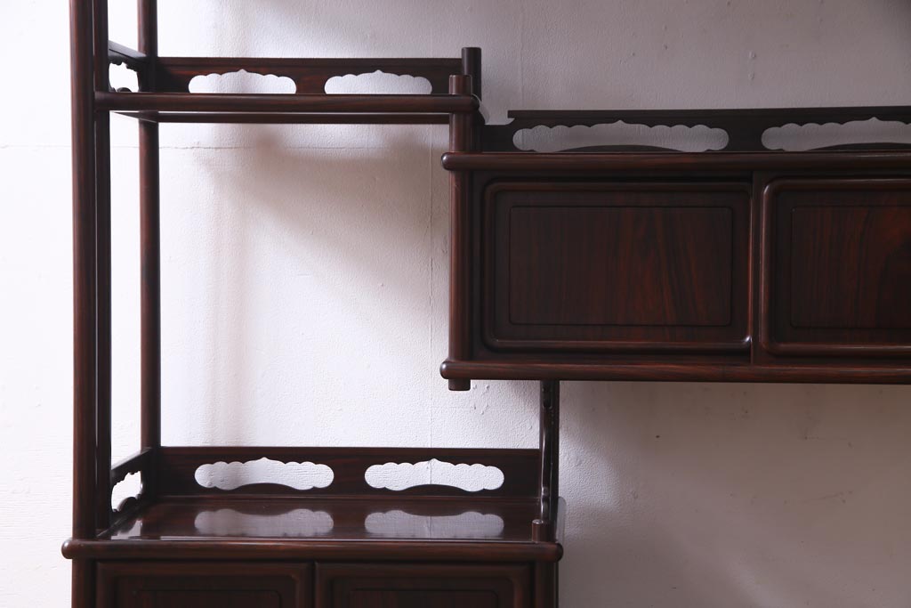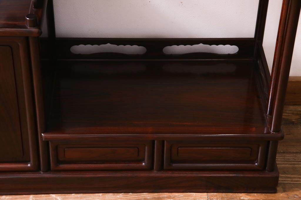 和箪笥 > 中古 伝統工芸品 大阪唐木指物 在銘 紫檀(シタン)材 漆塗り 飾り棚(違い棚、茶棚)(定価約220万円)(R-037461)
