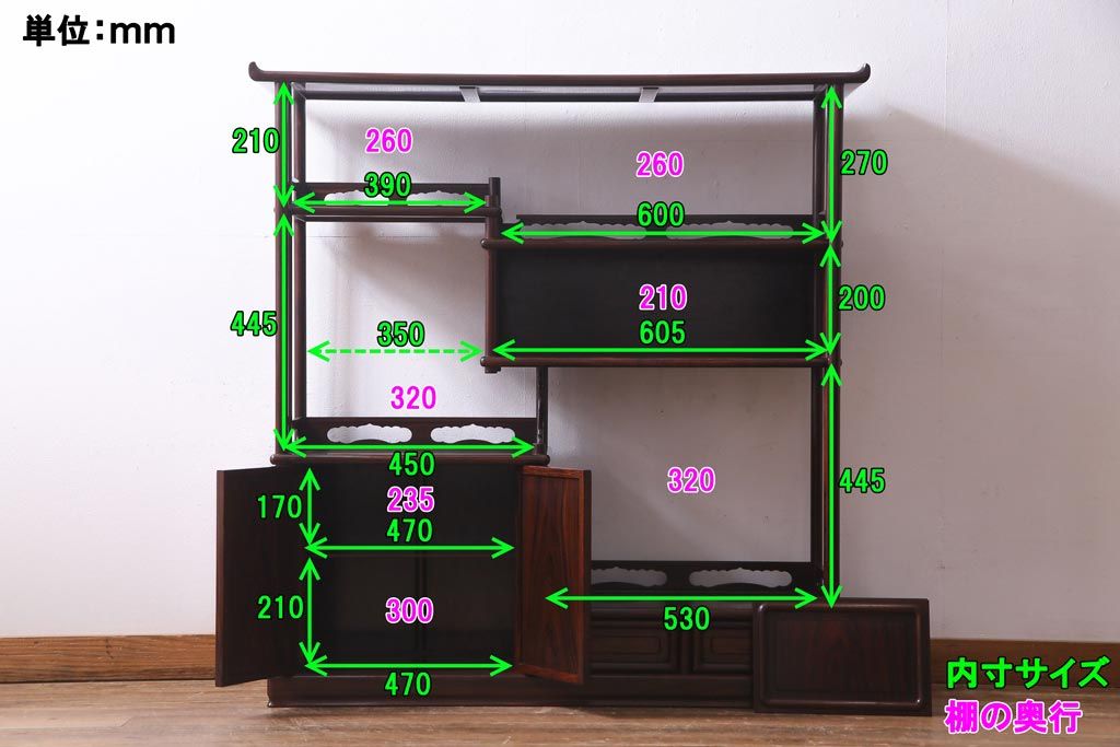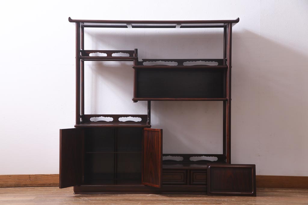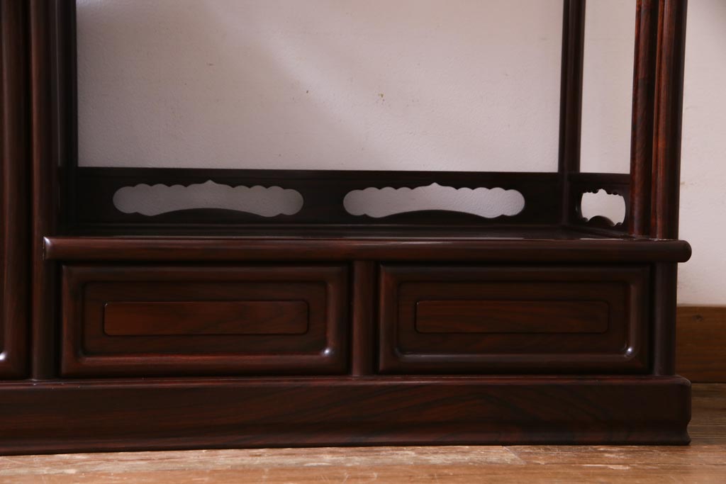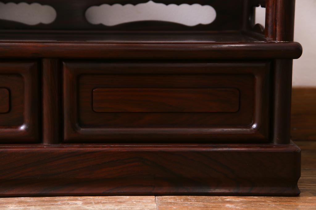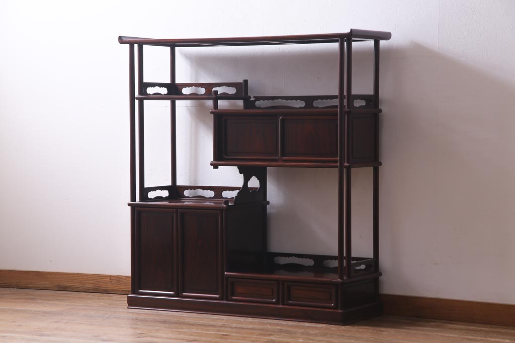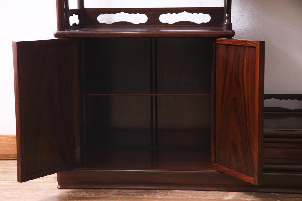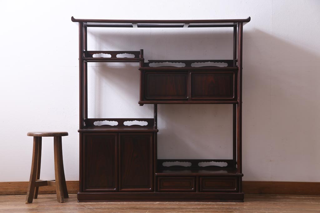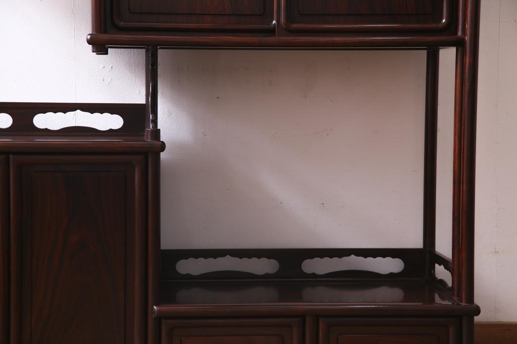 和箪笥 > 中古 伝統工芸品 大阪唐木指物 在銘 紫檀(シタン)材 漆塗り 飾り棚(違い棚、茶棚)(定価約220万円)(R-037461)