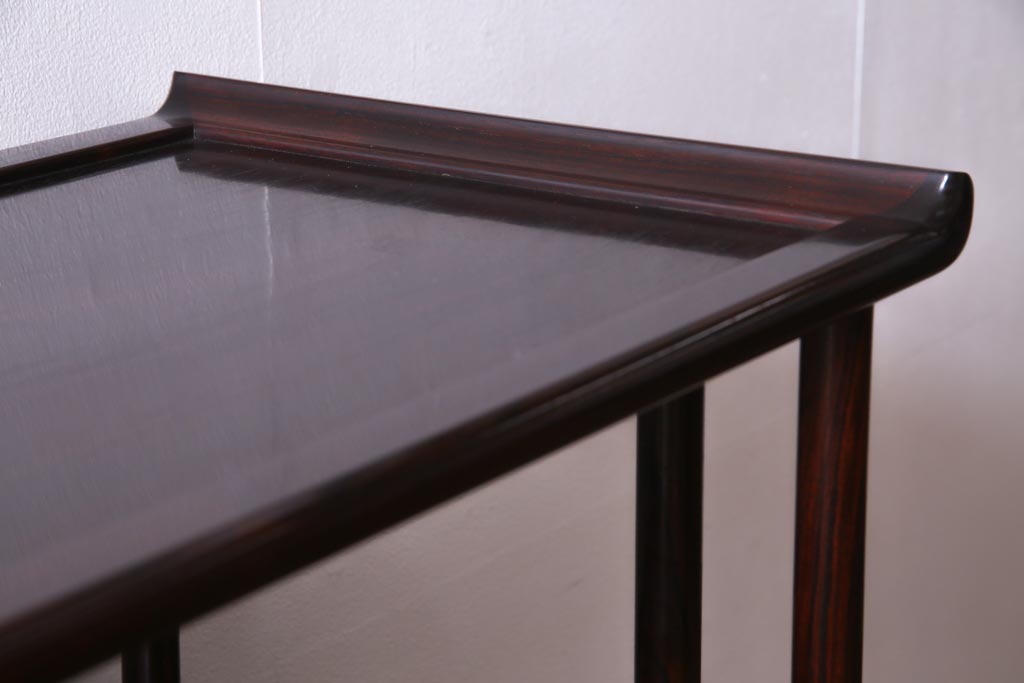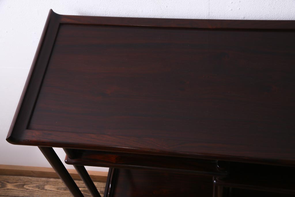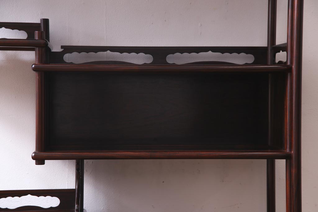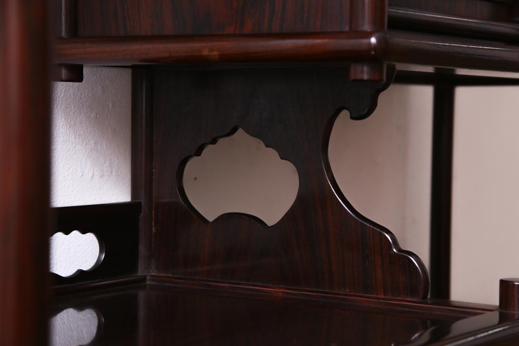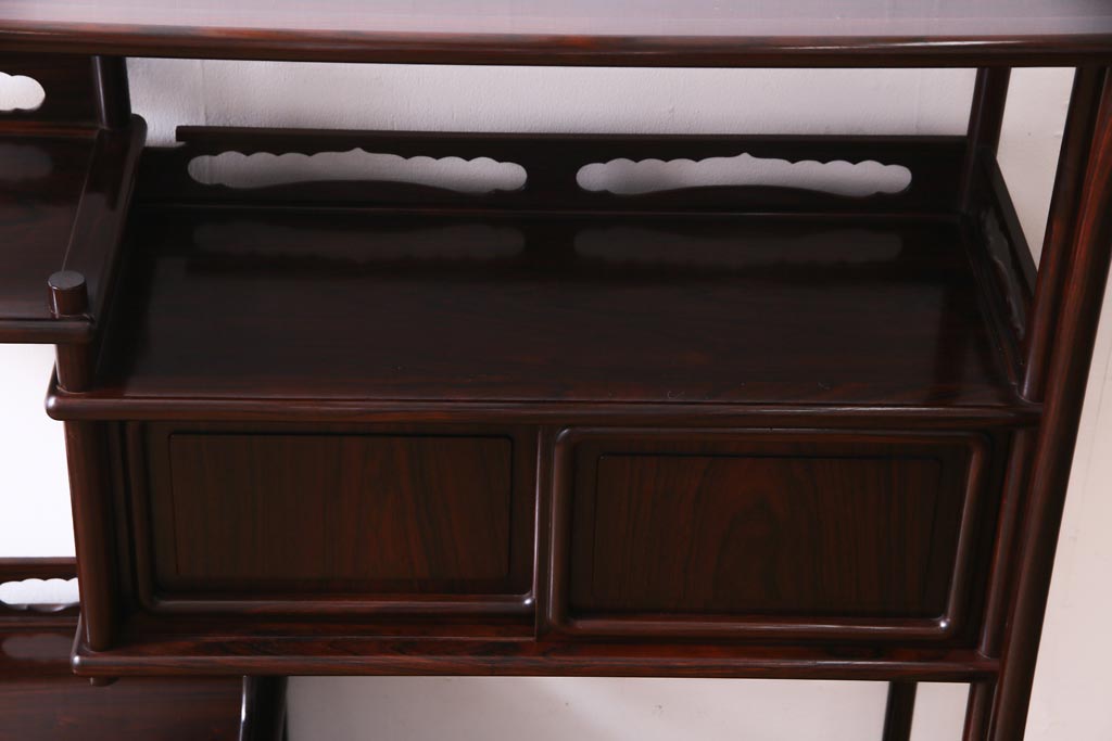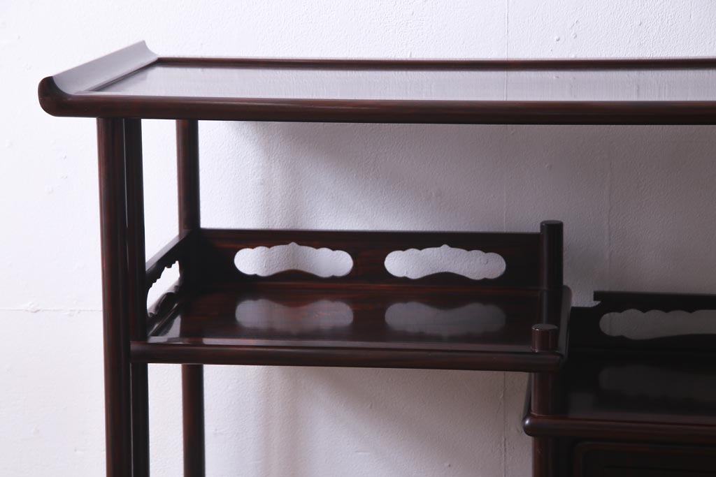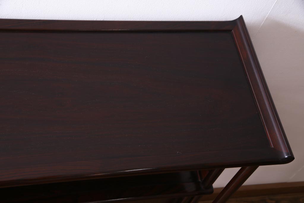 オープンラック・シェルフ > 中古 伝統工芸品 大阪唐木指物 在銘 紫檀(シタン)材 漆塗り 飾り棚(違い棚、茶棚)(定価約220万円)(R-037461)