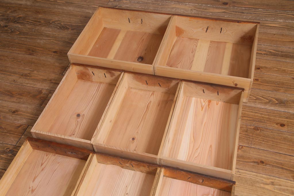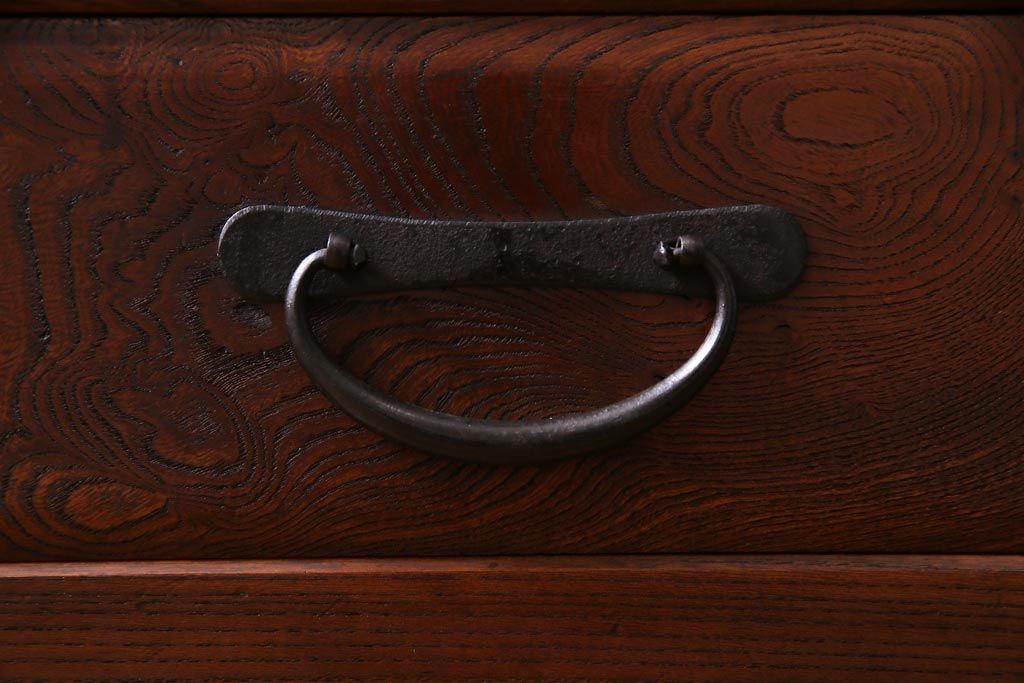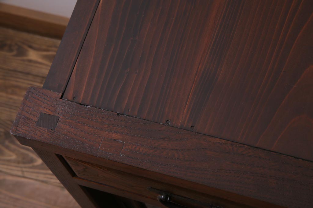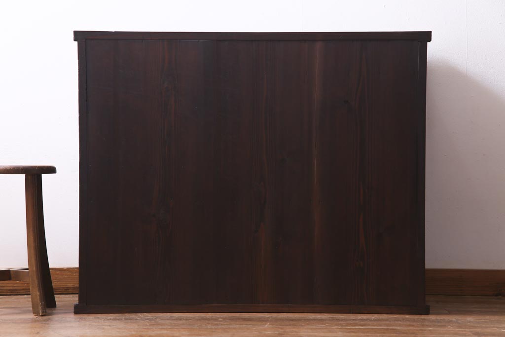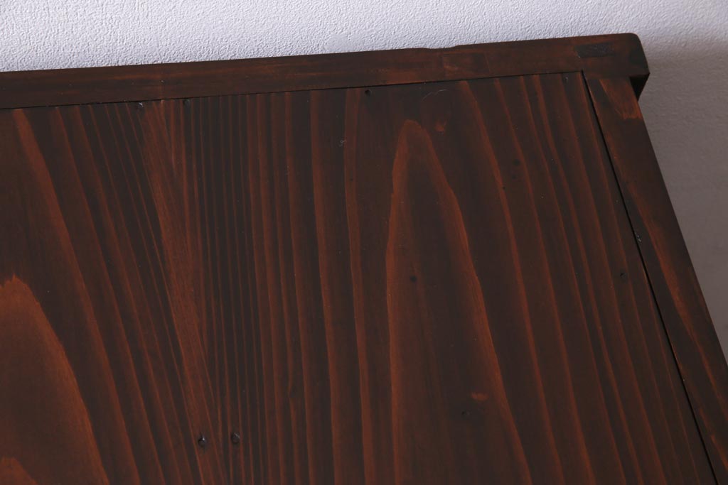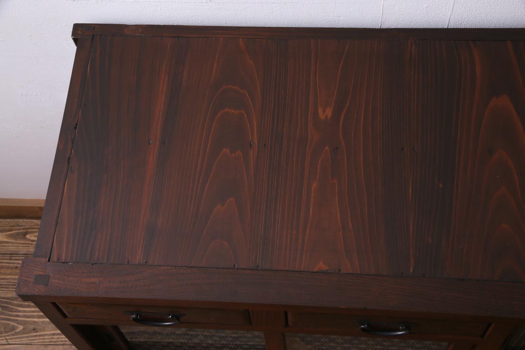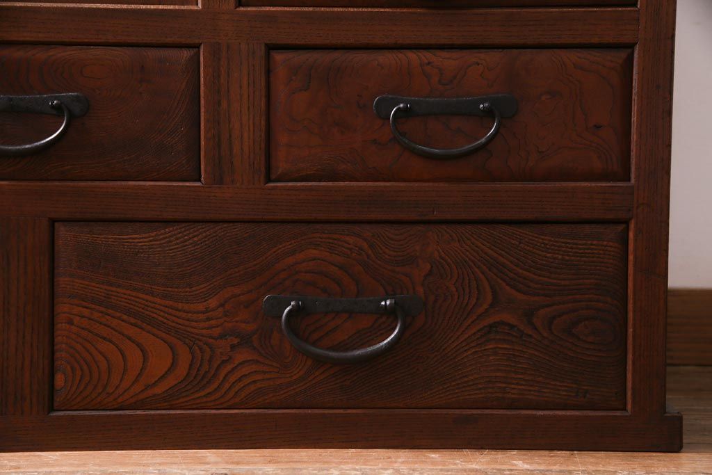 アンティーク家具 前面ケヤキ材 モールガラス・当店オリジナルガラス入り 杢目が目を引くキャビネット(収納棚、戸棚)(R-037434)